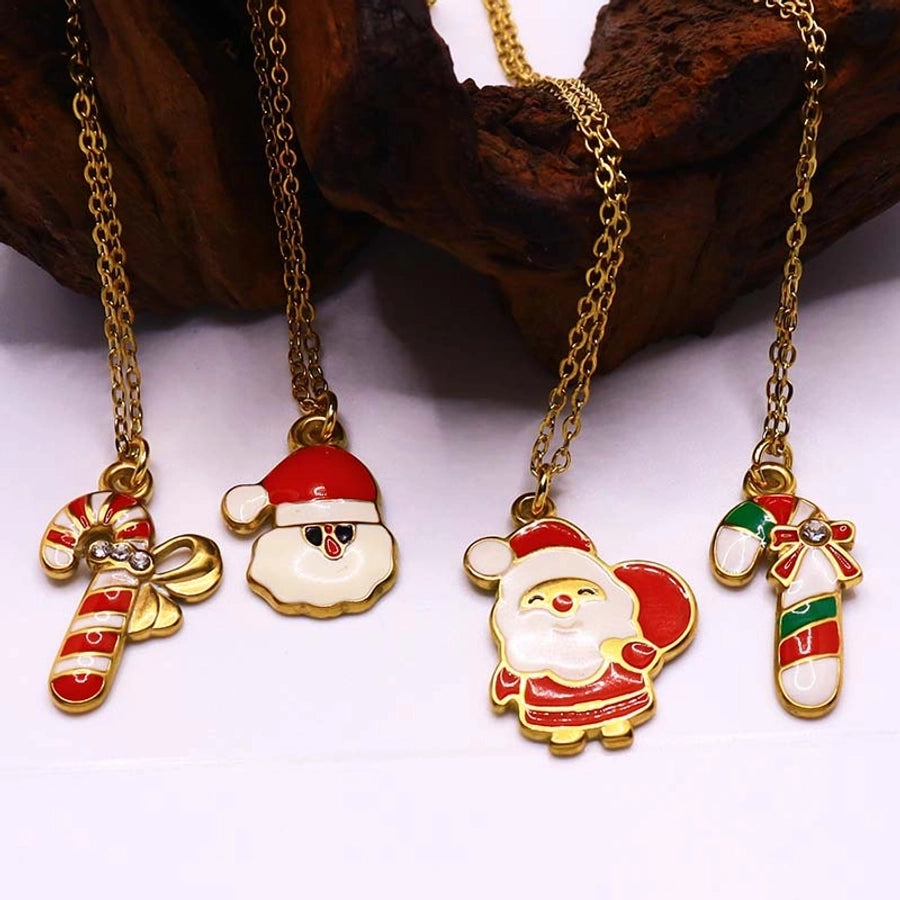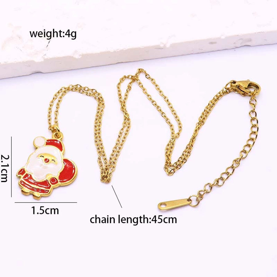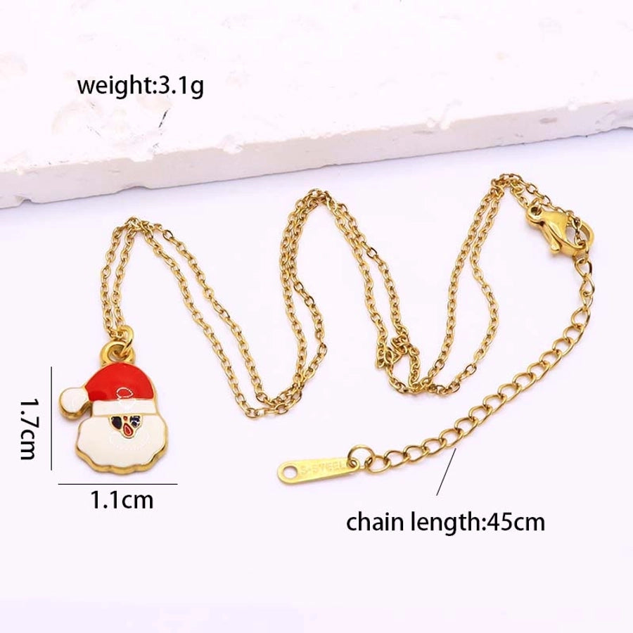 Elegant Santa Claus 18K Gold Plated Zircon 304 Stainless Steel Pendant Necklace