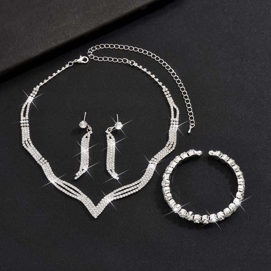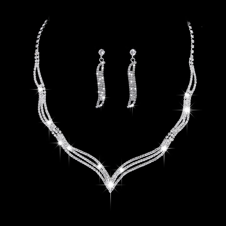 fashion geometric alloy inlay rhinestones women's earrings necklace