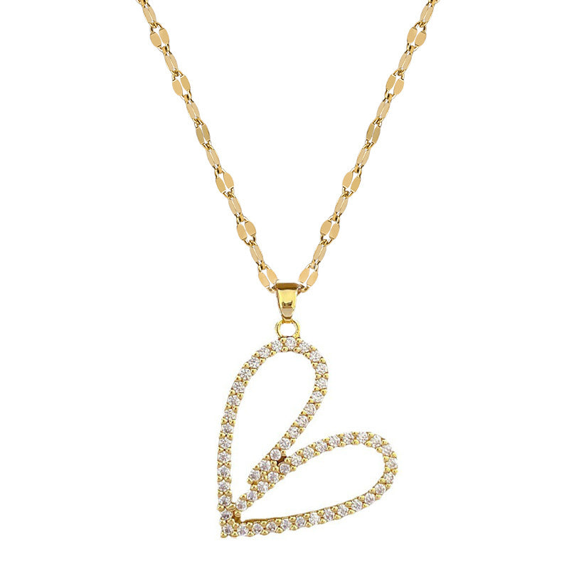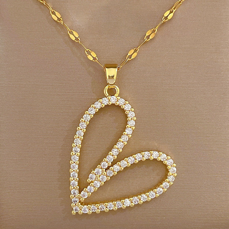 Fashion Heart Shape Stainless Steel Copper Inlay Rhinestones Pendant Necklace