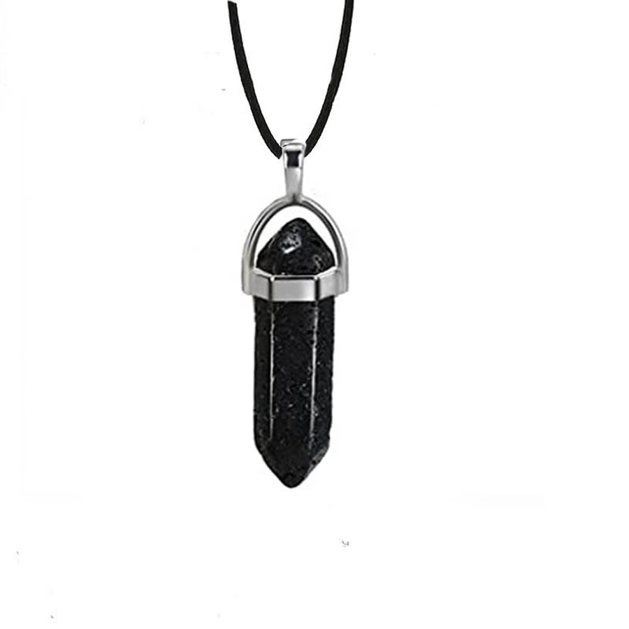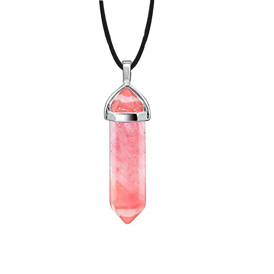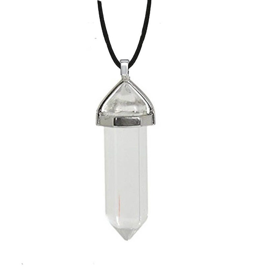 fashion hexagon prism natural stone leather rope pendant necklace 1 piece