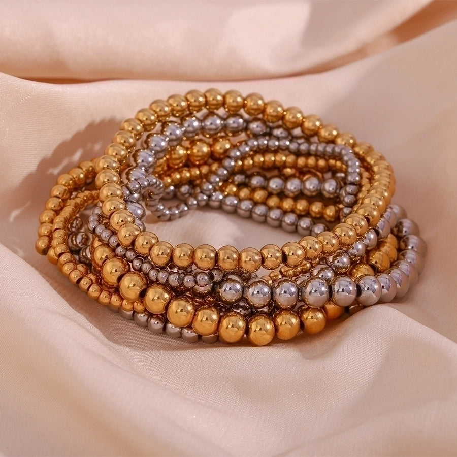 Fashion Round 304 Stainless Steel 18K Gold Plated Bracelets In Bulk