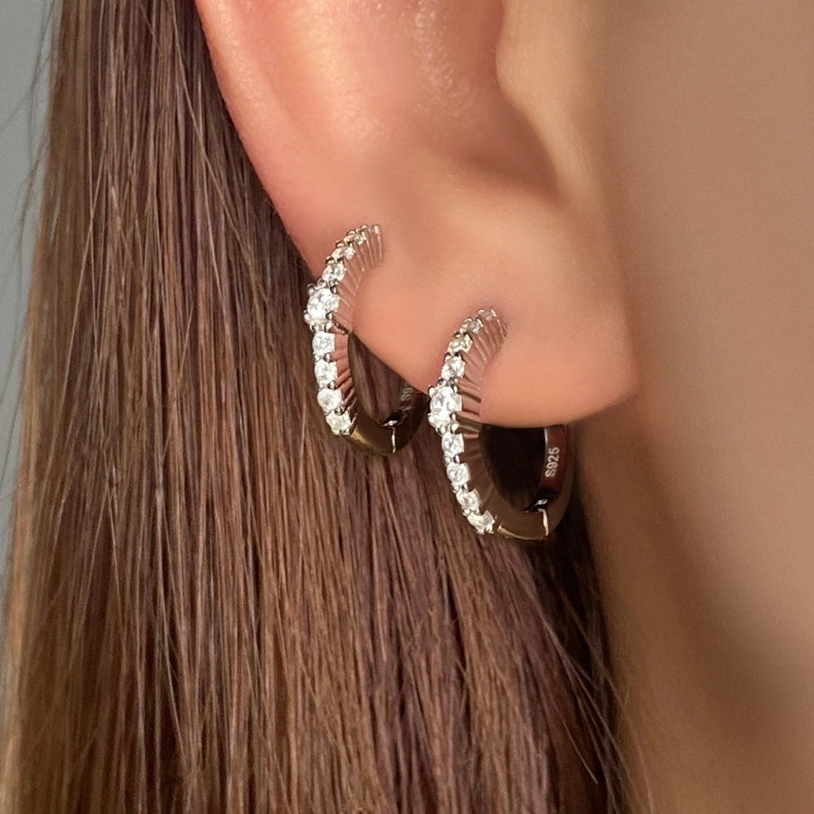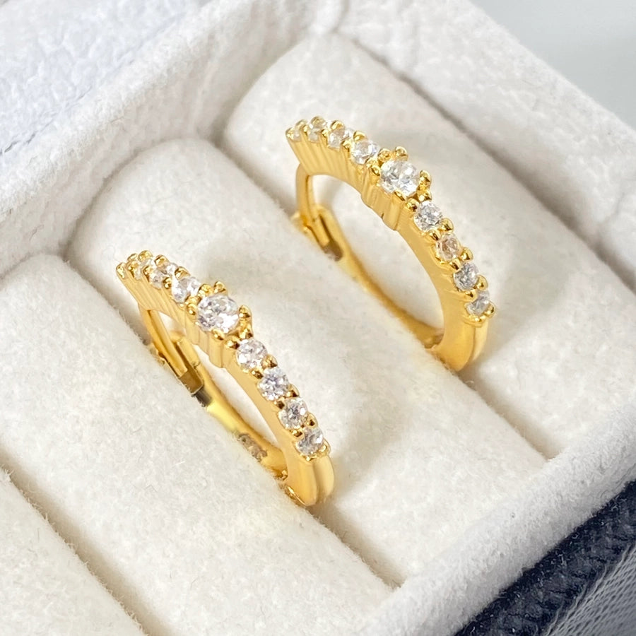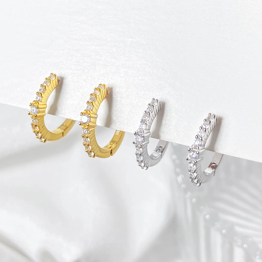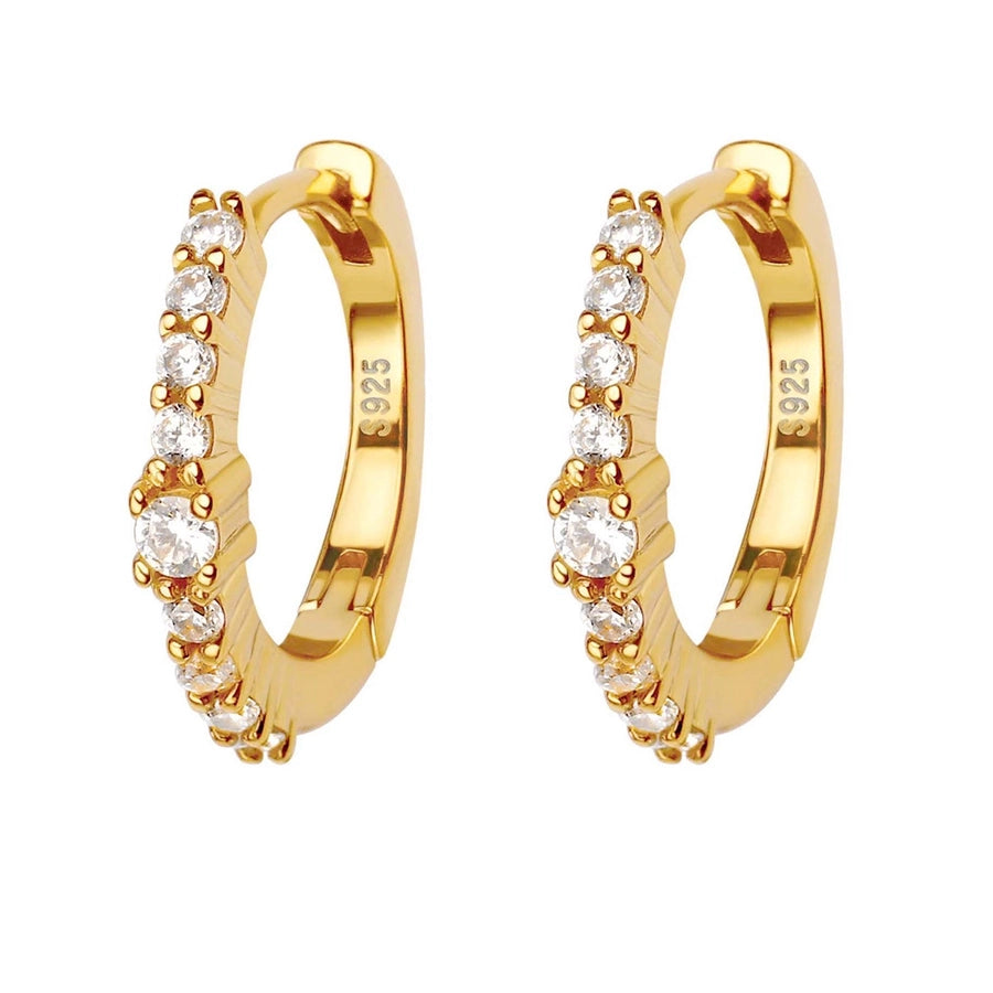 Foxi Classic Look round Zircon Inlaid 925 Sterling Silver Material Women's Gold Plated Ear Ring