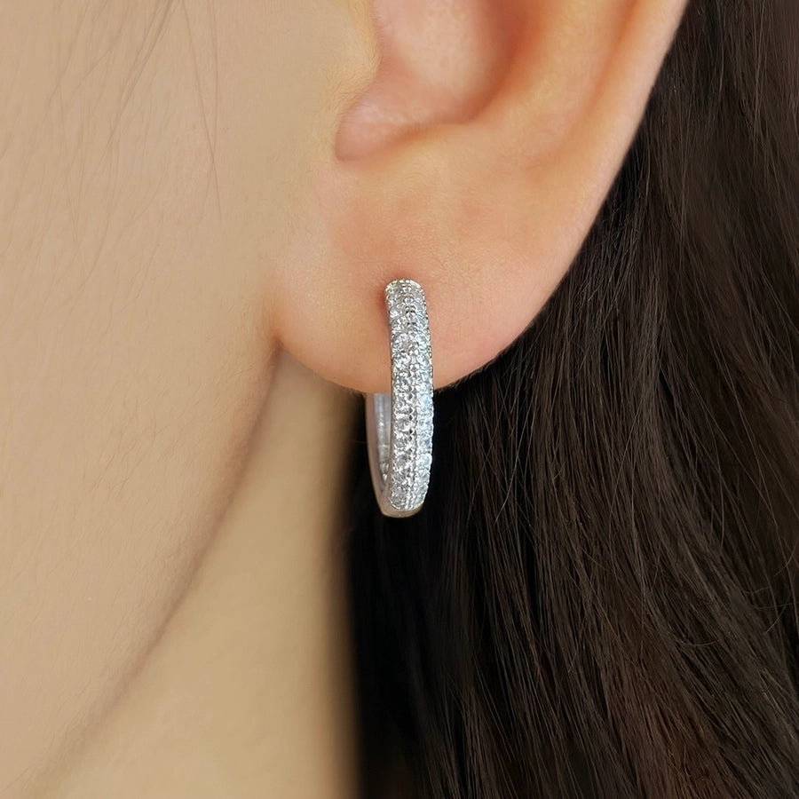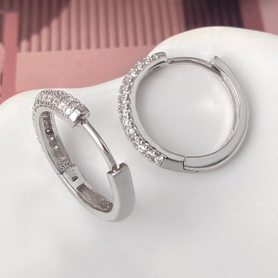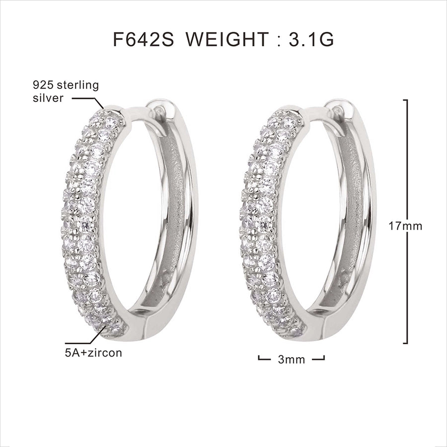 Foxi Gorgeous Style Full Zircon Inlaid 17mm925 Sterling Silver Material for Women Ear Ring