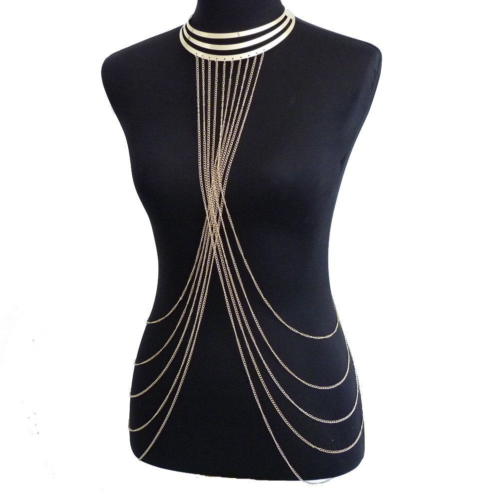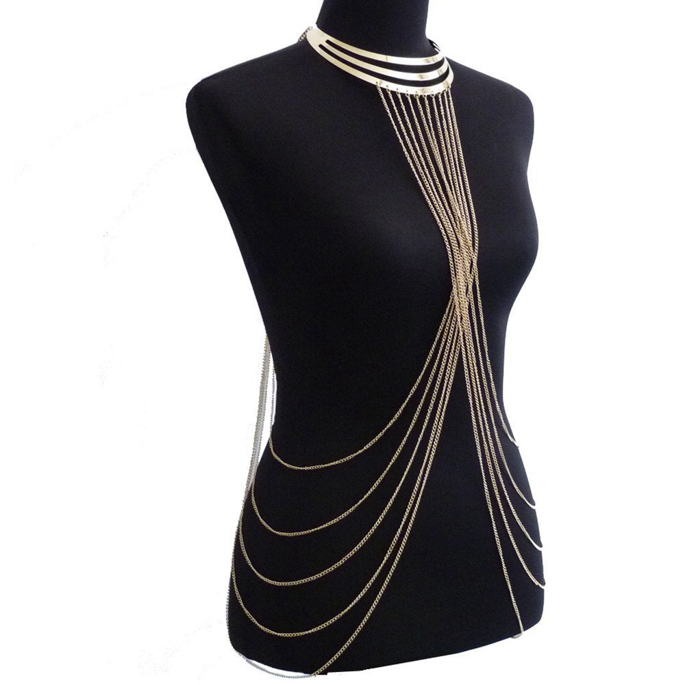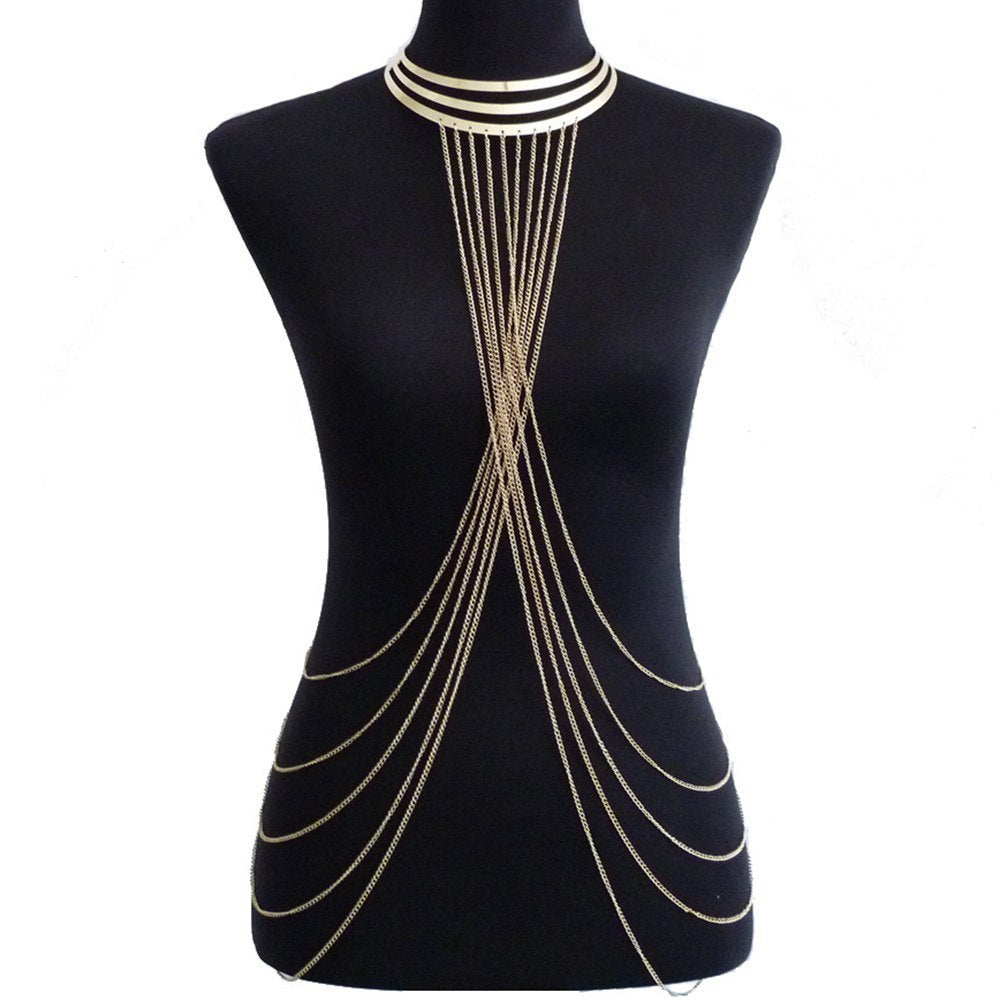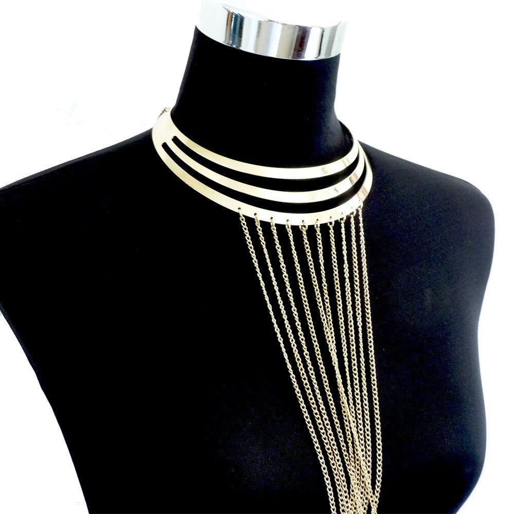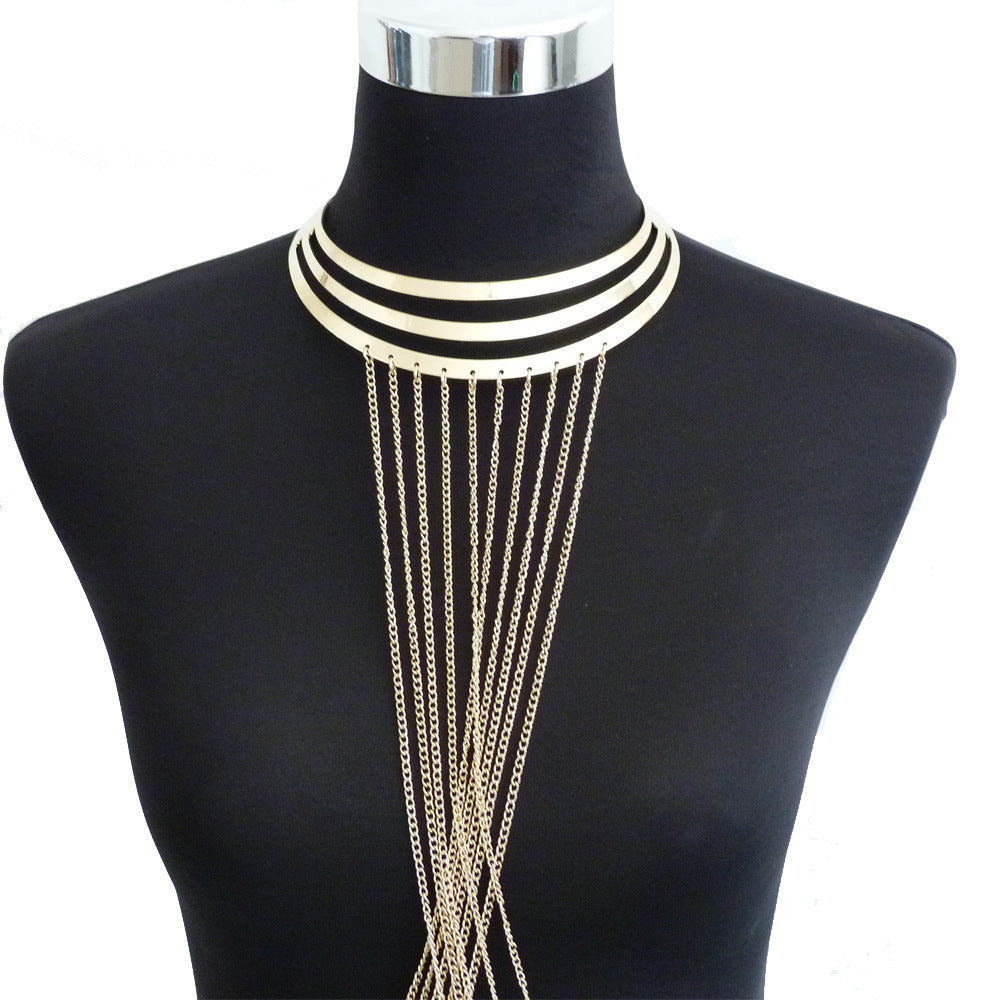 Gold Metal Large Neckband Necklace Tassel Body Chains
