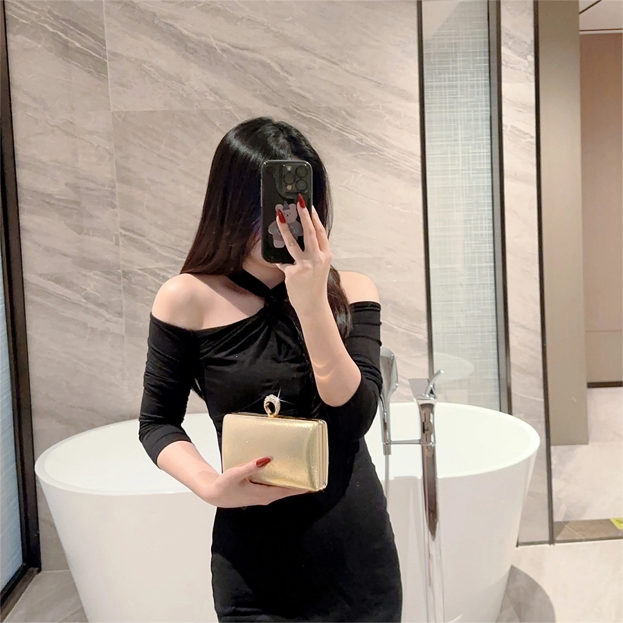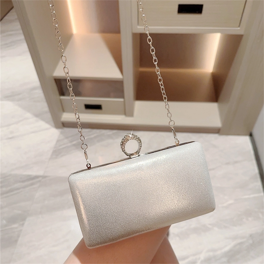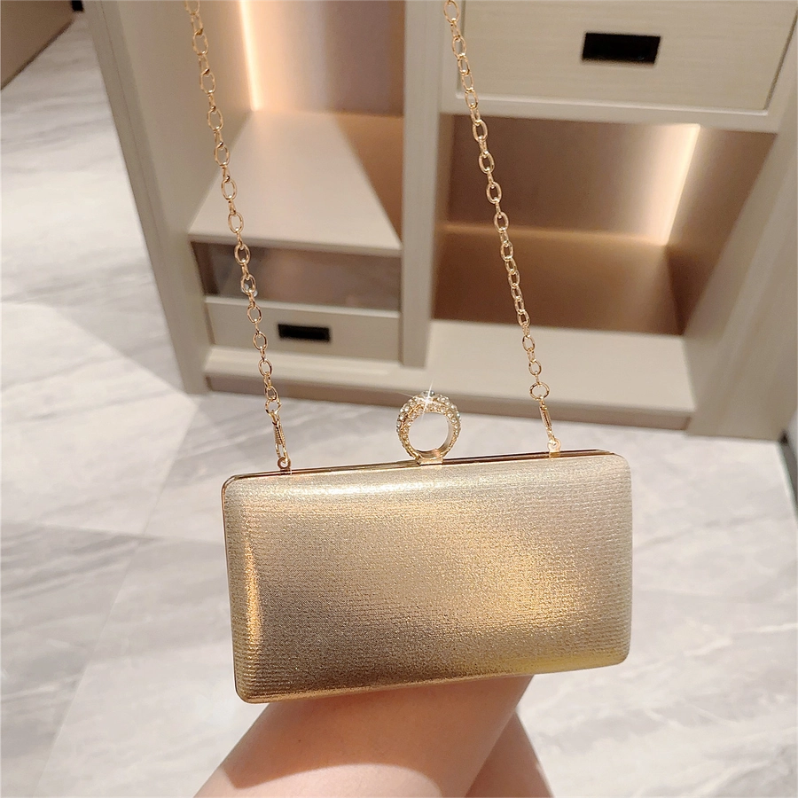 Gold Silver Pu Leather Solid Color Square Evening Bags