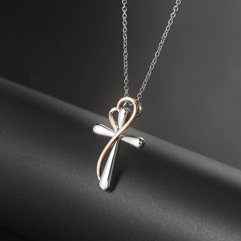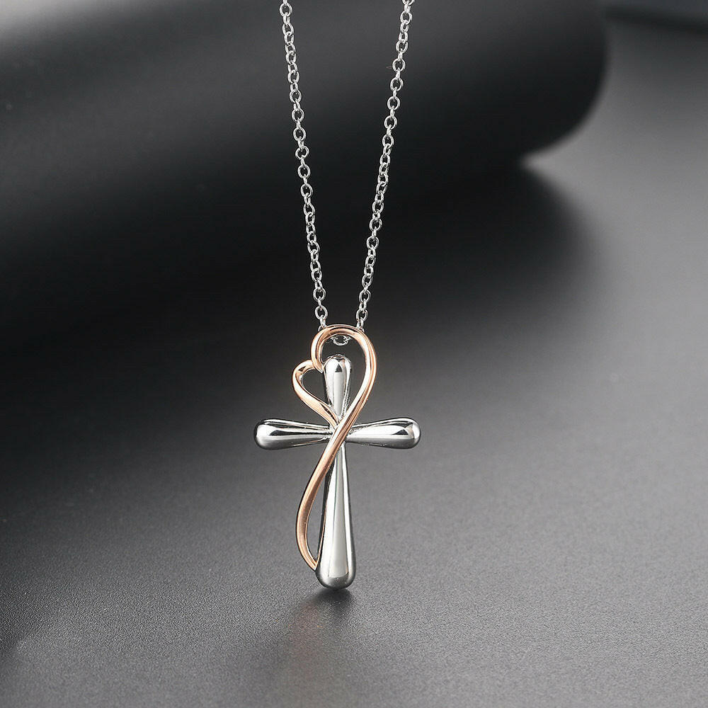Heart-shaped Cross Necklace, Simple Color, Electroplating