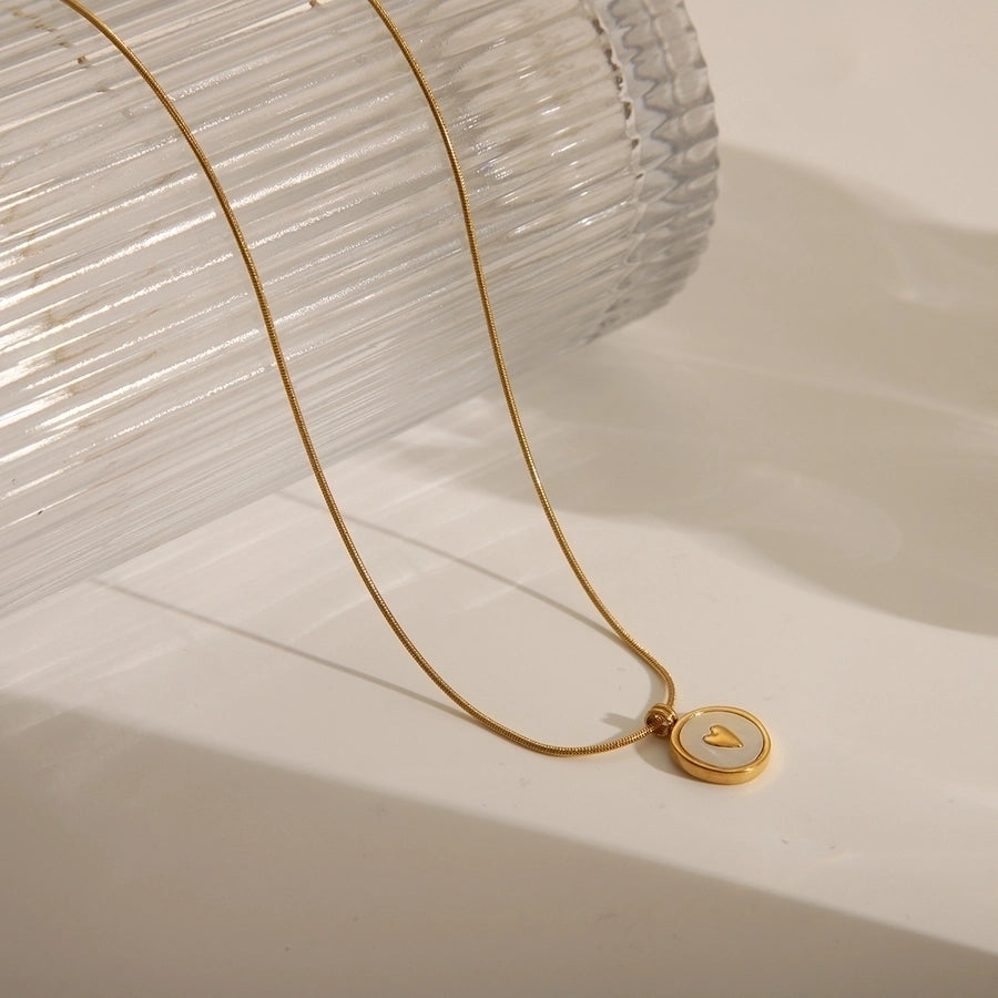 Jewelry Casual Basic Commute Heart Shape 304 Stainless Steel Shell 14K Gold Plated Relief Pendant Necklace