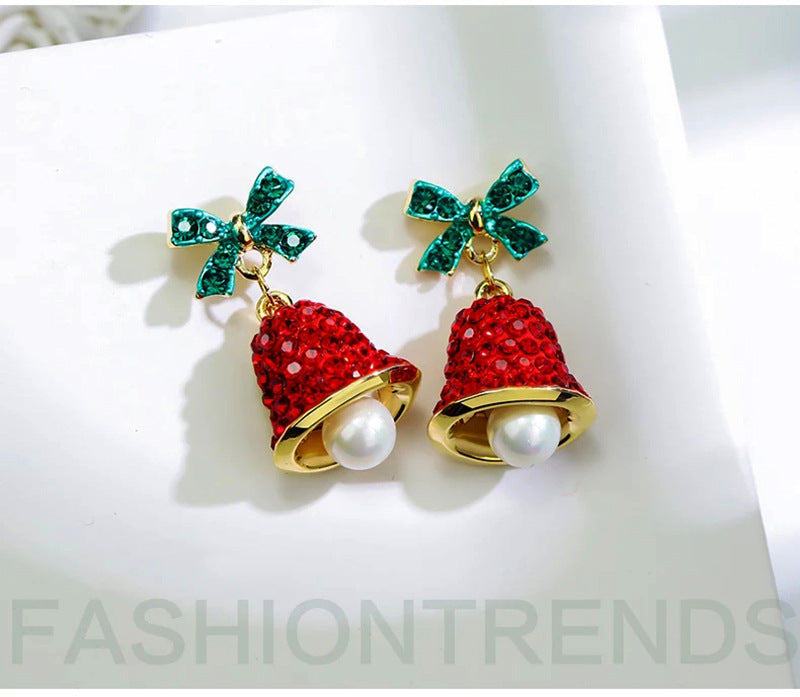 jewelry cute bow knot bell alloy rhinestones enamel plating inlay drop earrings