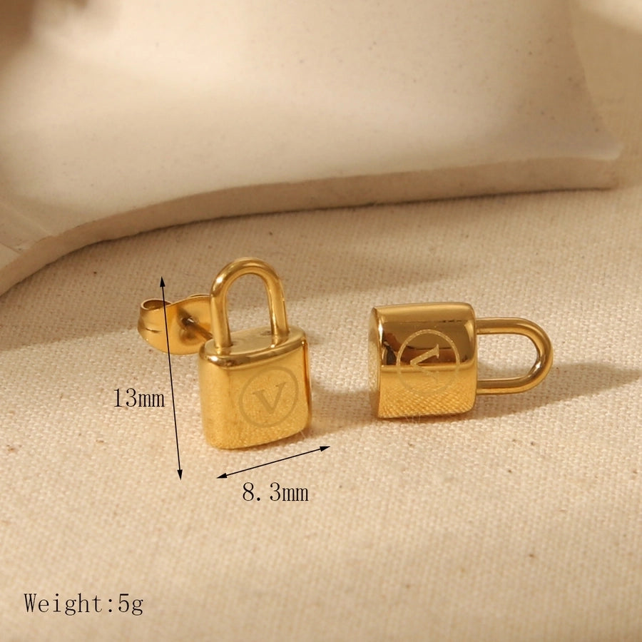 Jewelry Elegant Luxurious Commute Lock 304 Stainless Steel 18K Gold Plated Horseshoe Buckle Bracelets Ear Studs Necklace