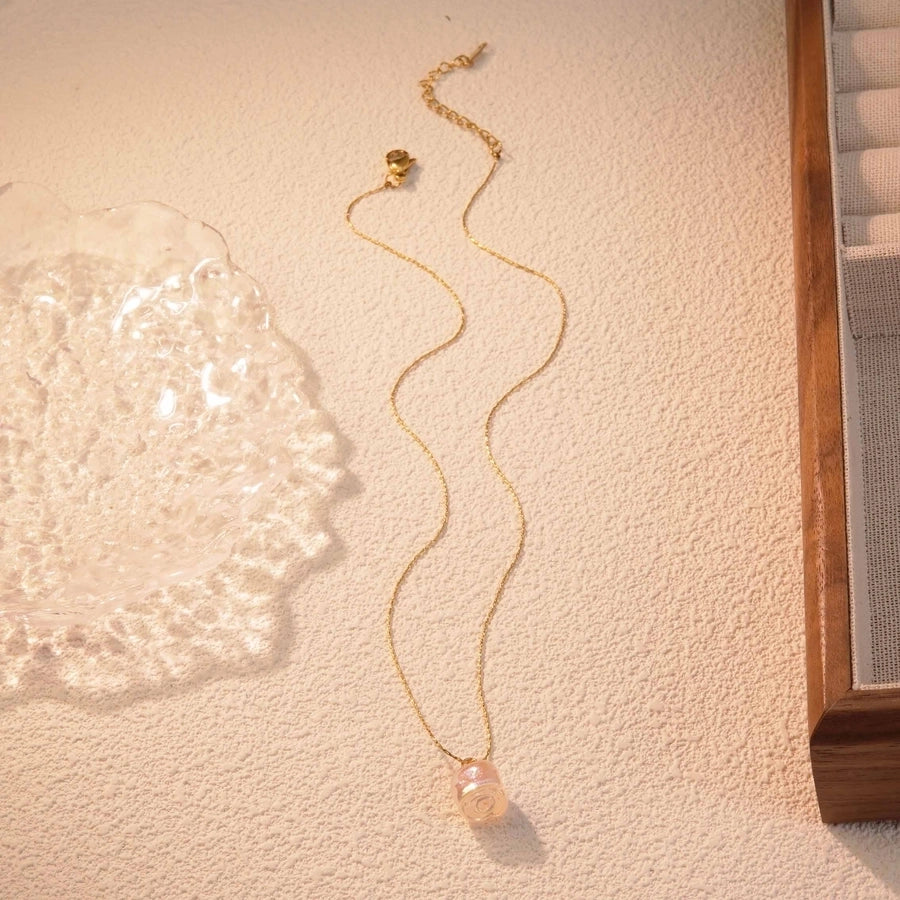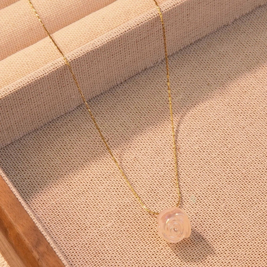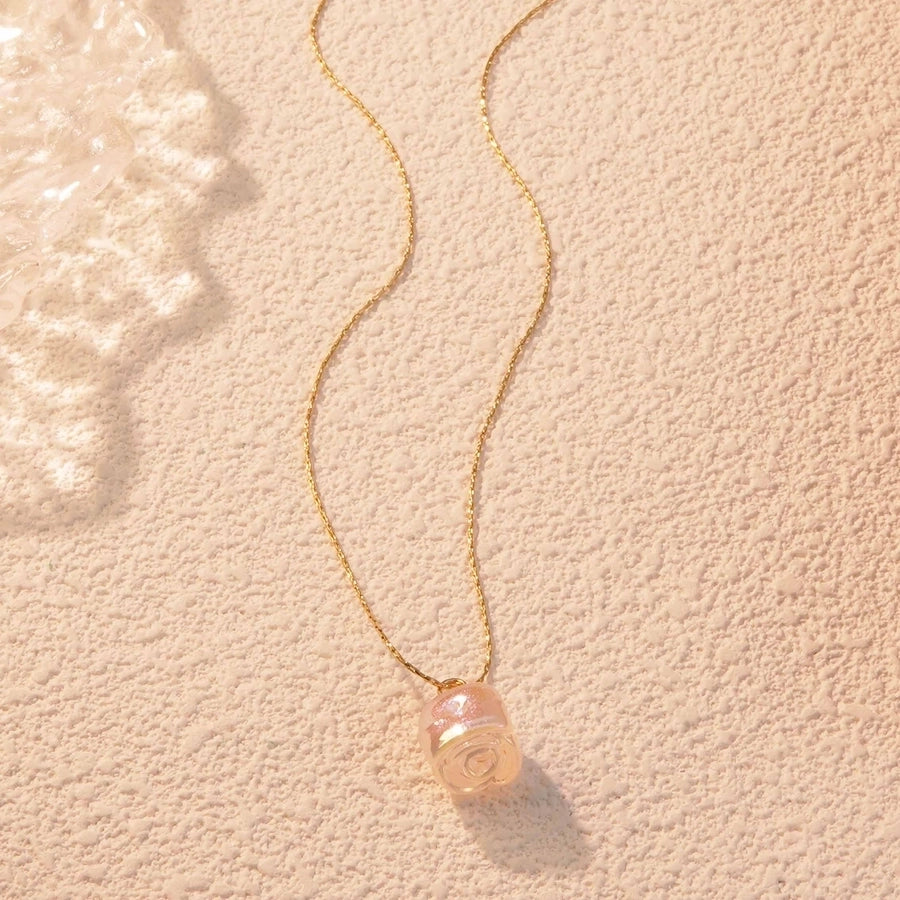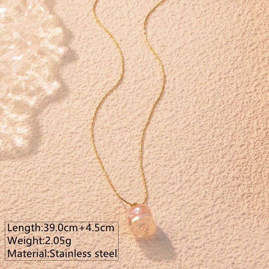 Jewelry Fairy Style Elegant Streetwear Flower 304 Stainless Steel Plastic 18K Gold Plated Chain Inlay Pendant Necklace