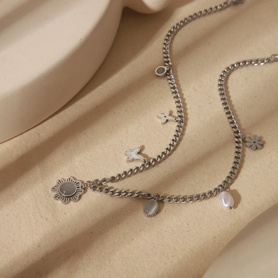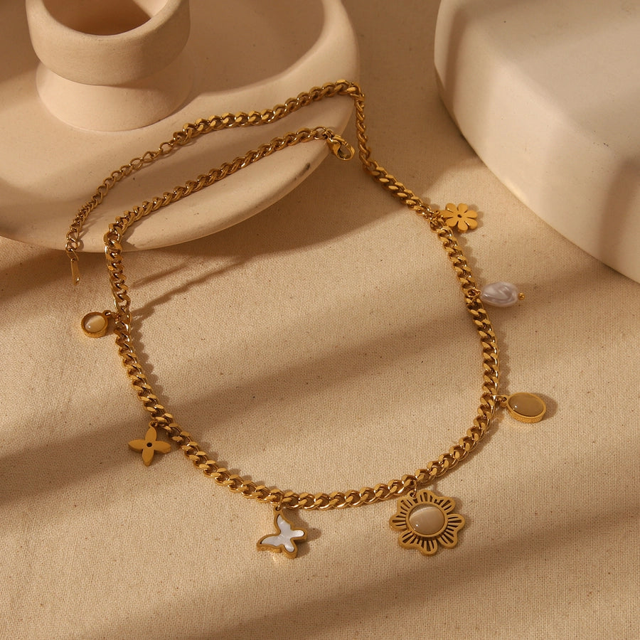 Jewelry IG Style Elegant Commute Solid Color Flower Butterfly 304 Stainless Steel Zircon 18K Gold Plated Plating Inlay Pendant Necklace