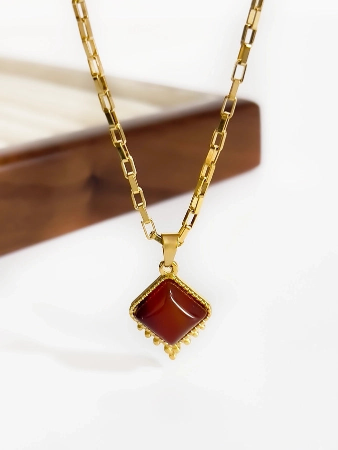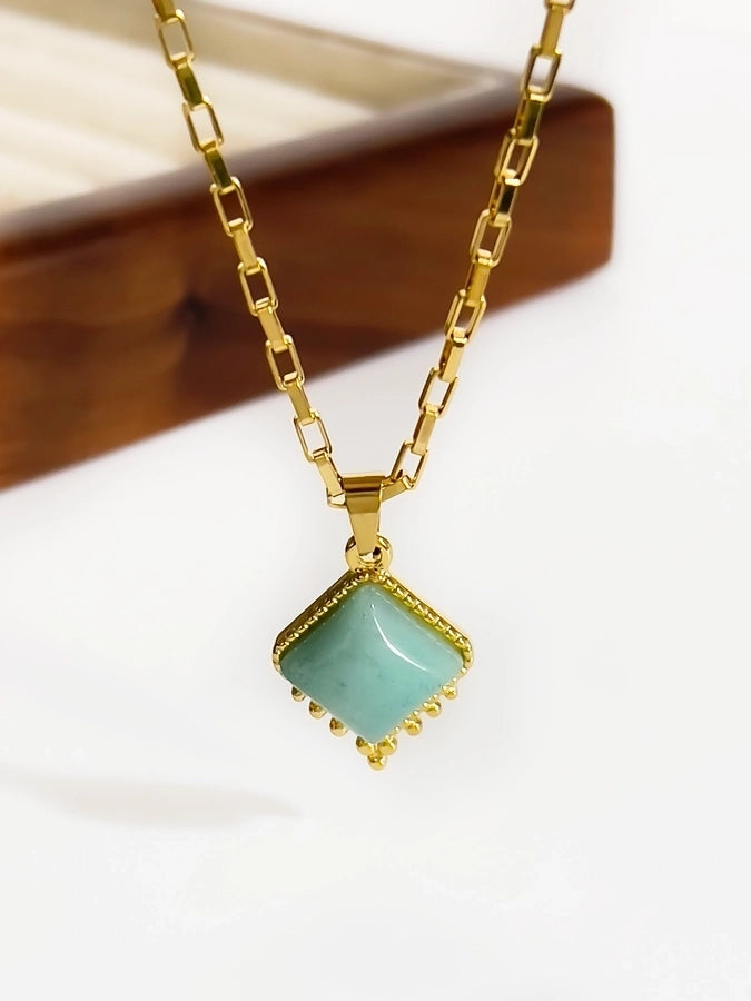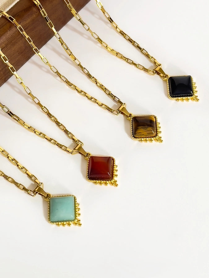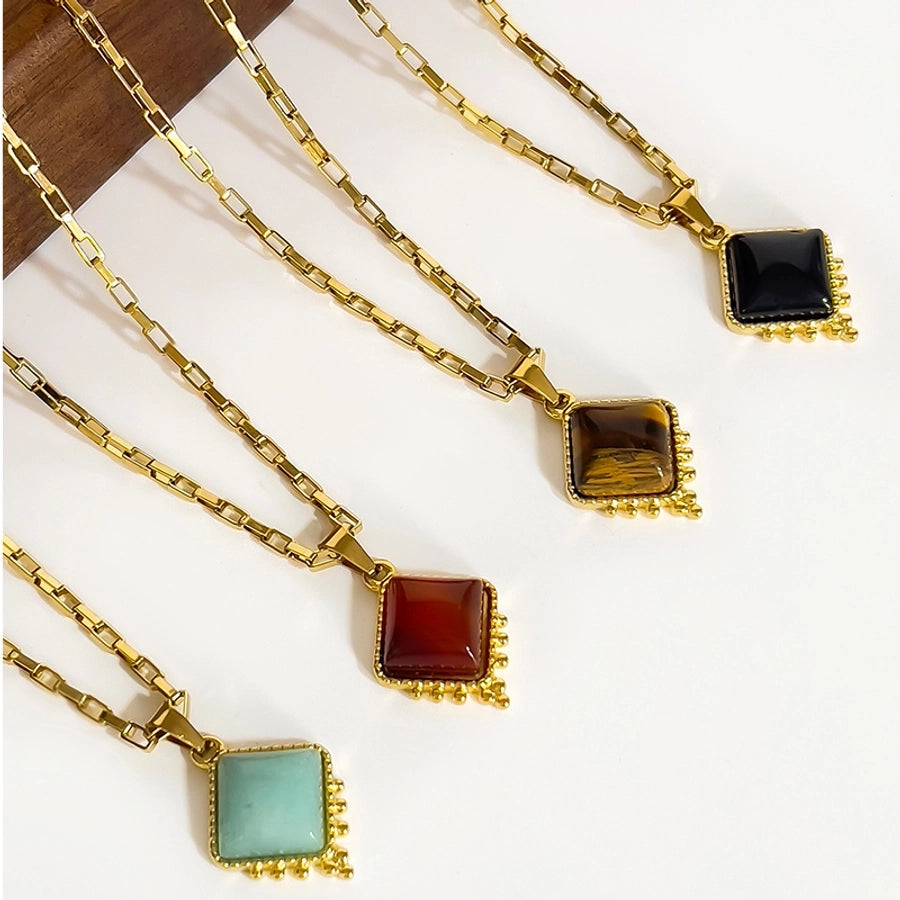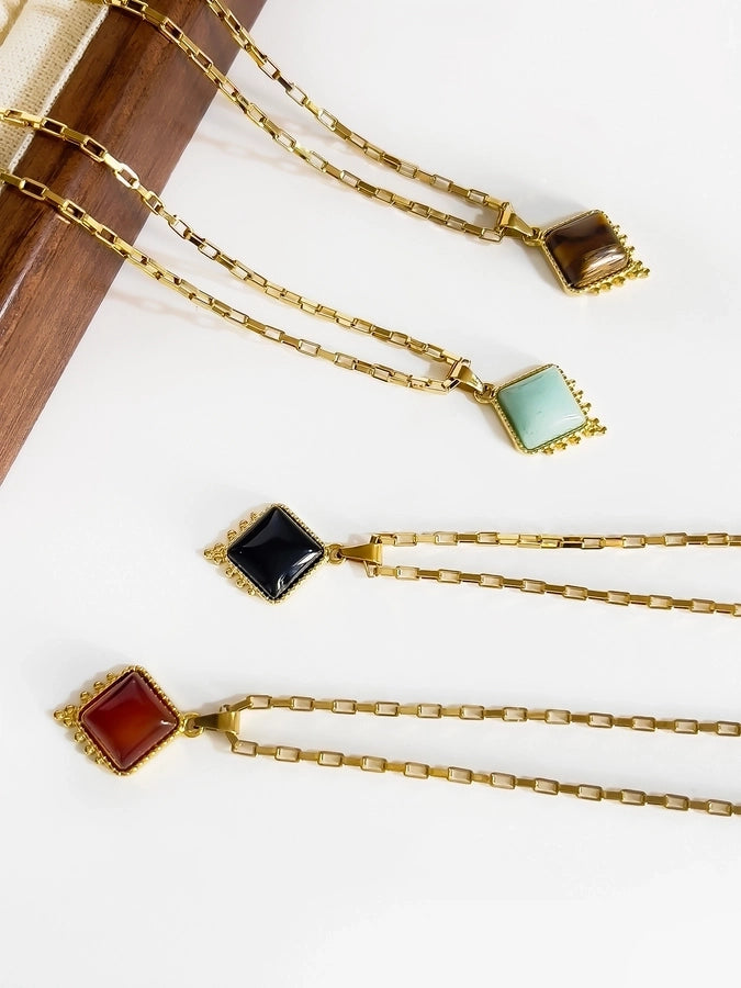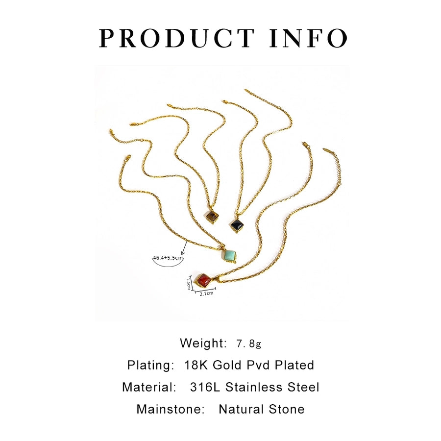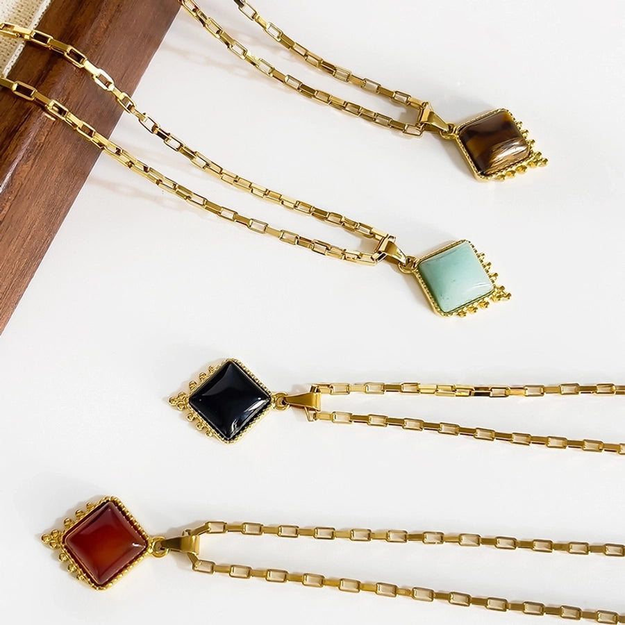 Jewelry Retro Classic Style Rhombus 316L Stainless Steel Natural Stone 18K Gold Plated Irregular Inlay Pendant Necklace
