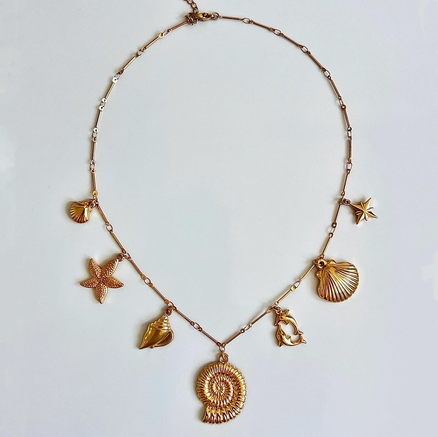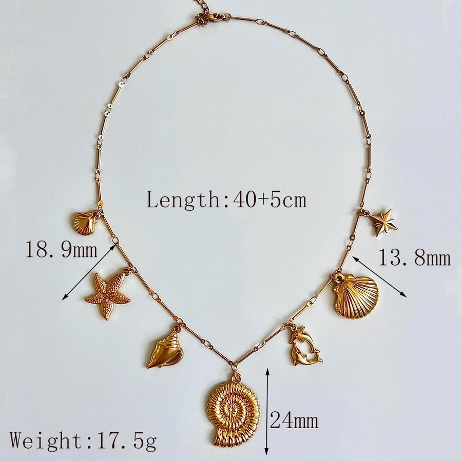 Jewelry Retro Exaggerated Commute Starfish Conch Shell 304 Stainless Steel 18K Gold Plated Pendant Necklace