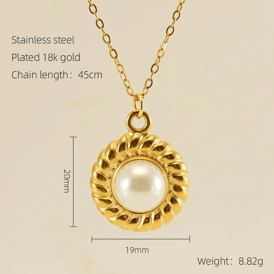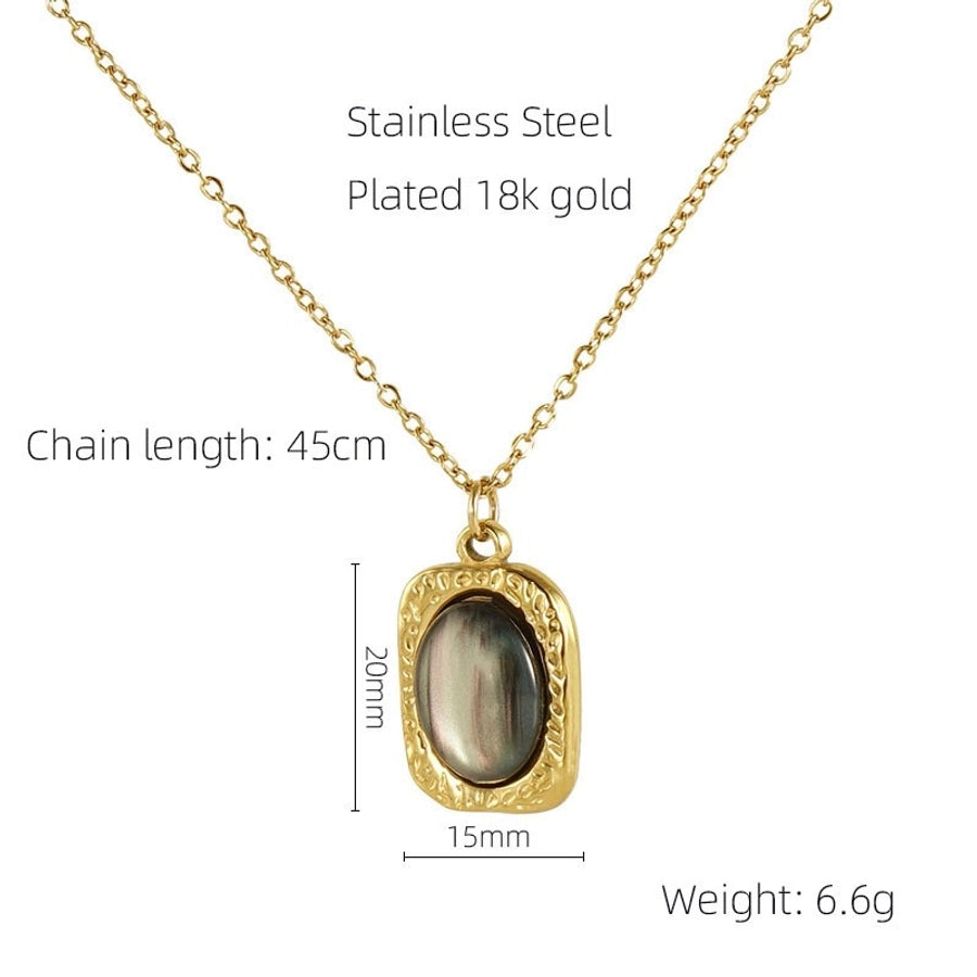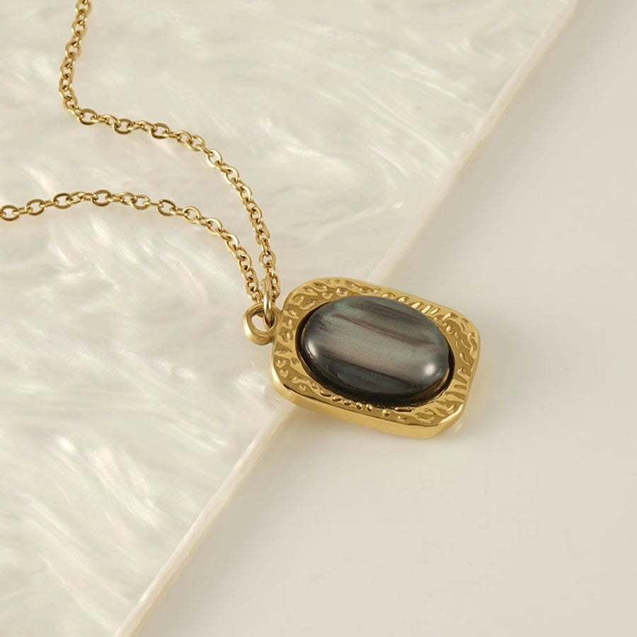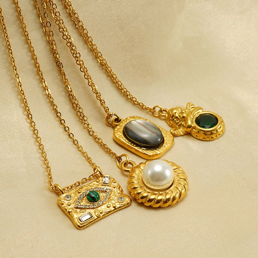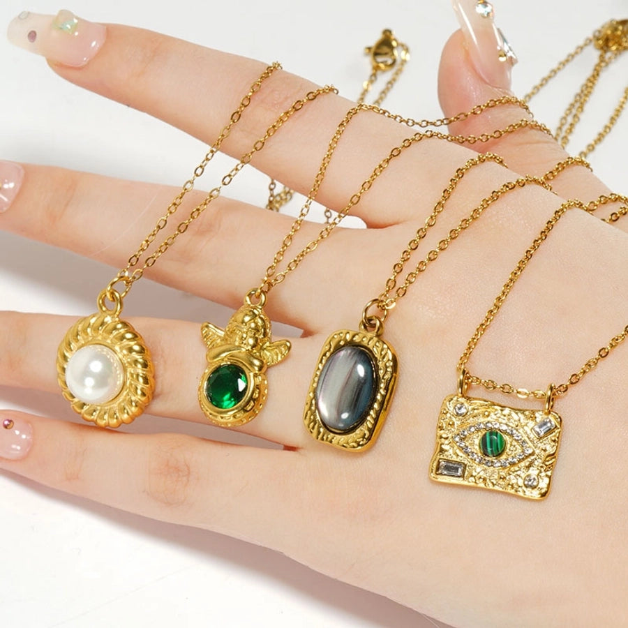 Jewelry Retro Oval Eye Stainless Steel Gem Pearl 18K Gold Plated Plating Inlay Pendant Necklace Long Necklace