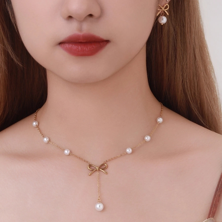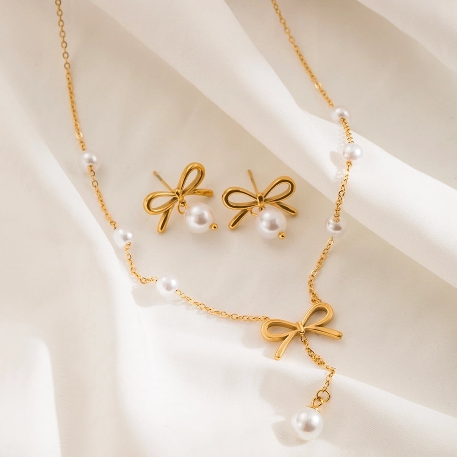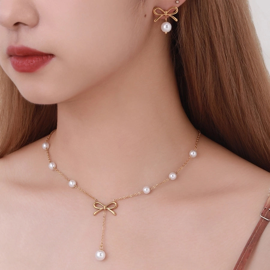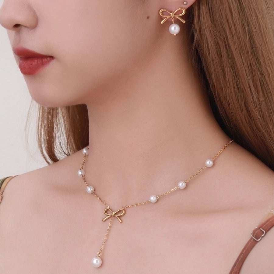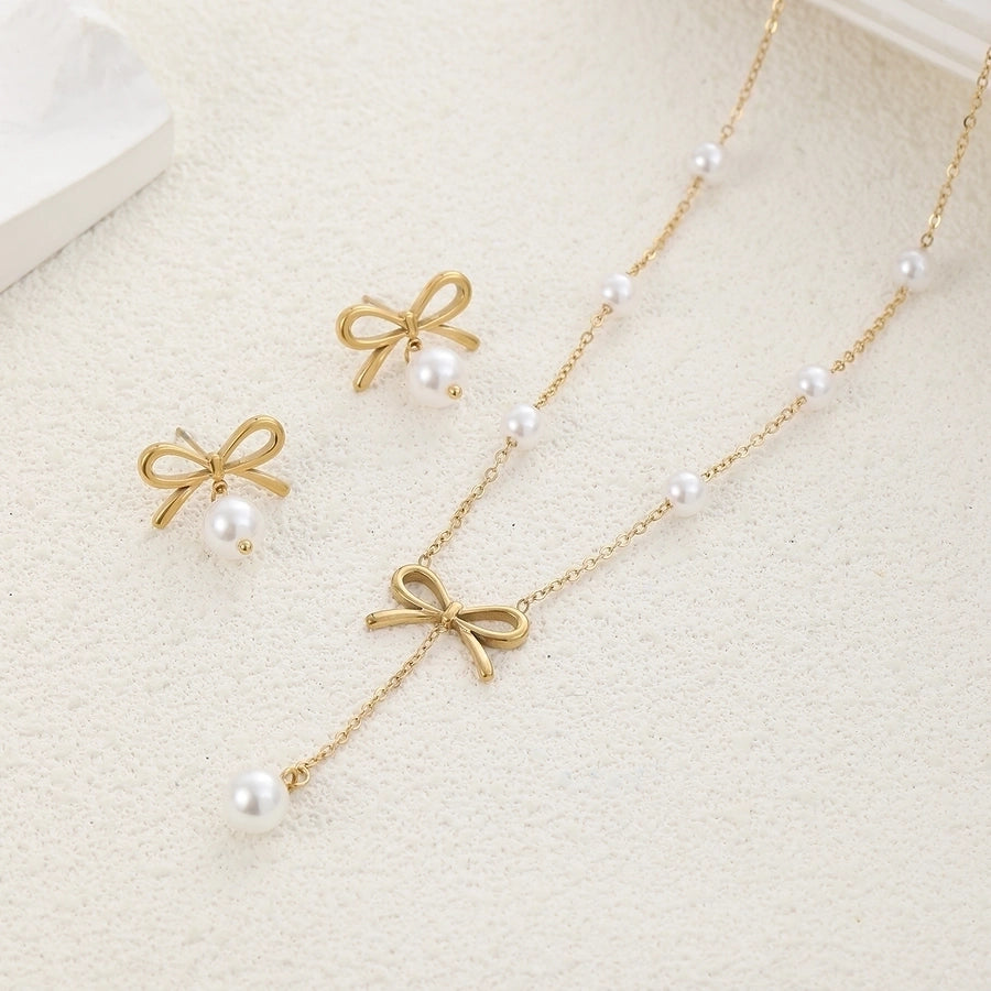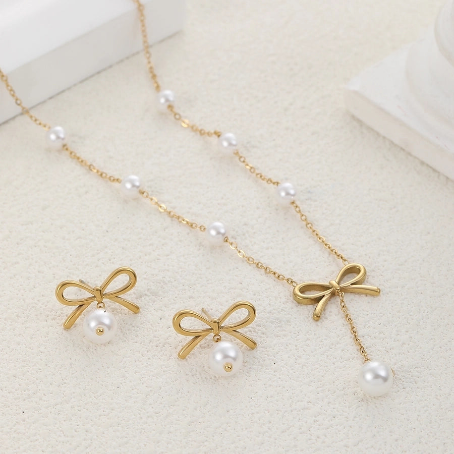 Jewelry Simple Style Classic Style Bow Knot 304 Stainless Steel Artificial Pearls 18K Gold Plated Jewelry Set