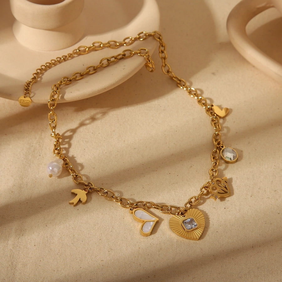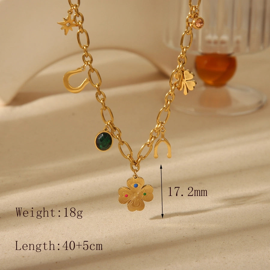 Jewelry Simple Style Classic Style Commute Four Leaf Clover Red Heart 304 Stainless Steel Acrylic Zircon 18K Gold Plated Plating Inlay Pendant Necklace