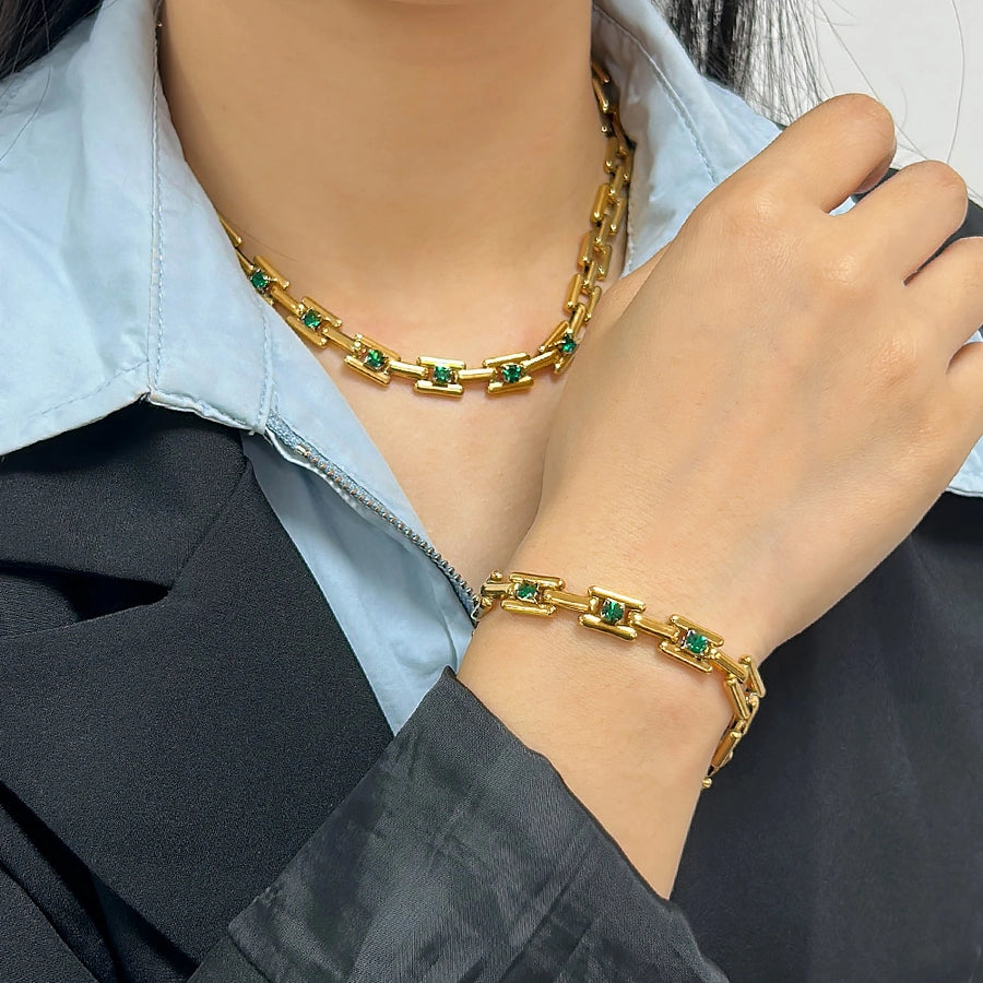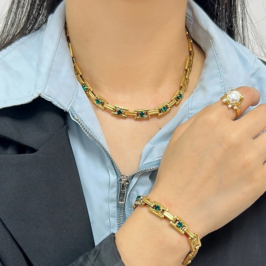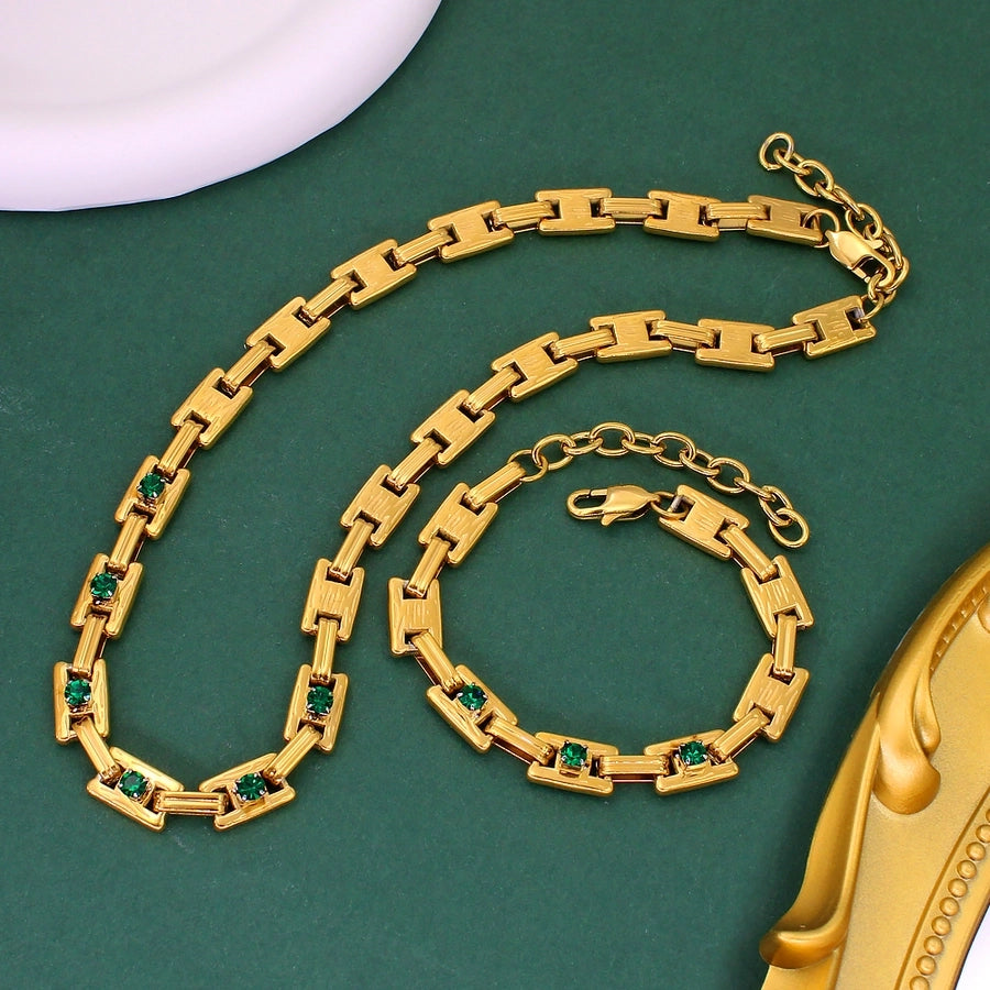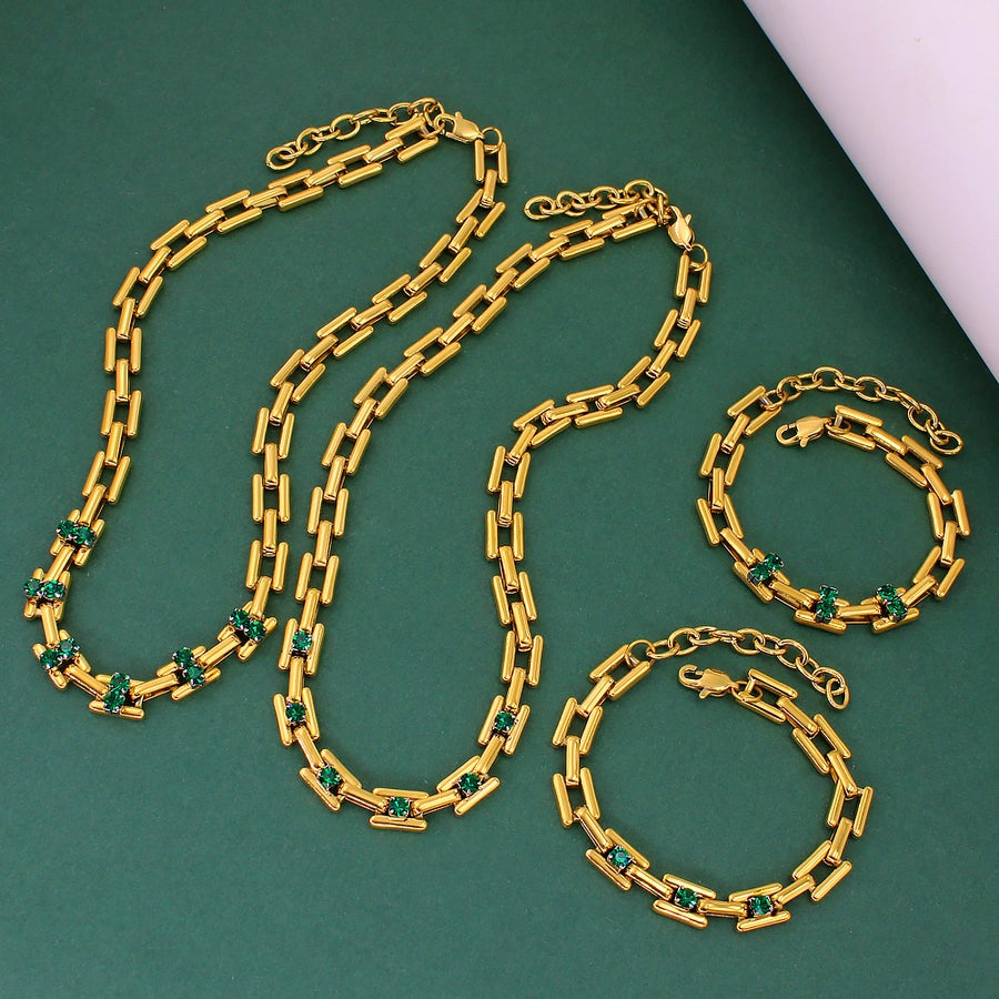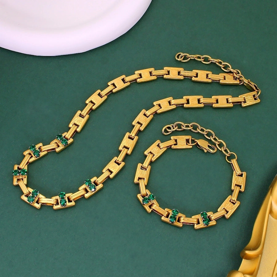 Jewelry Simple Style Classic Style Solid Color 304 Stainless Steel Rhinestones 18K Gold Plated Plating Inlay Jewelry Set