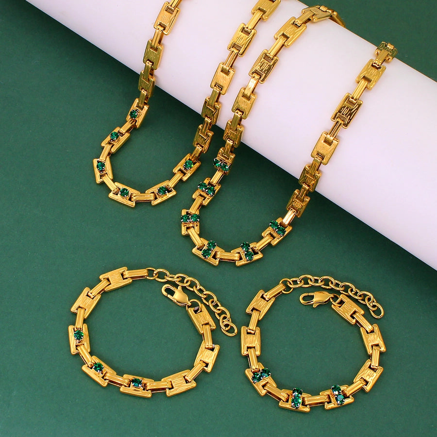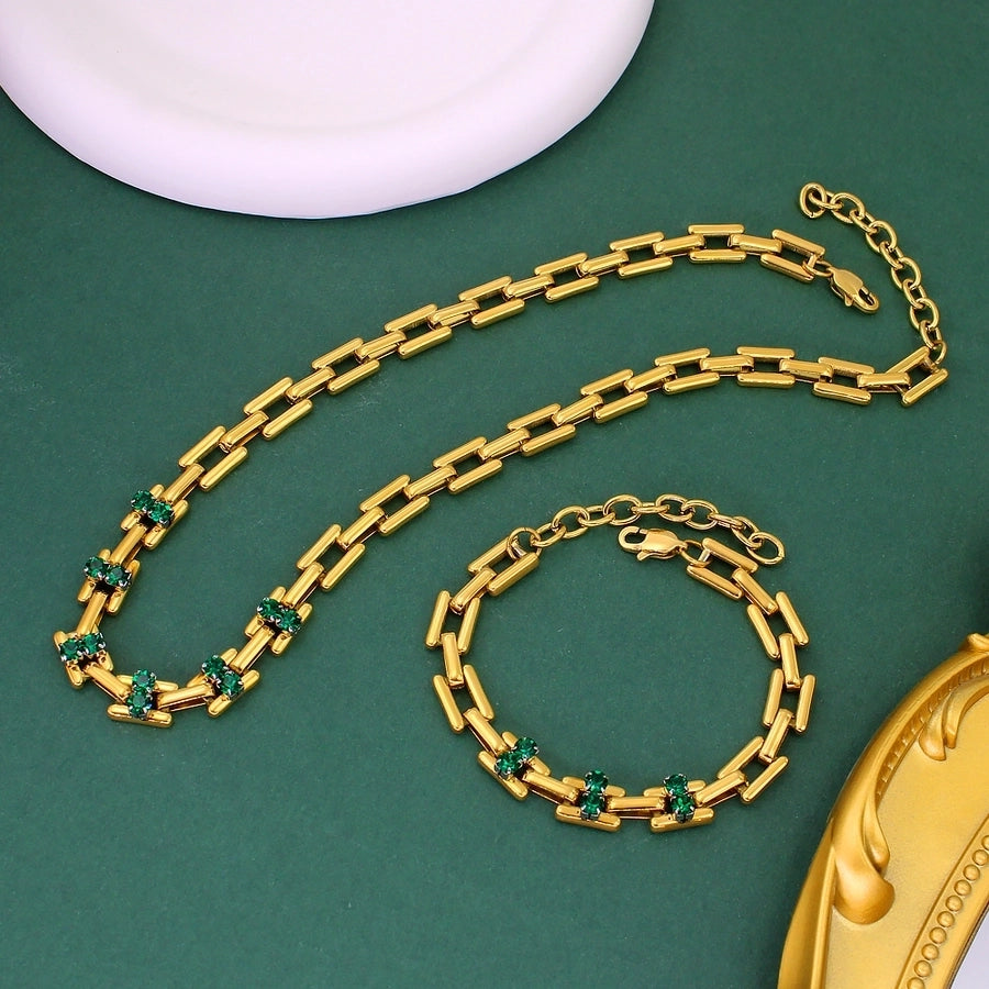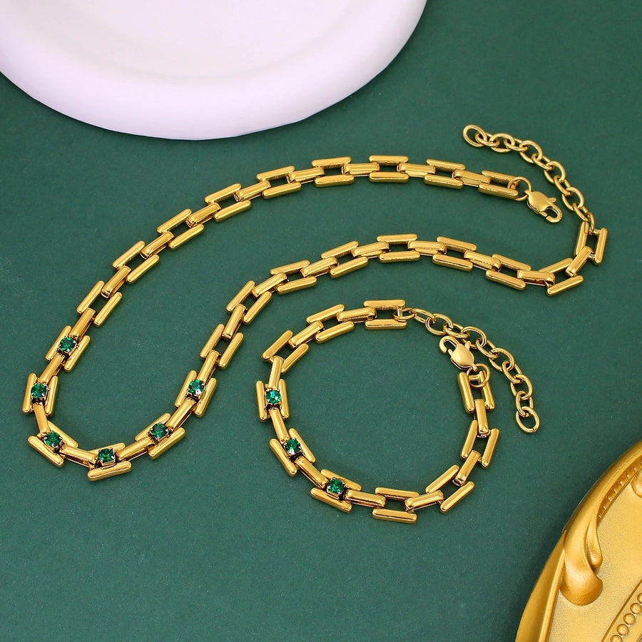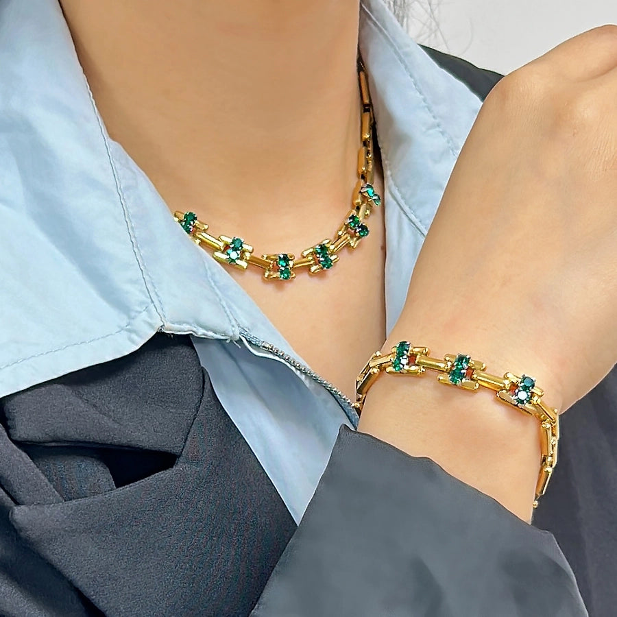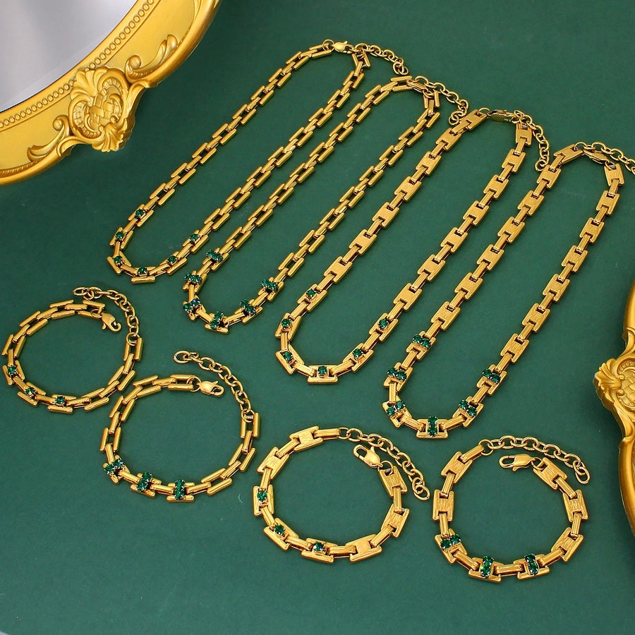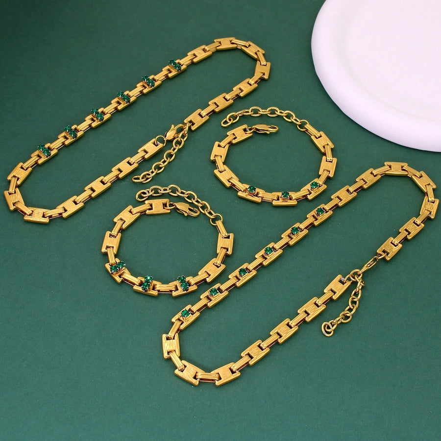 Jewelry Simple Style Classic Style Solid Color 304 Stainless Steel Rhinestones 18K Gold Plated Plating Inlay Jewelry Set