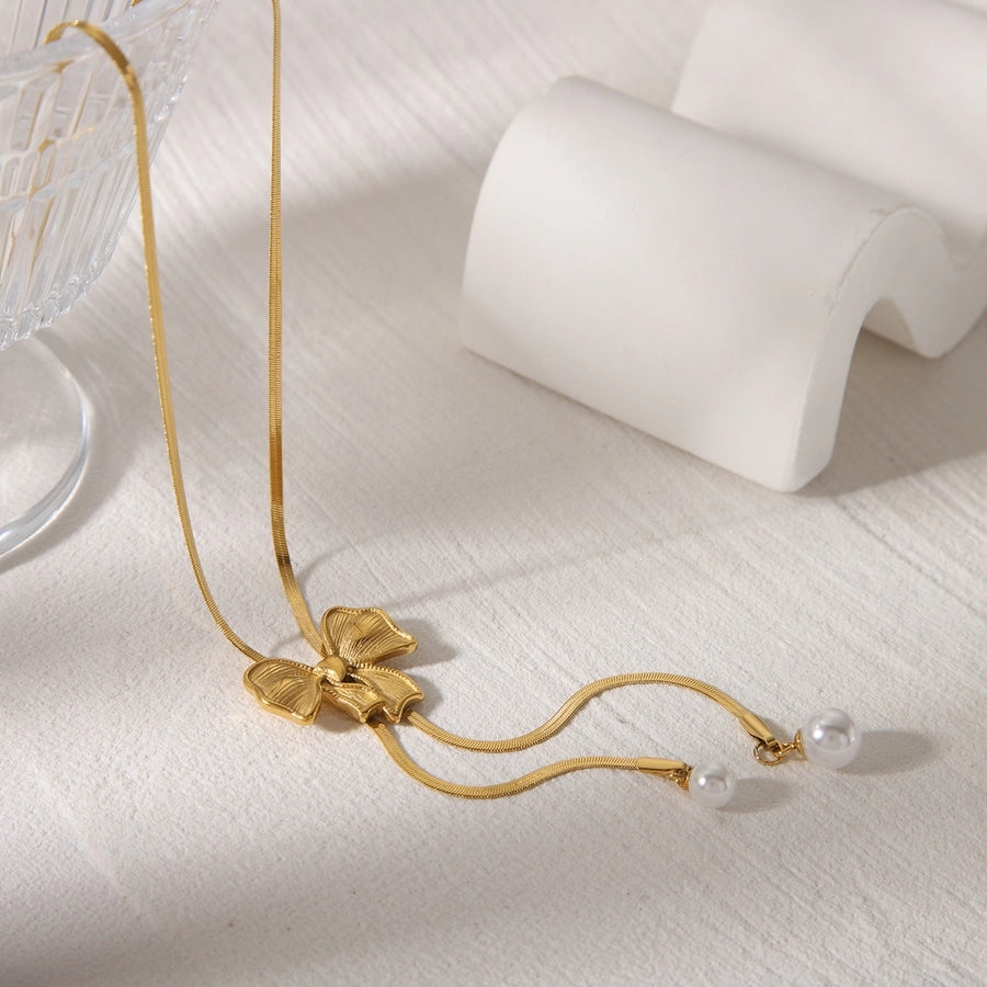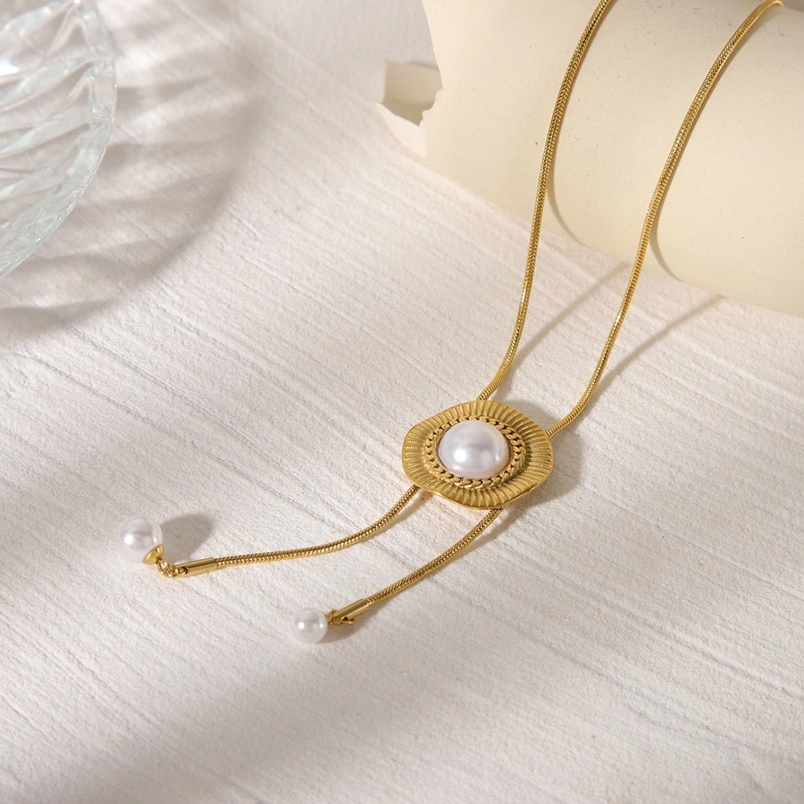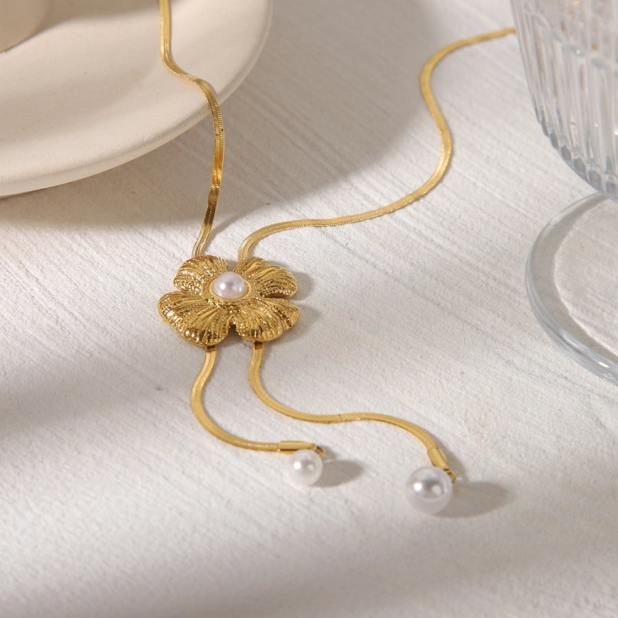 Jewelry Simple Style Flower 304 Stainless Steel Artificial Pearls 18K Gold Plated Inlay Pendant Necklace