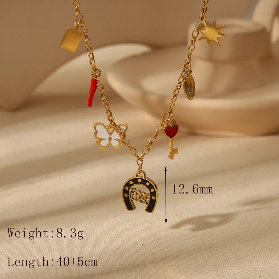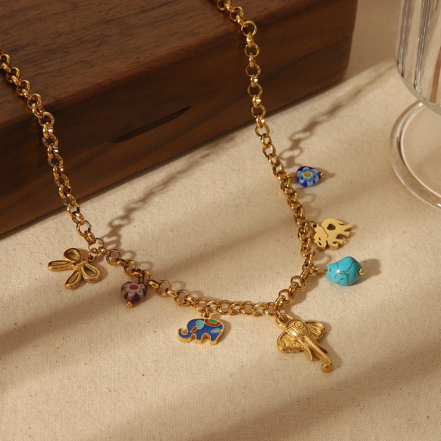 Jewelry Vintage Style Simple Style Artistic Elephant Butterfly Bow Knot 304 Stainless Steel Natural Stone 18K Gold Plated Epoxy Pendant Necklace