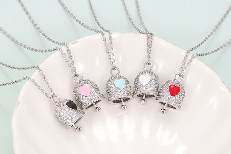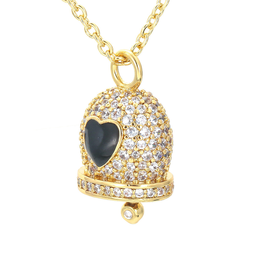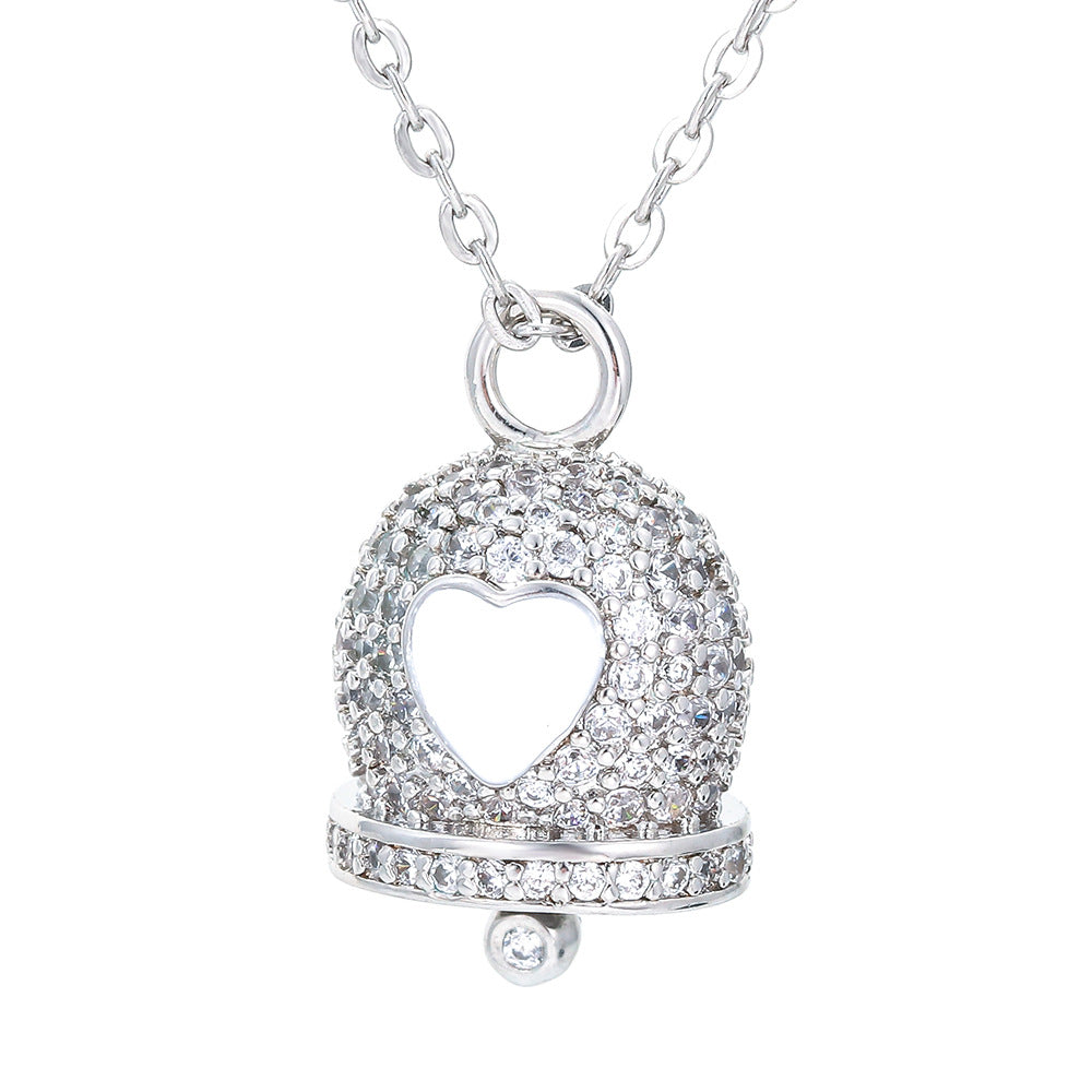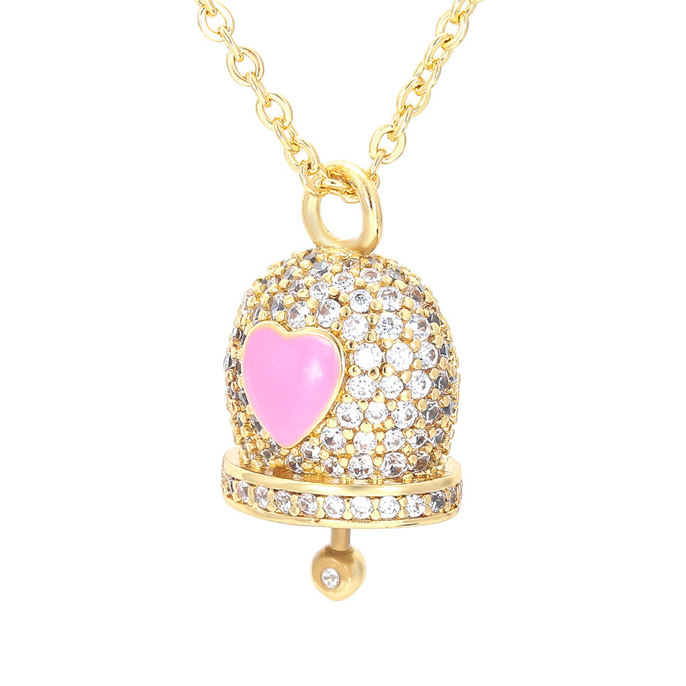 korean style bell copper pendant necklace inlay zircon copper necklaces