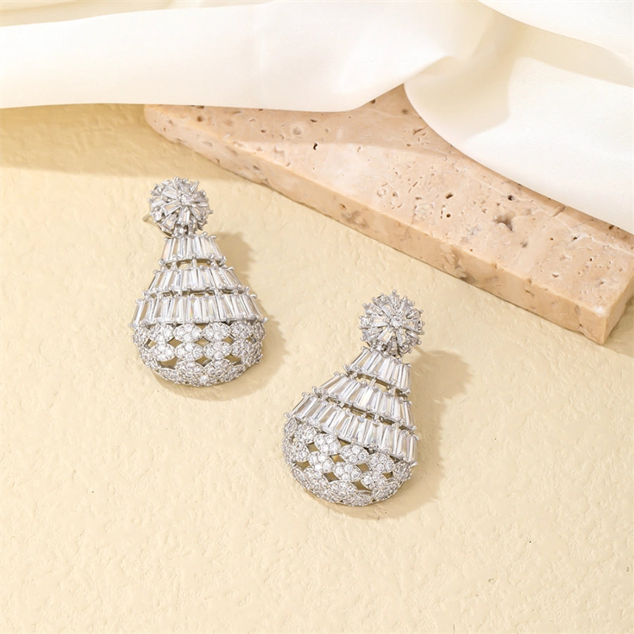 lady shiny water droplets copper plating hollow out inlay zircon earrings necklace