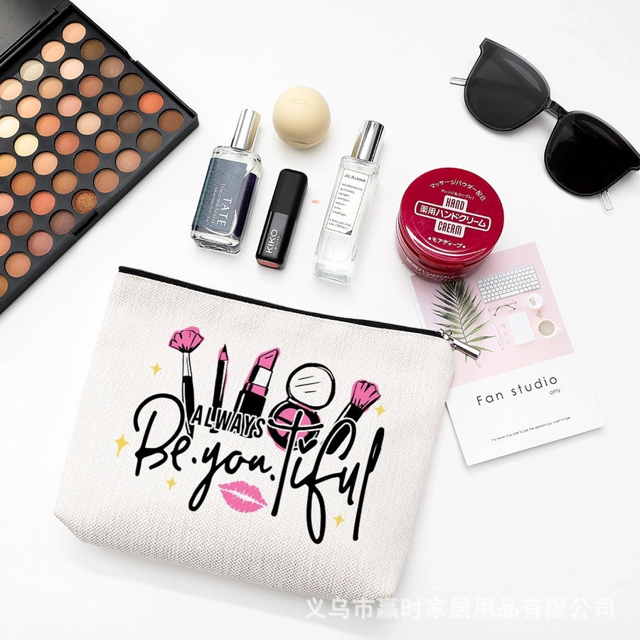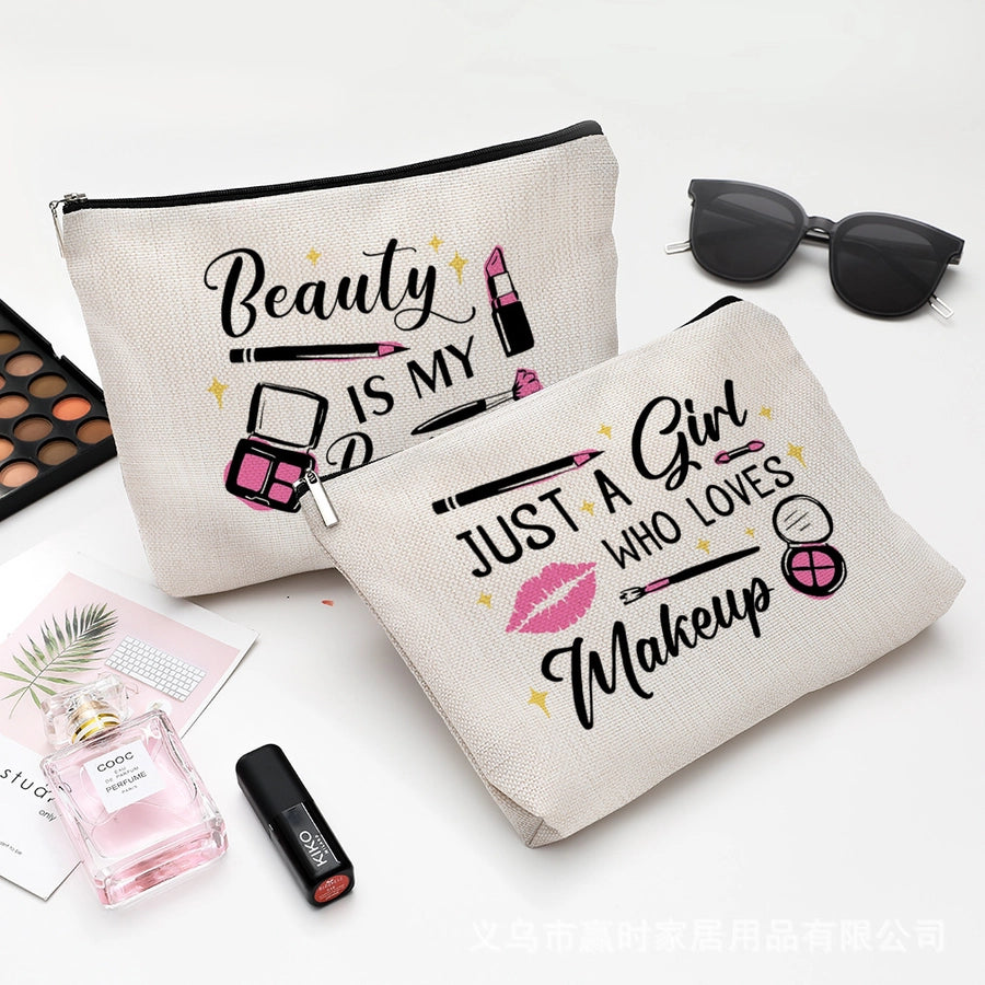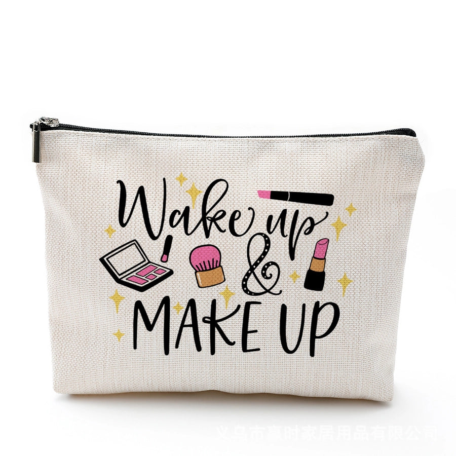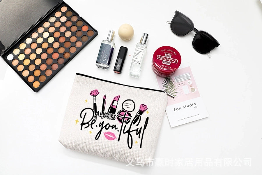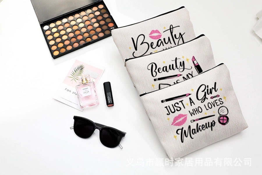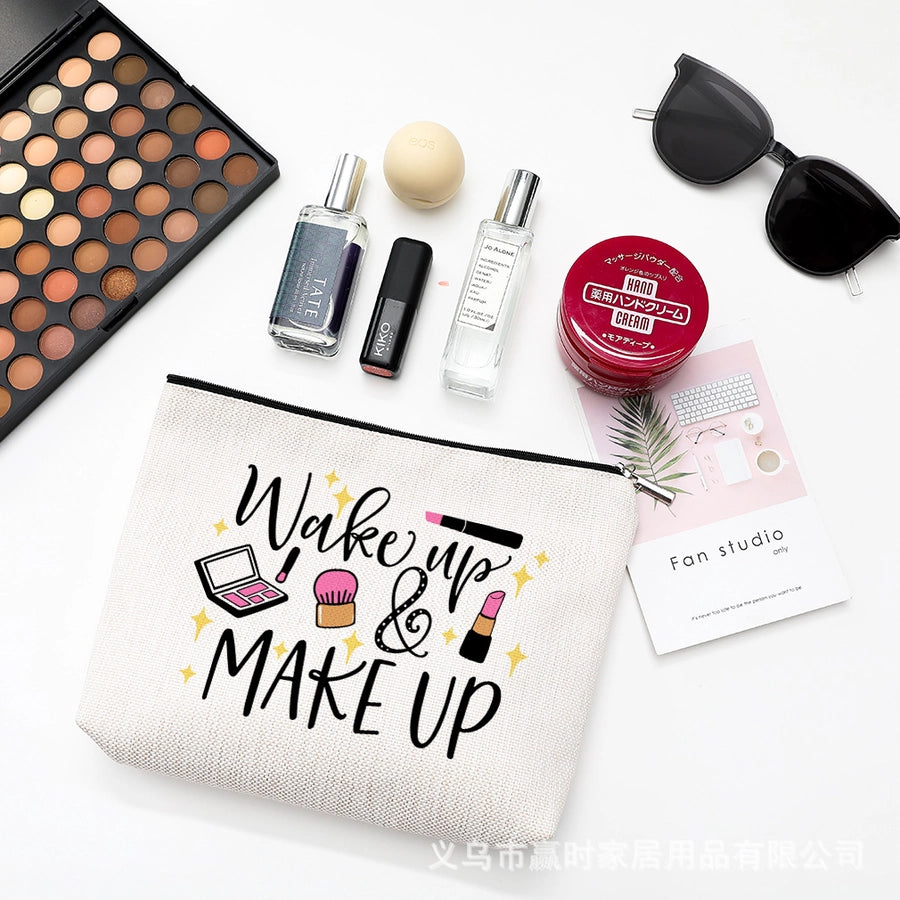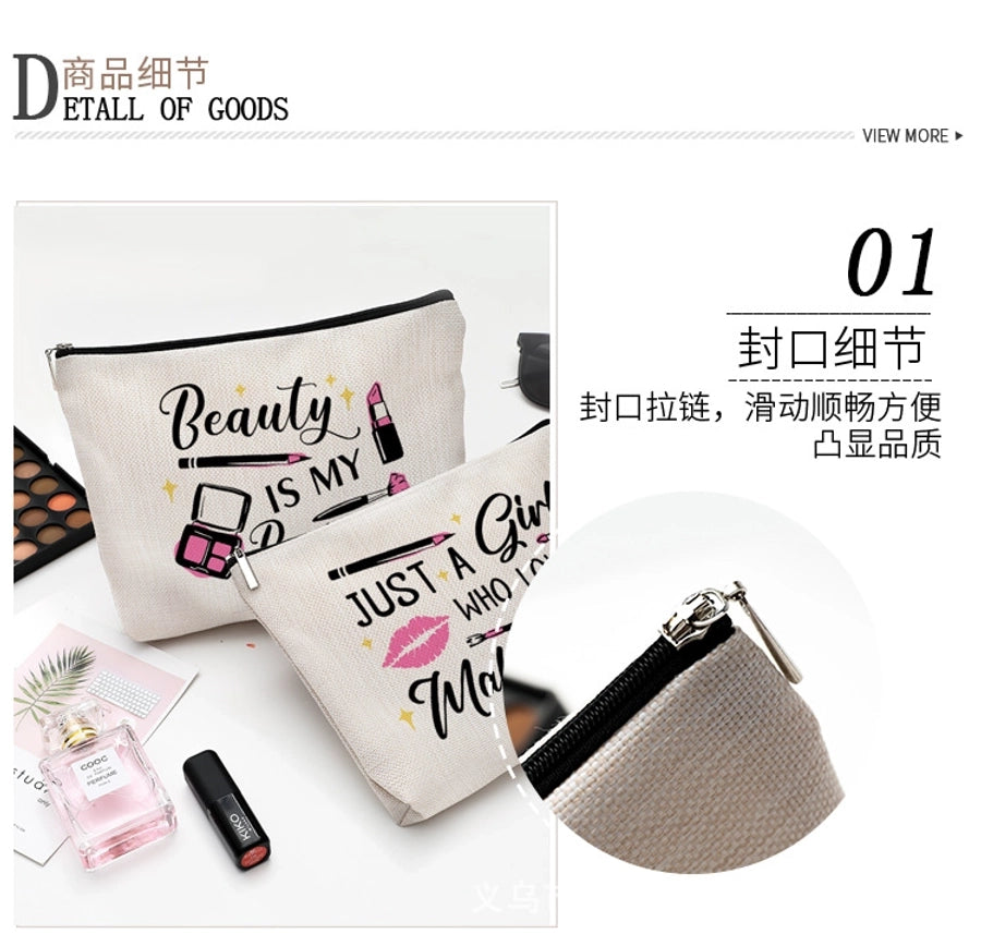 new modern simple style letter printing cotton and linen waterproof cosmetic bag zipper storage bag