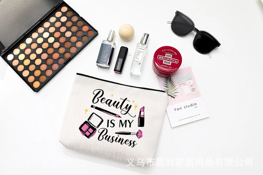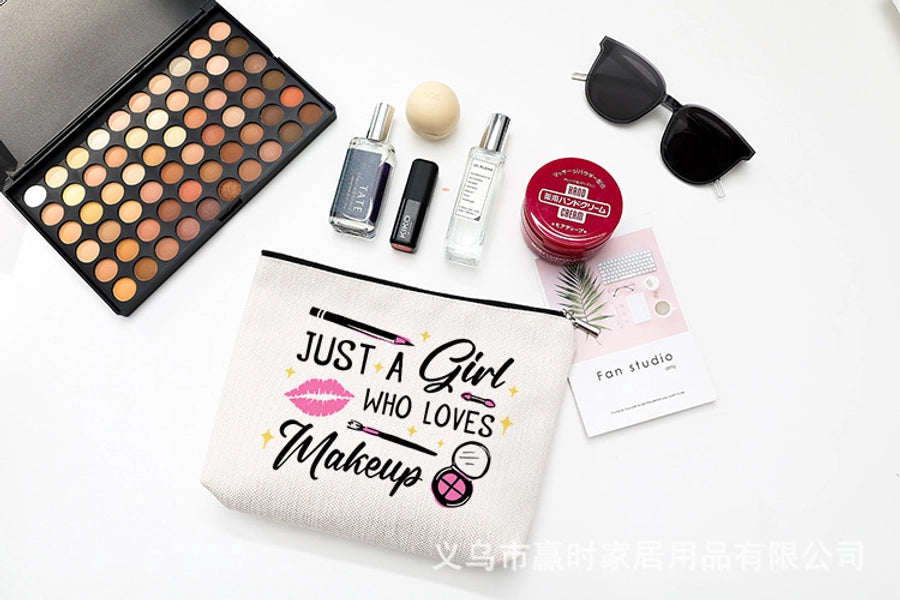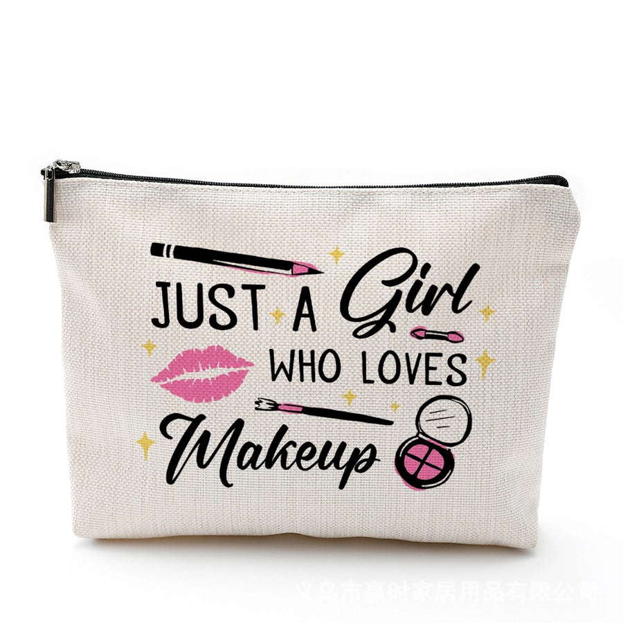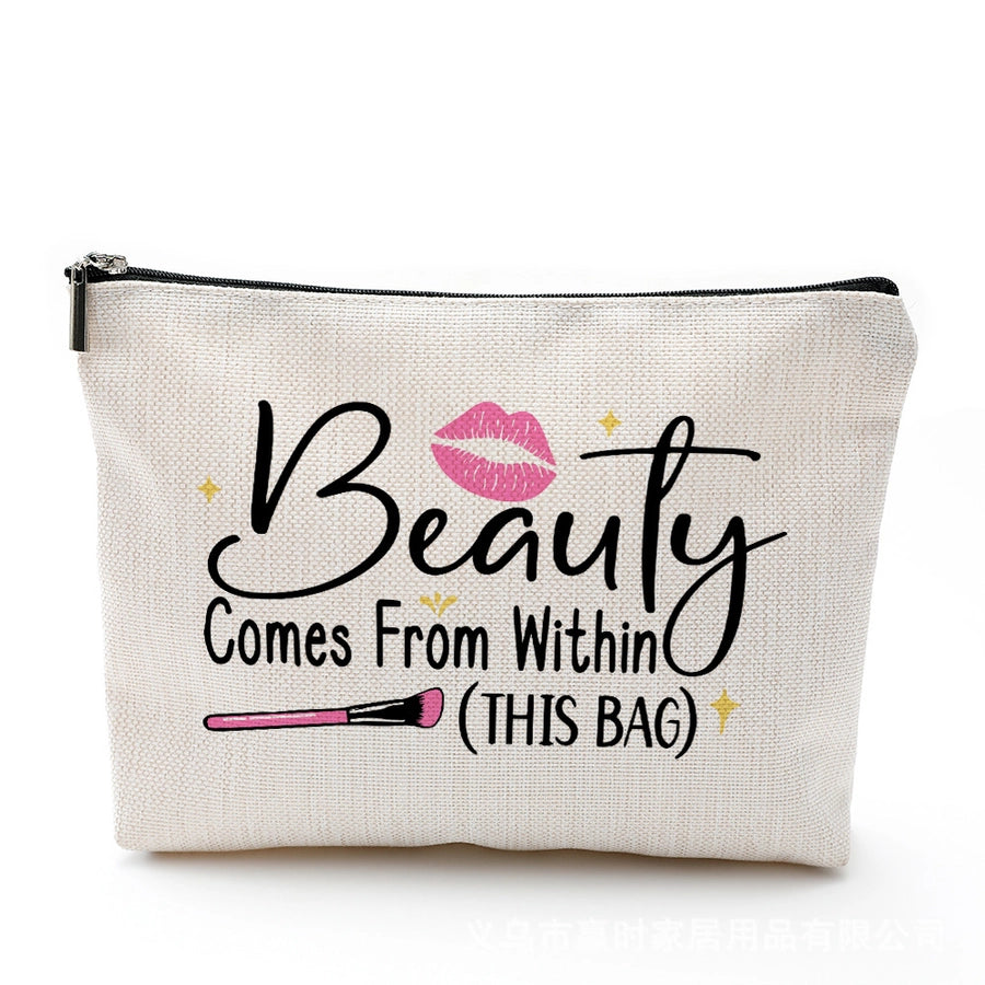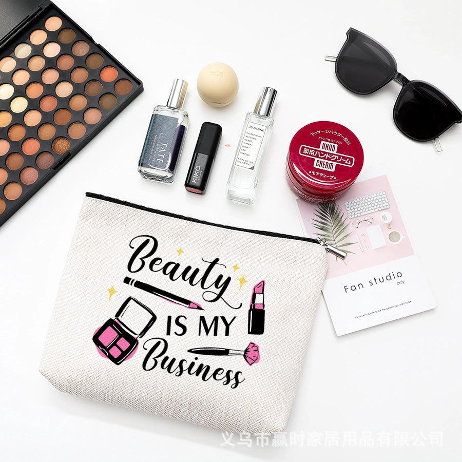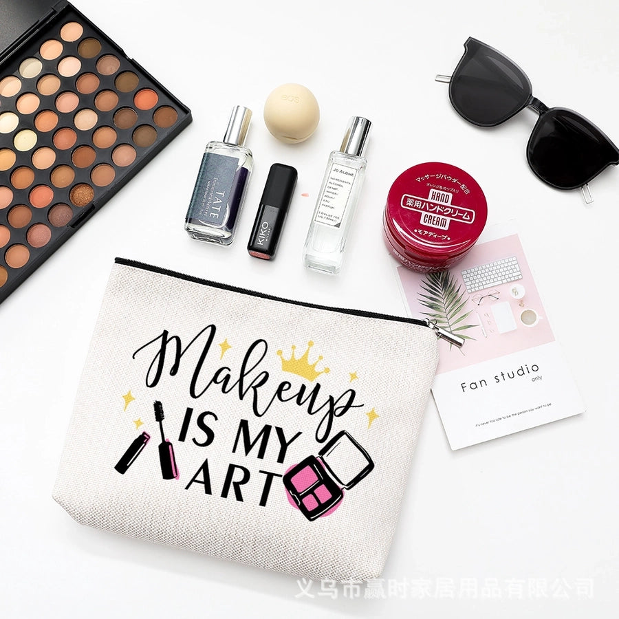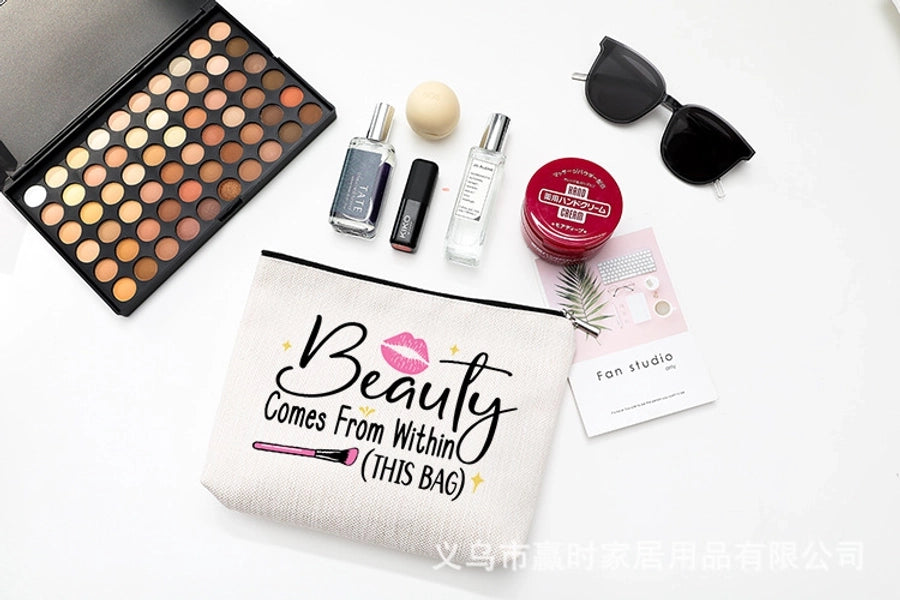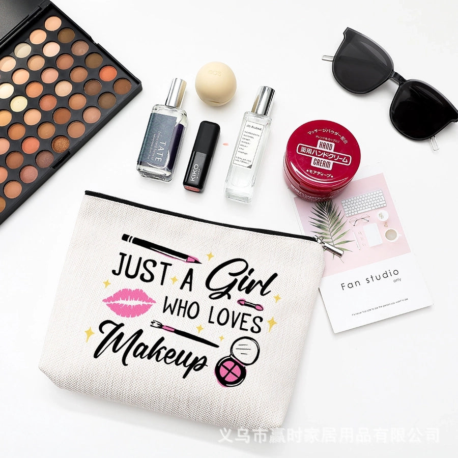 new modern simple style letter printing cotton and linen waterproof cosmetic bag zipper storage bag