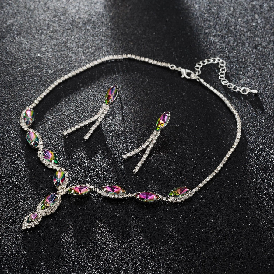 princess glam water droplets rhinestones artificial crystal earrings necklace