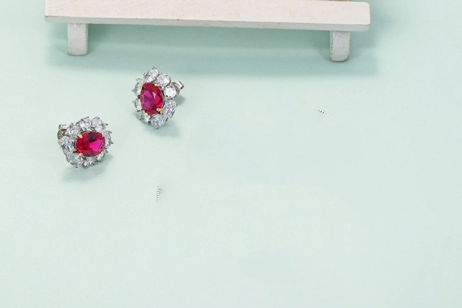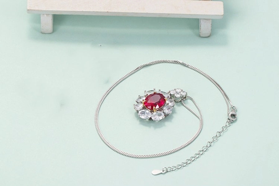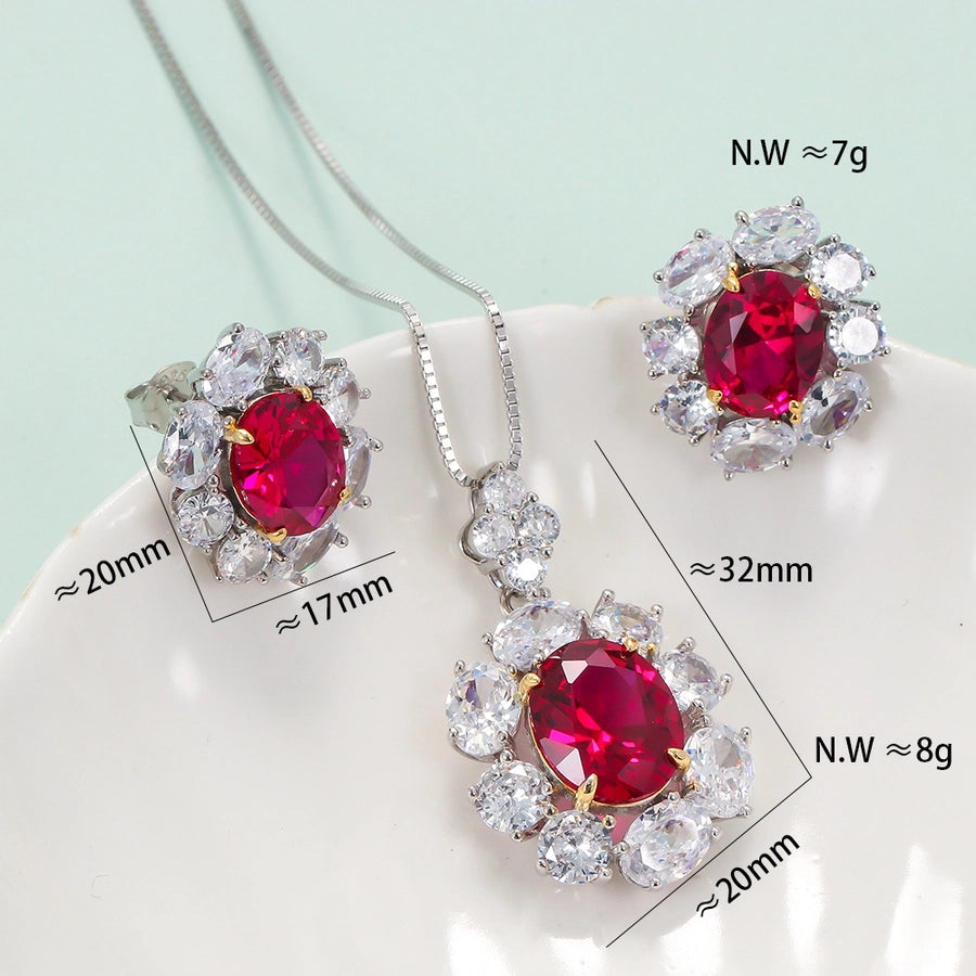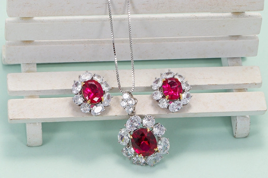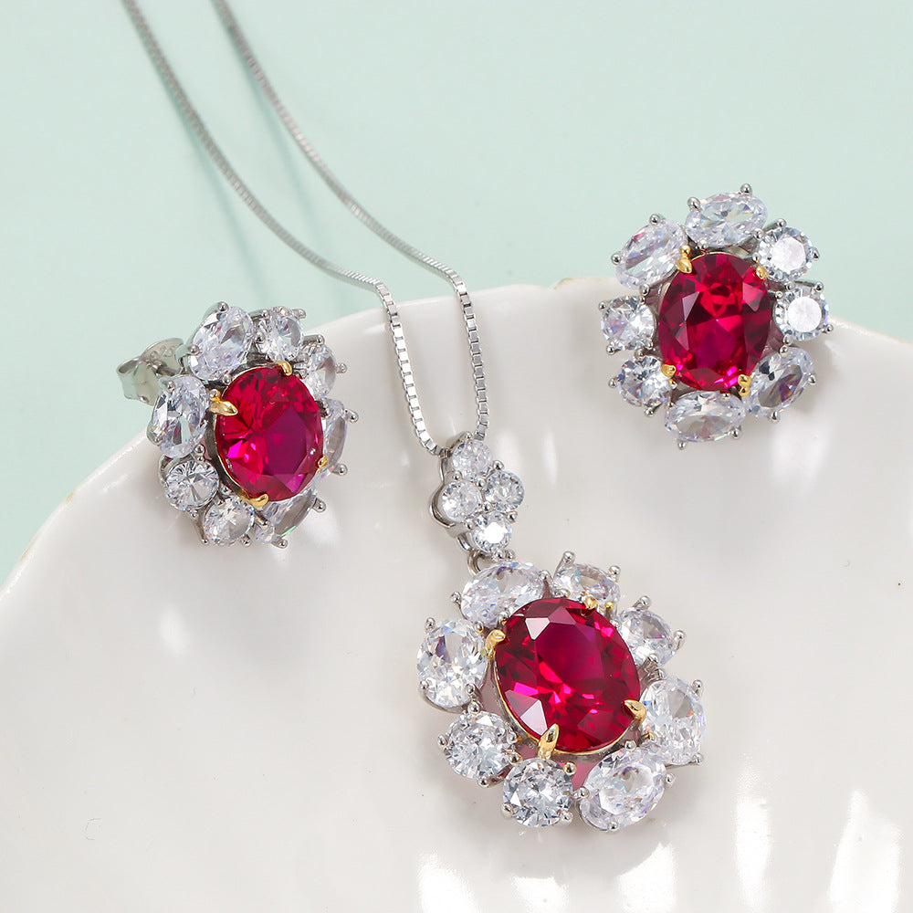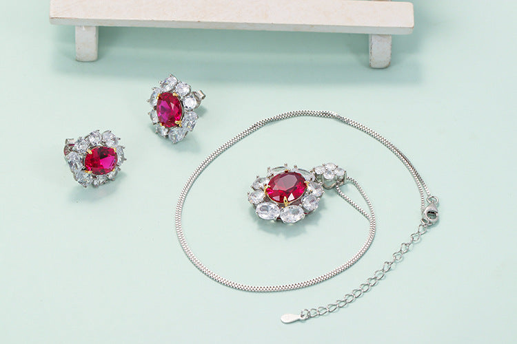 Retro flower 925 silver inlay artificial gemstones women's earrings necklace