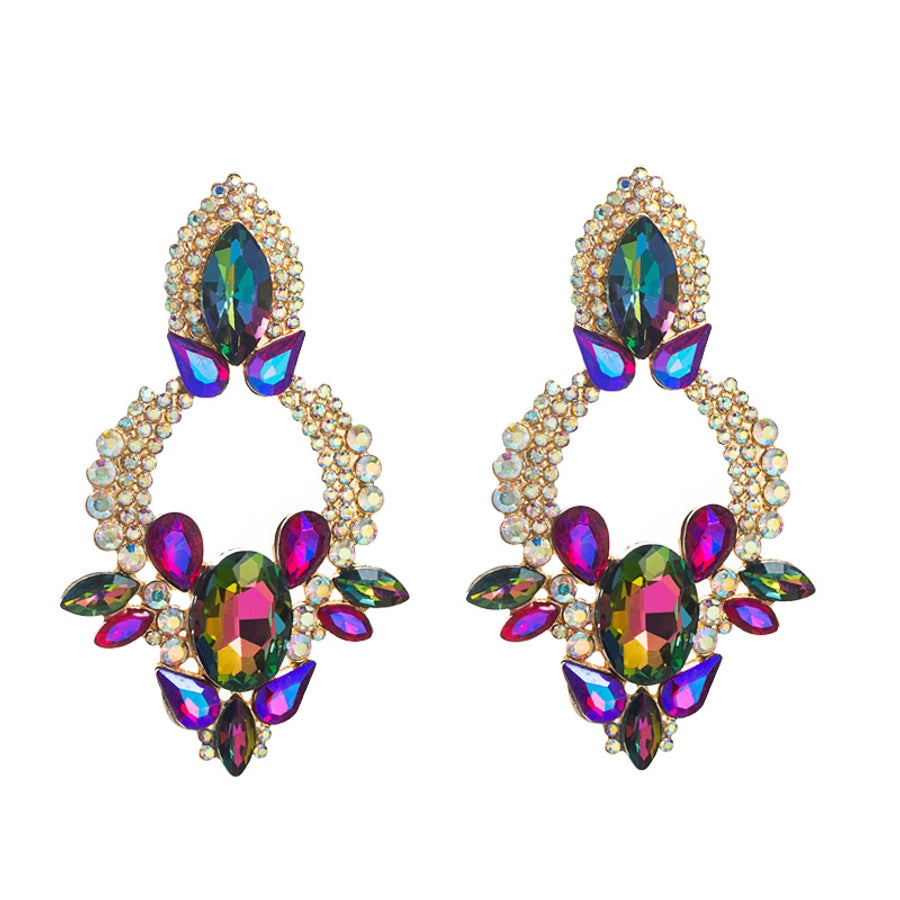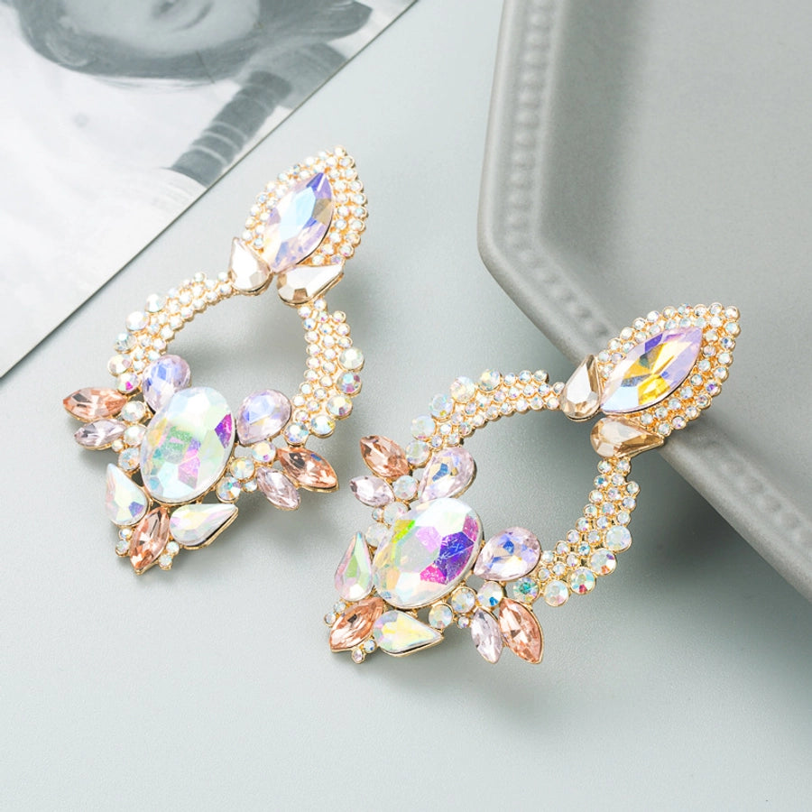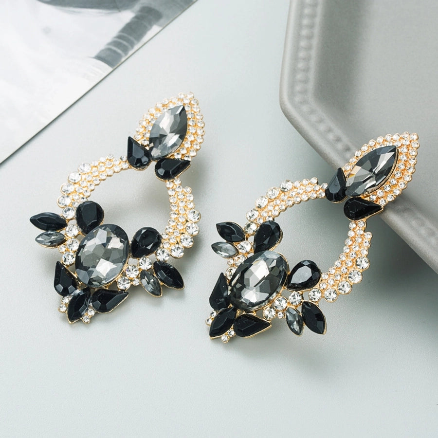 retro style creative alloy diamond glass drill rhinestone flower earrings