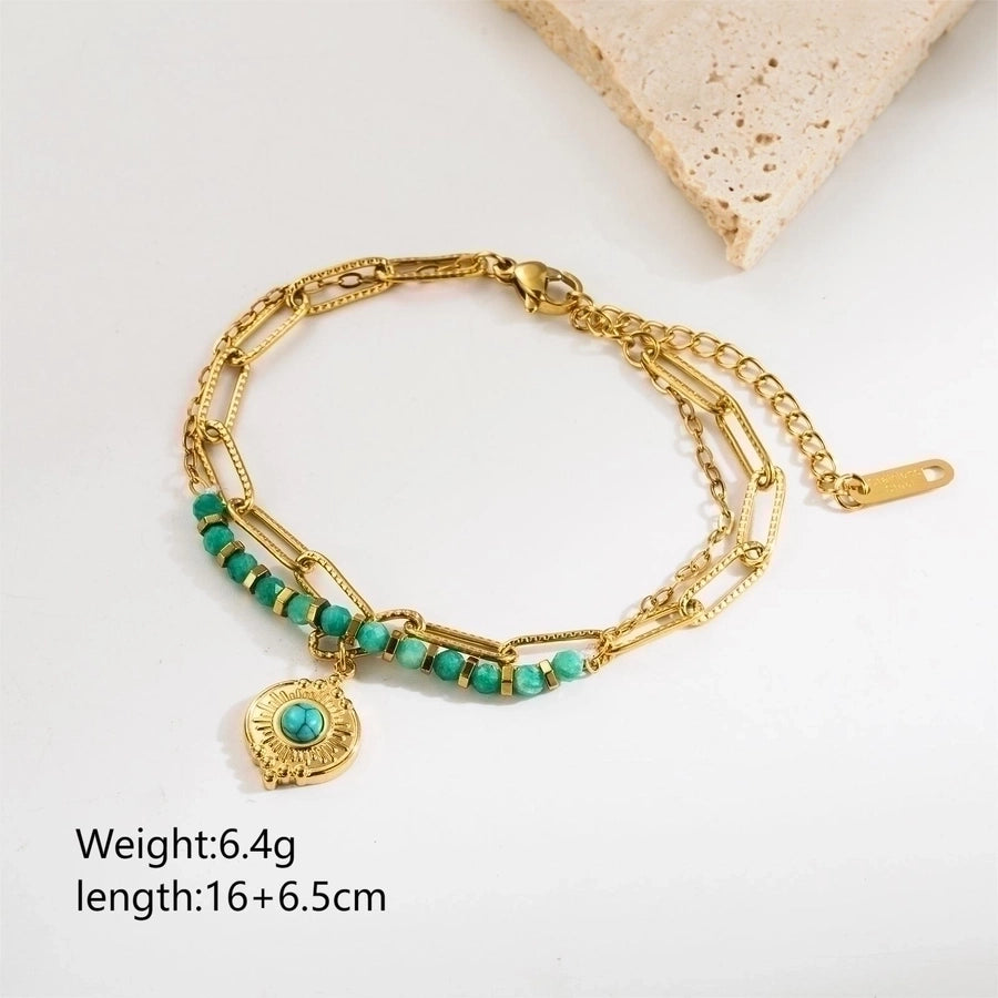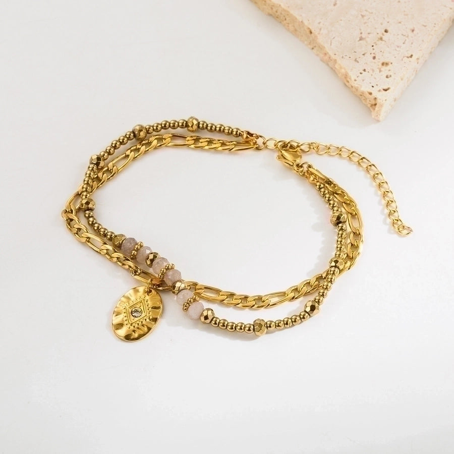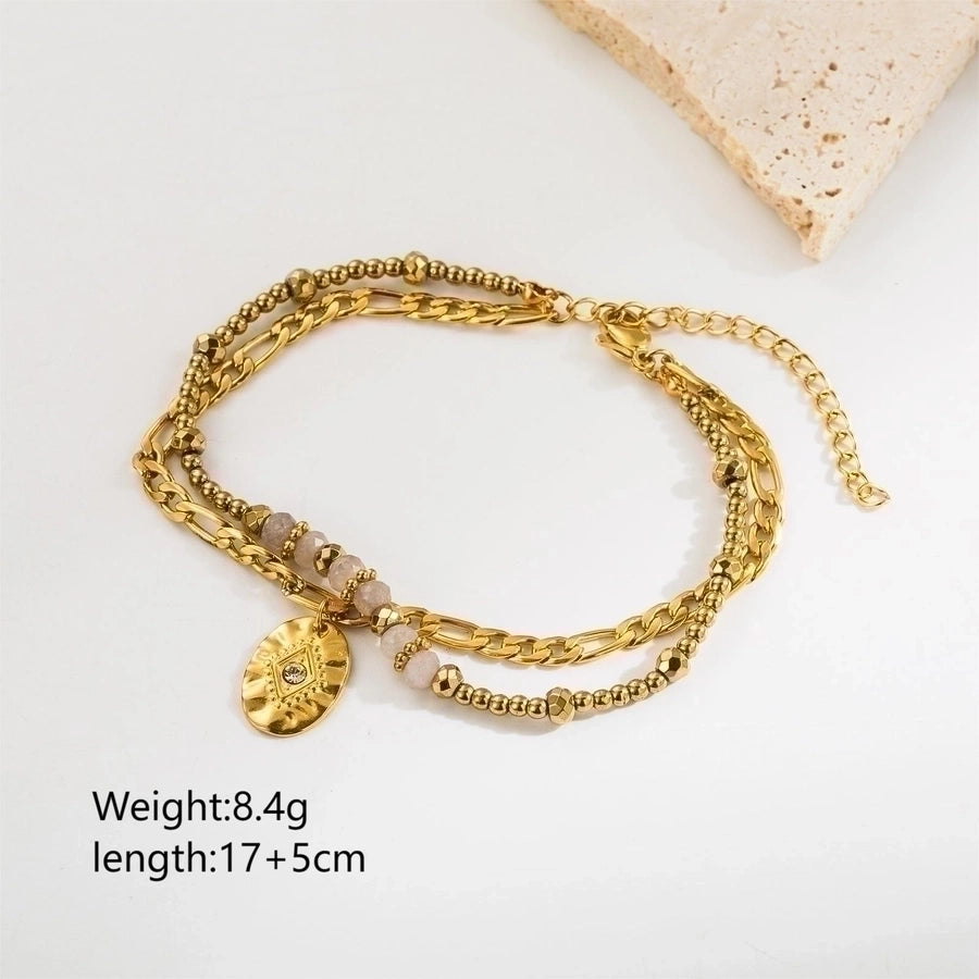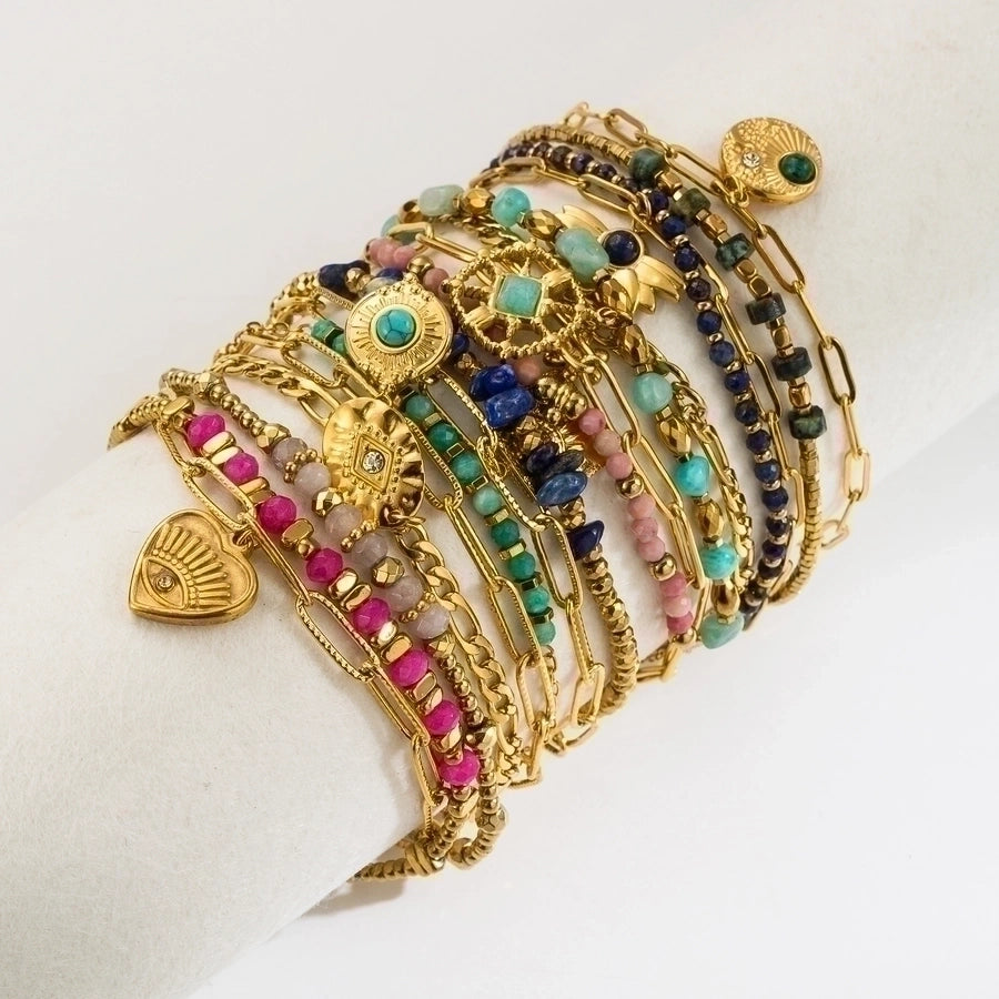 retro vacation heart shape eye stainless steel natural stone beaded plating inlay zircon 18k gold plated bracelets