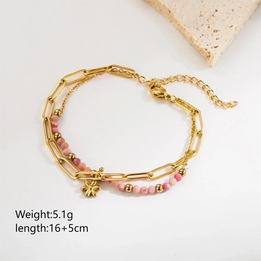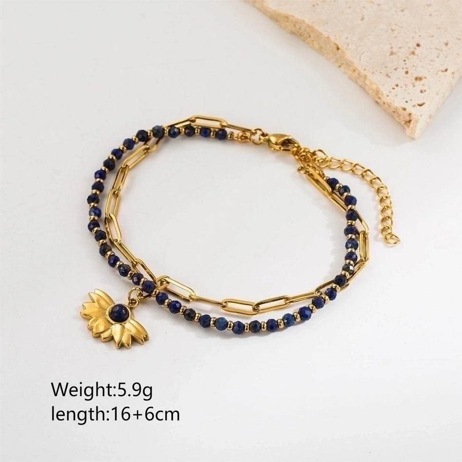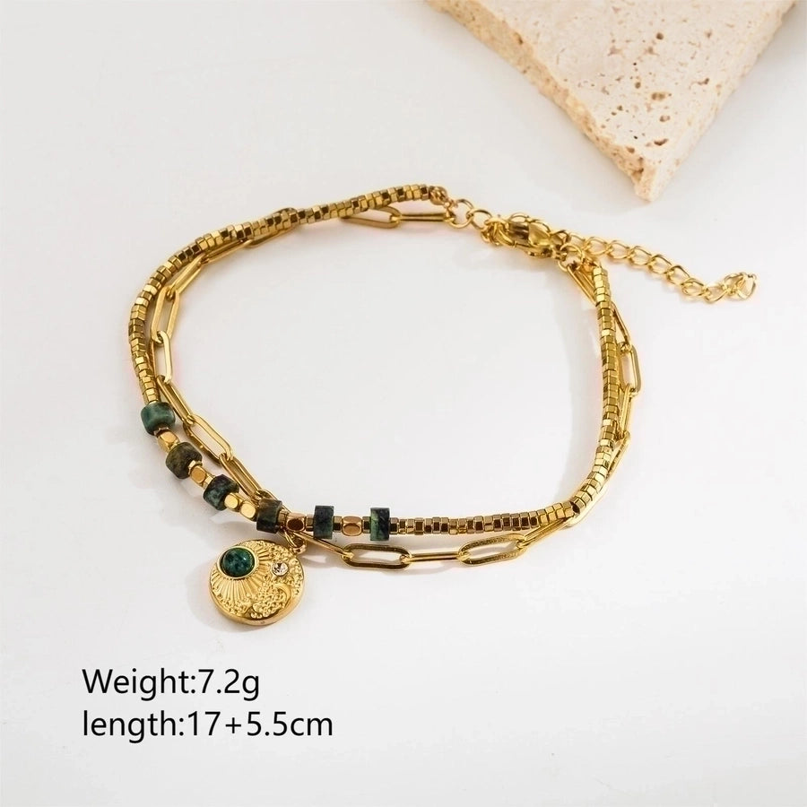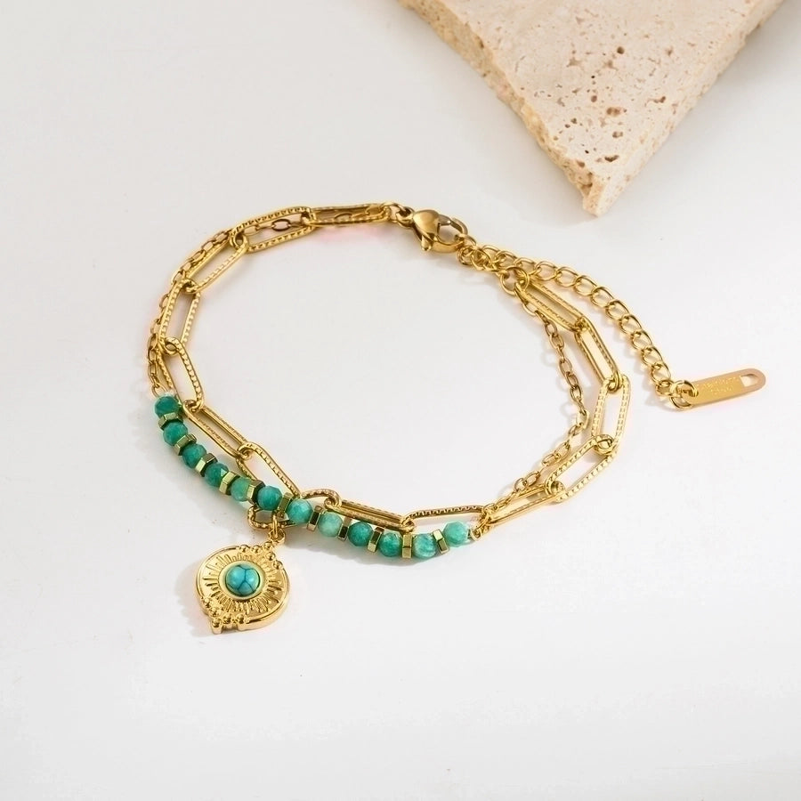 retro vacation heart shape eye stainless steel natural stone beaded plating inlay zircon 18k gold plated bracelets