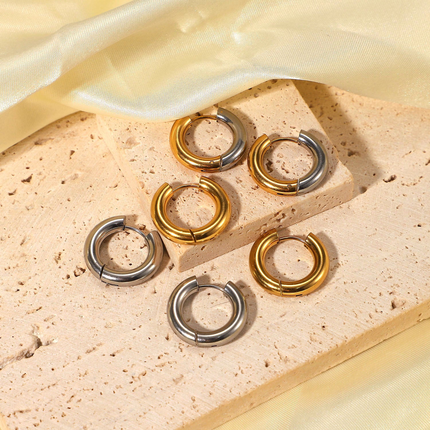 simple 18k gold-plated stainless steel jewelry gold and silver hoop earrings jewelry