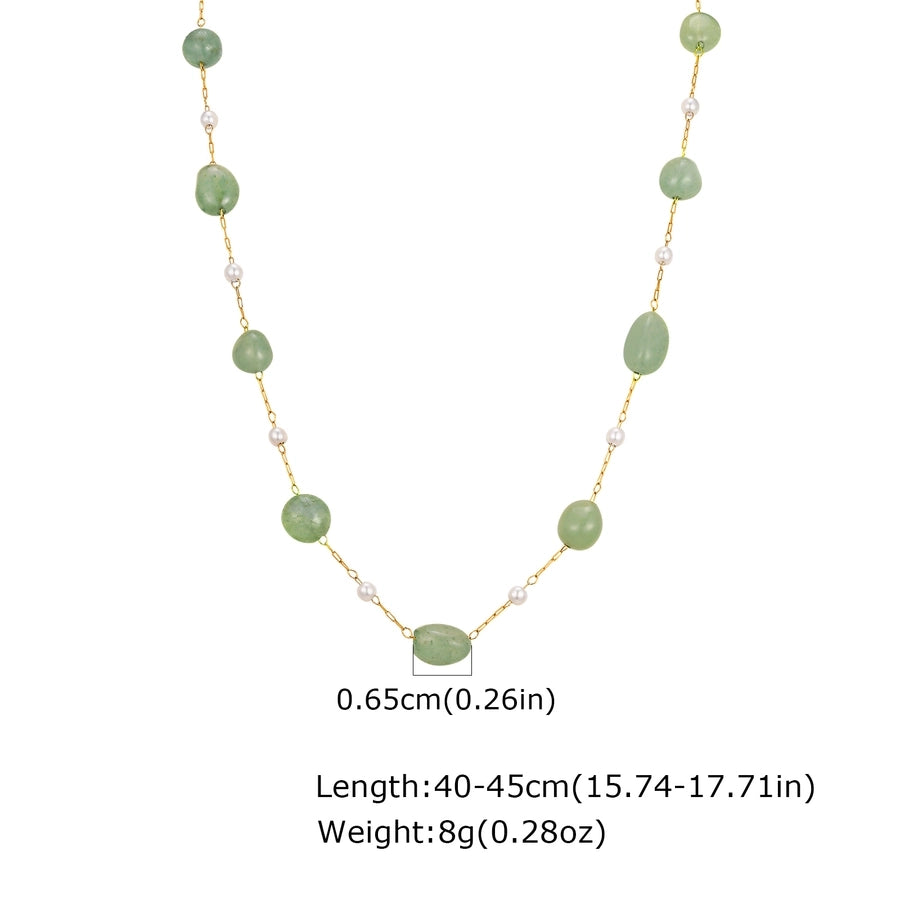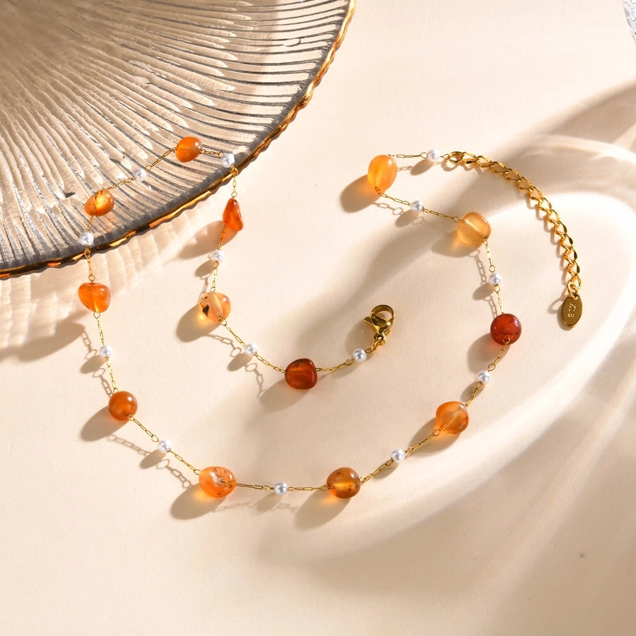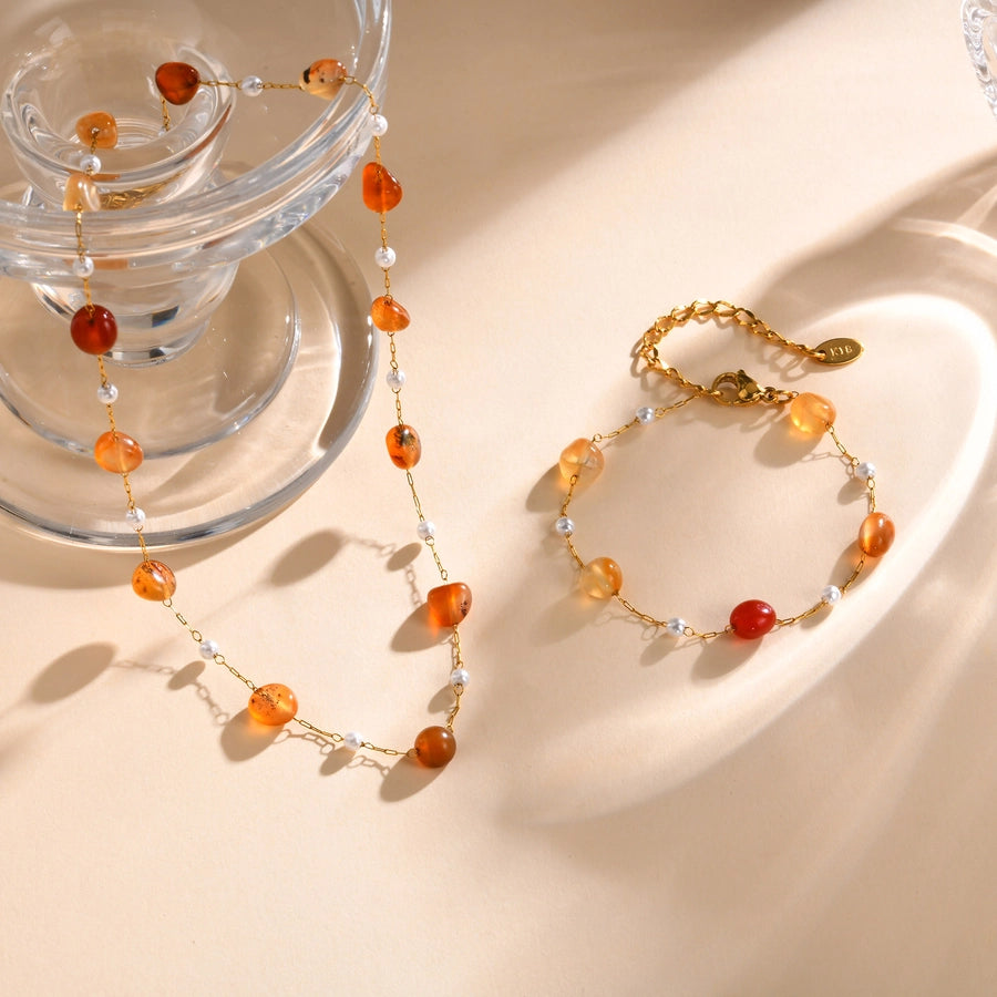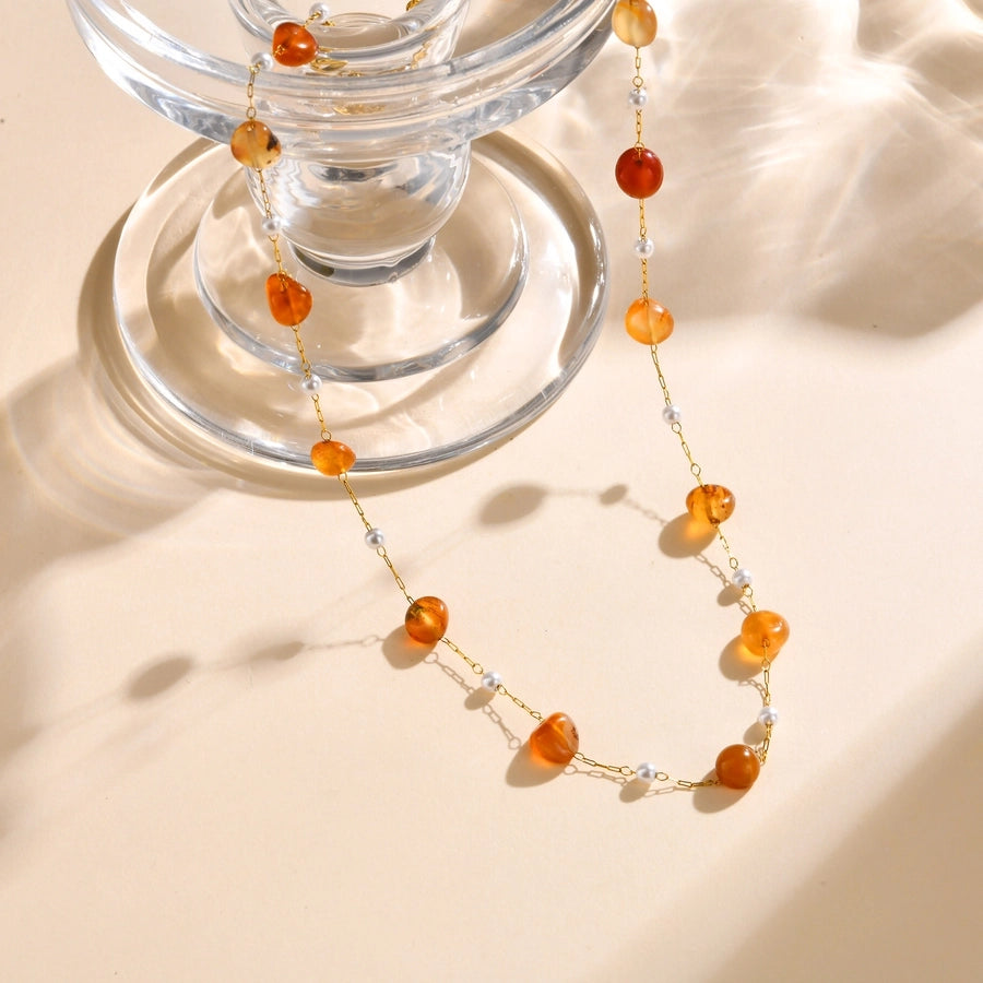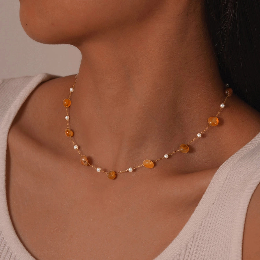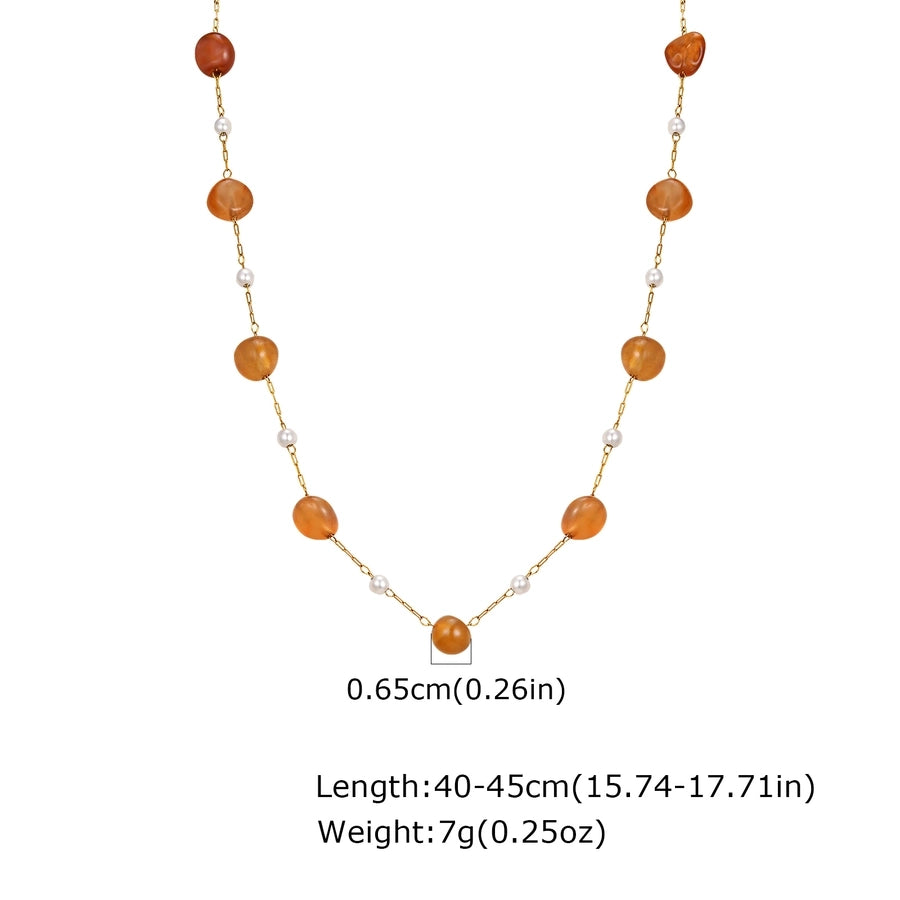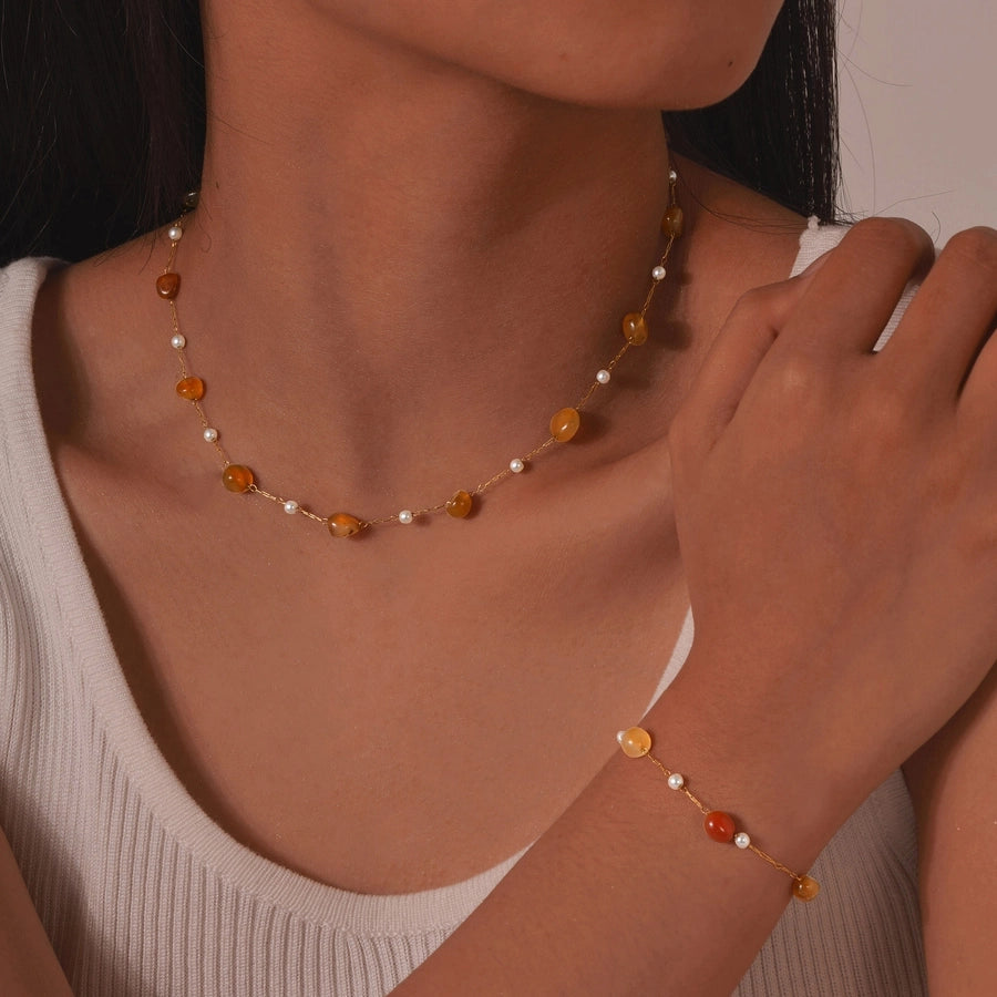 Stainless Steel Plated 18K Gold Chain Imitation Amber Stone Imitation Jade Imitation Pearl Chain Jewelry Suit Necklace
