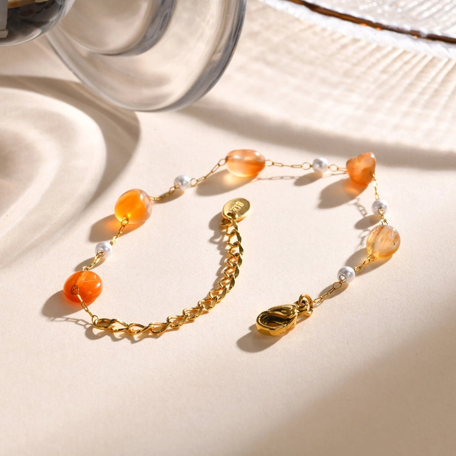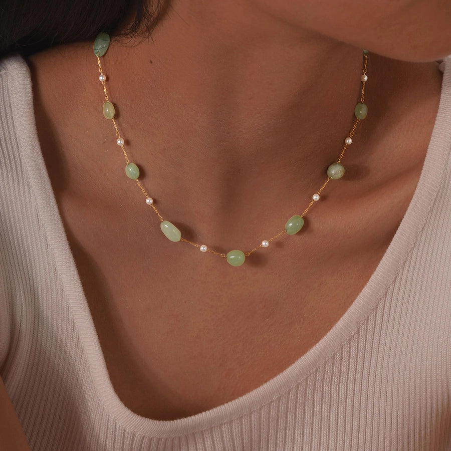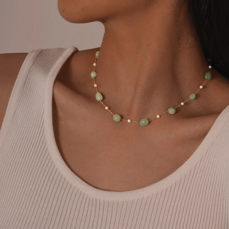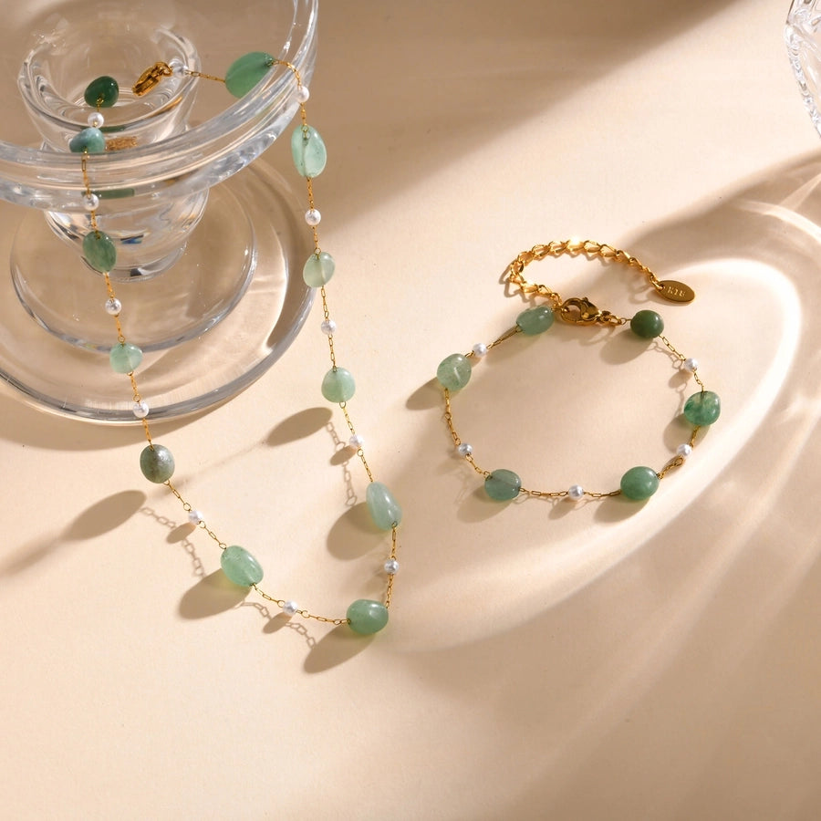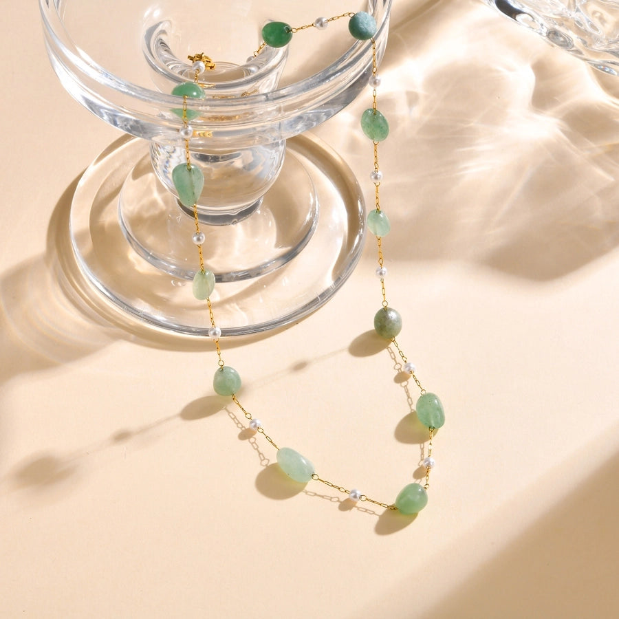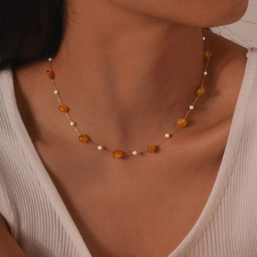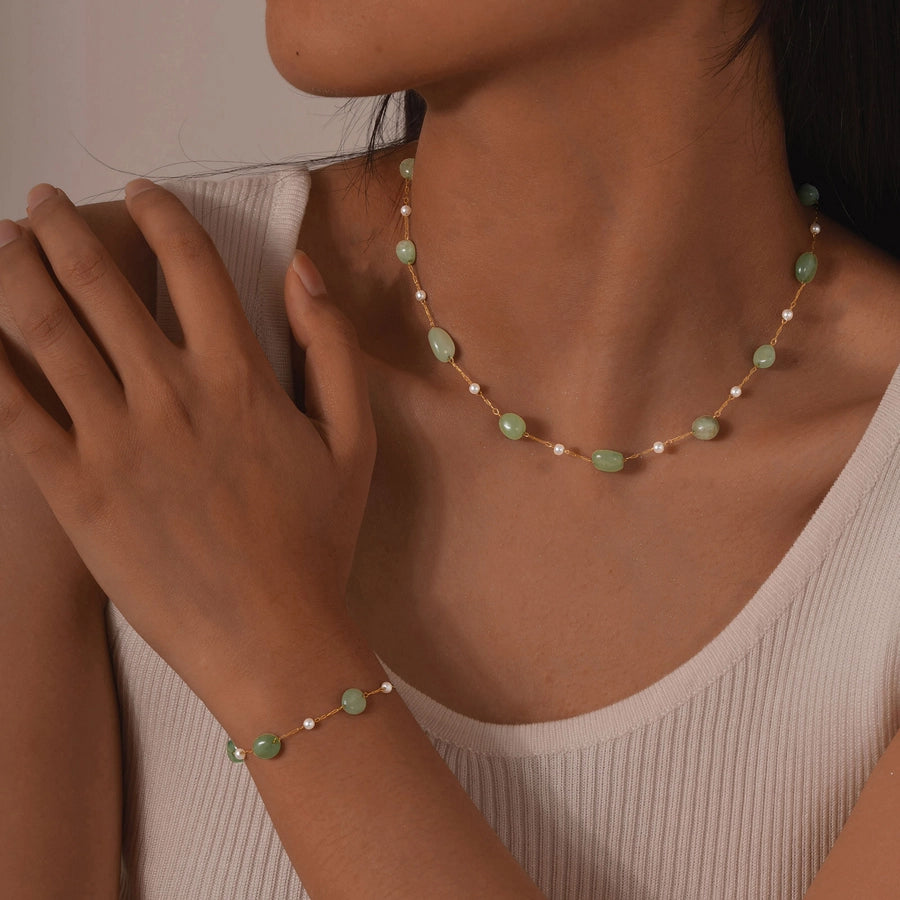 Stainless Steel Plated 18K Gold Chain Imitation Amber Stone Imitation Jade Imitation Pearl Chain Jewelry Suit Necklace