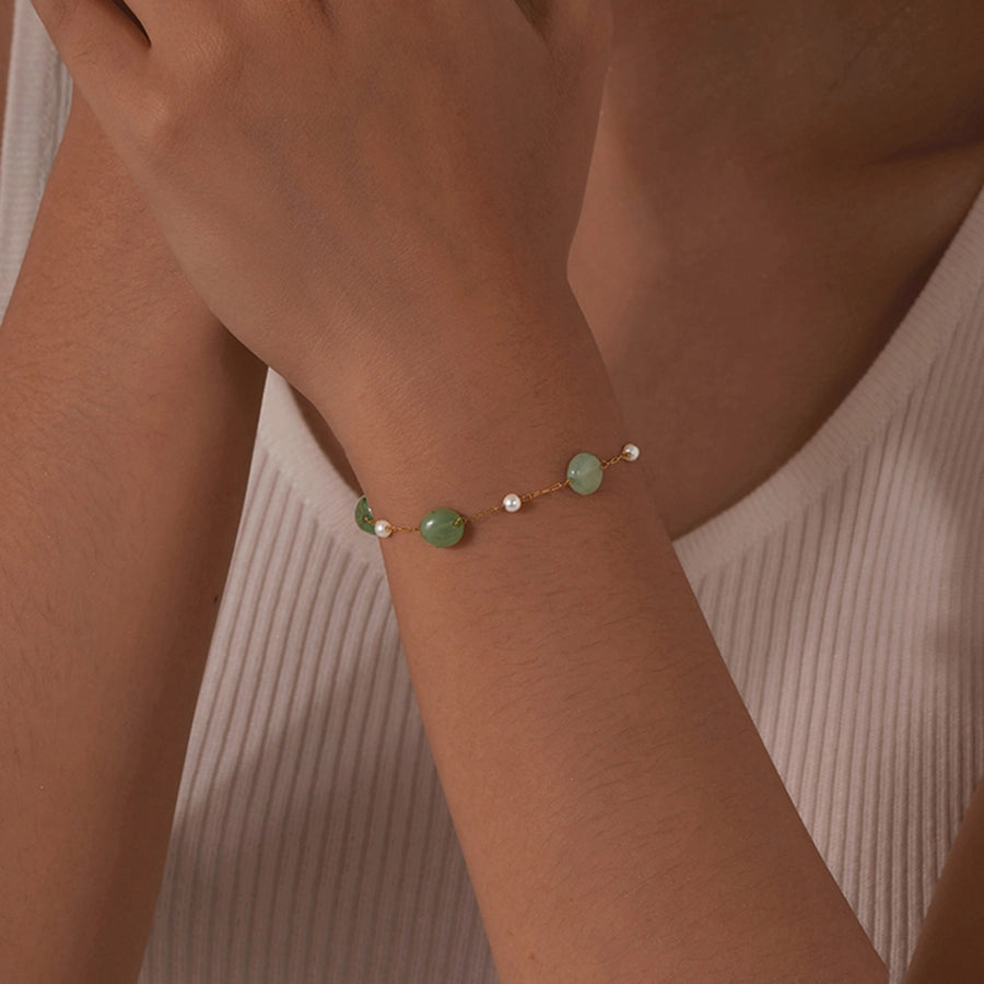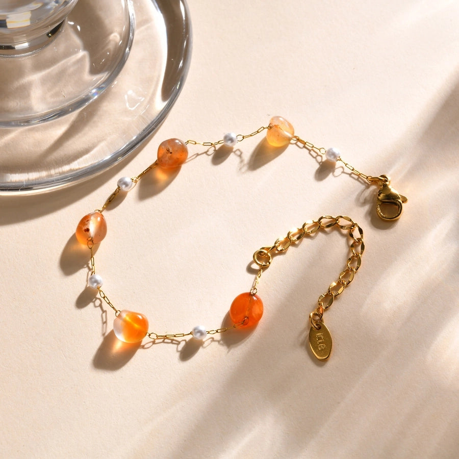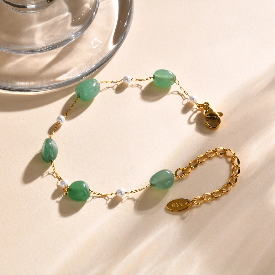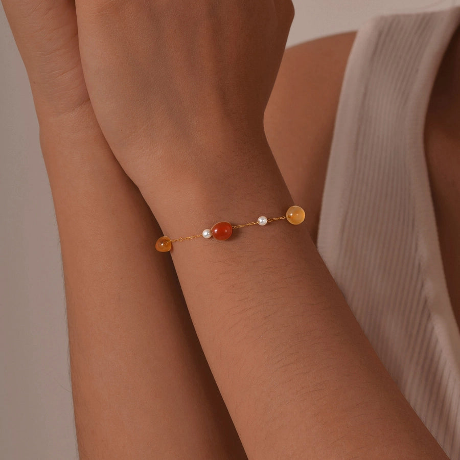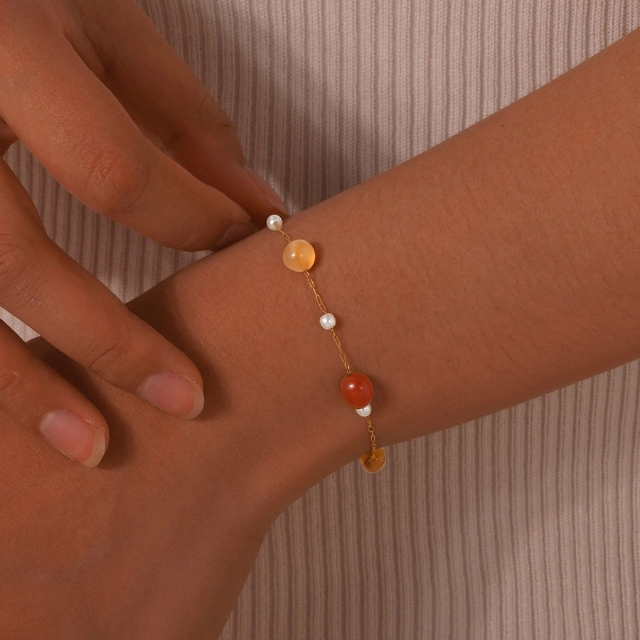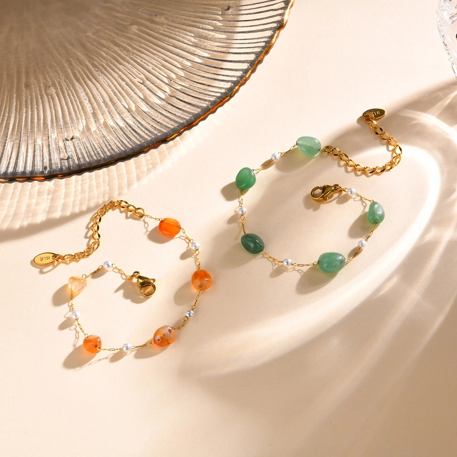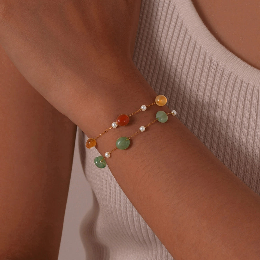 Stainless Steel Plated 18K Gold Chain Imitation Amber Stone Imitation Jade Imitation Pearl Chain Jewelry Suit Necklace
