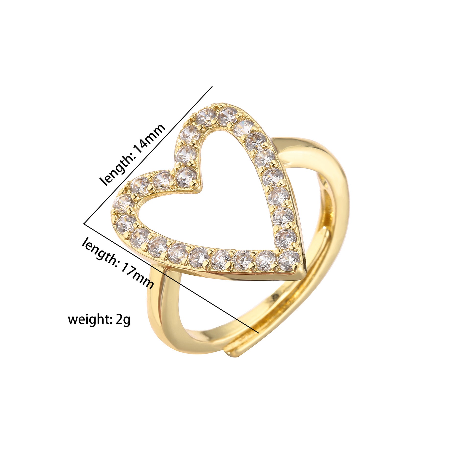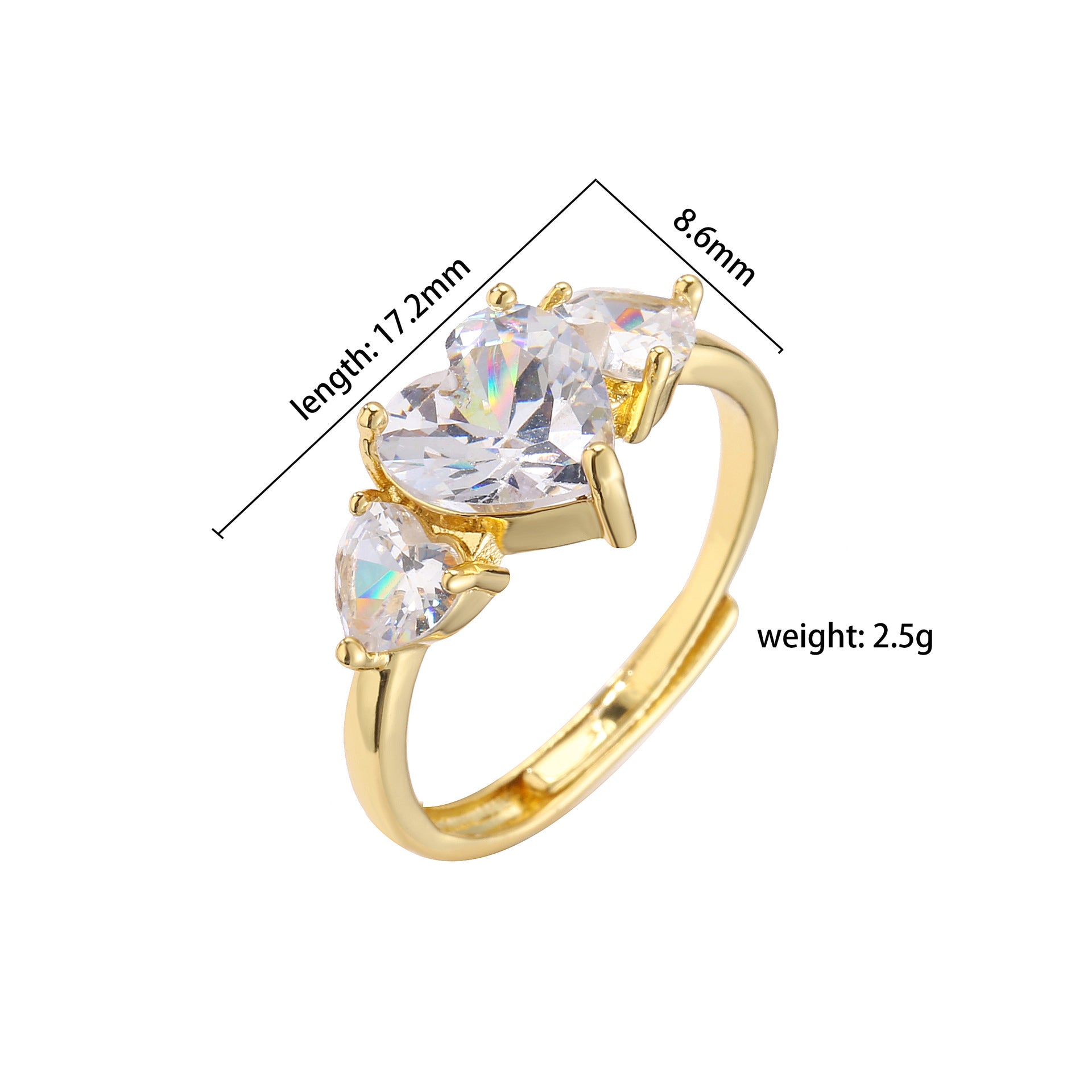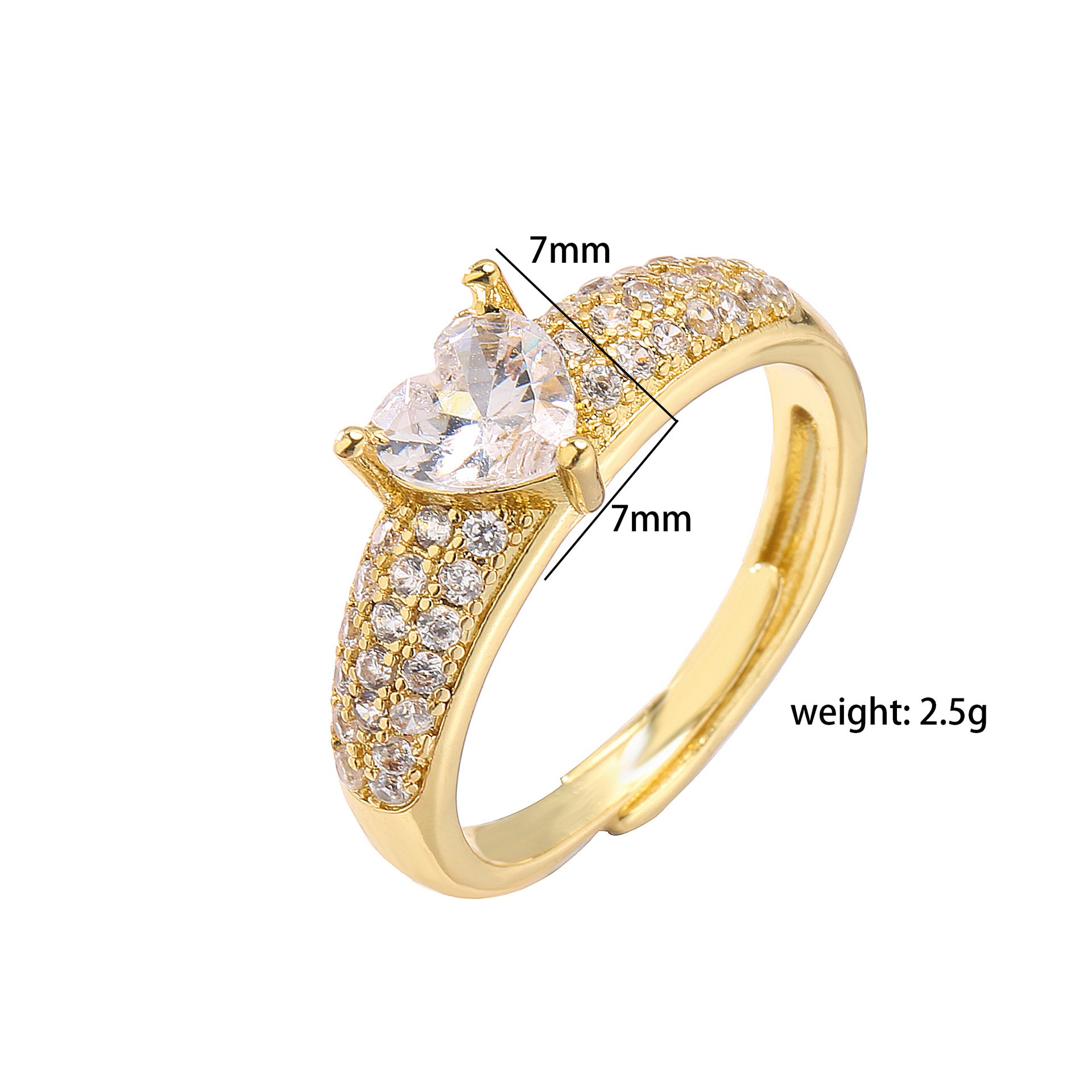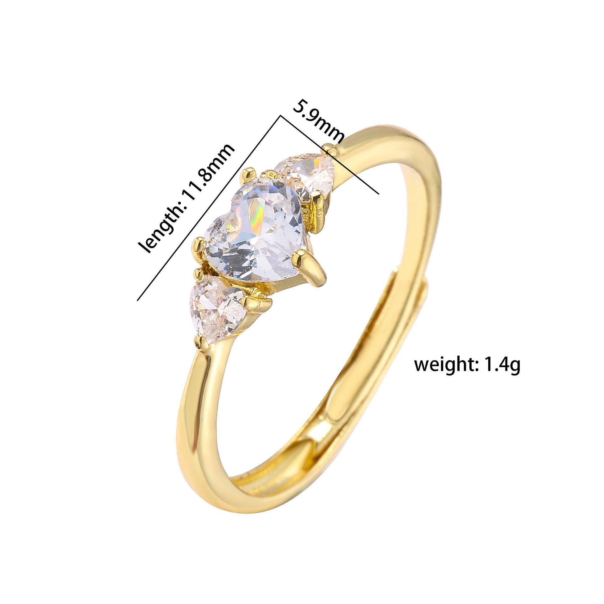 sweet heart shape copper plating inlay zircon open ring 1 piece