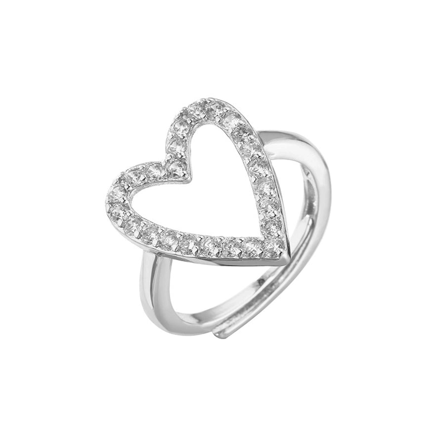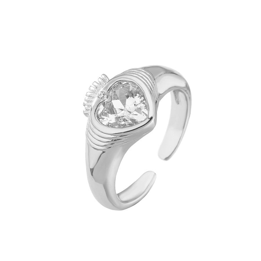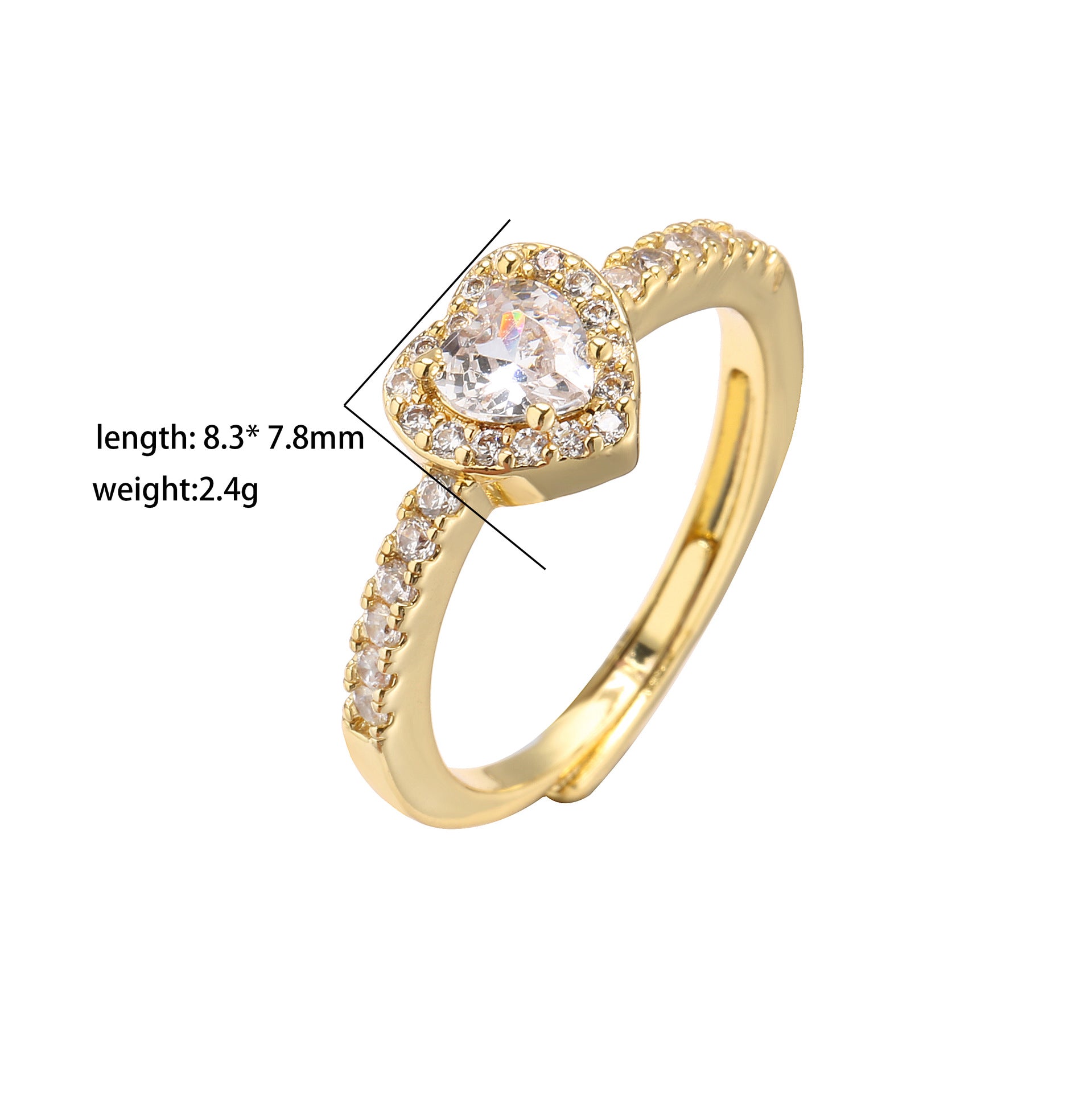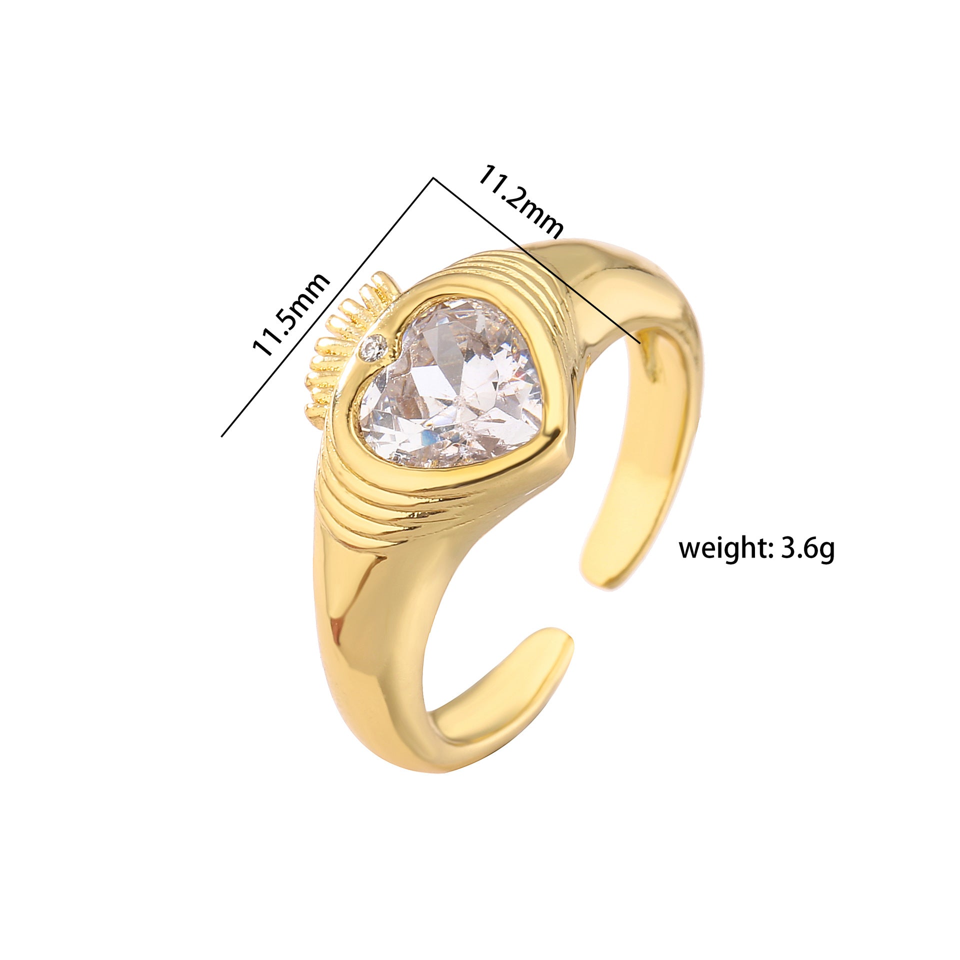 sweet heart shape copper plating inlay zircon open ring 1 piece