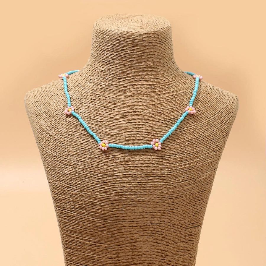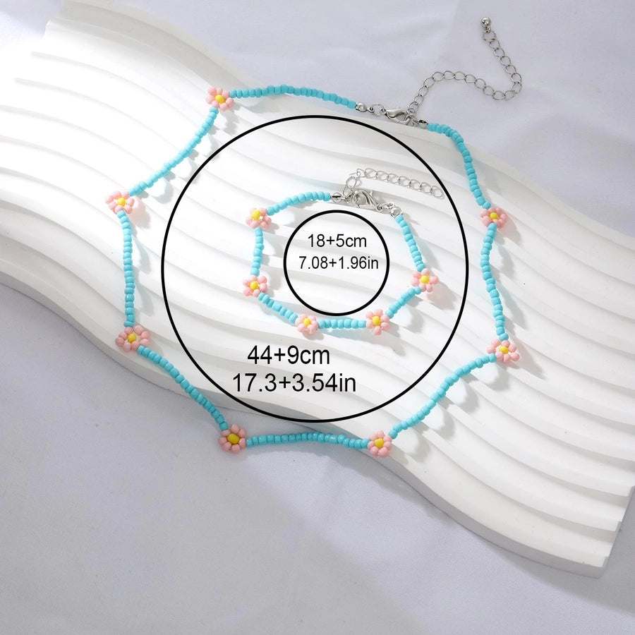 Vacation Beach Sweet Flower Plastic Seed Bead Beaded Women's Bracelets Necklace Jewelry Set