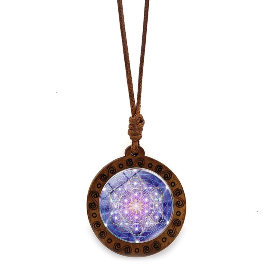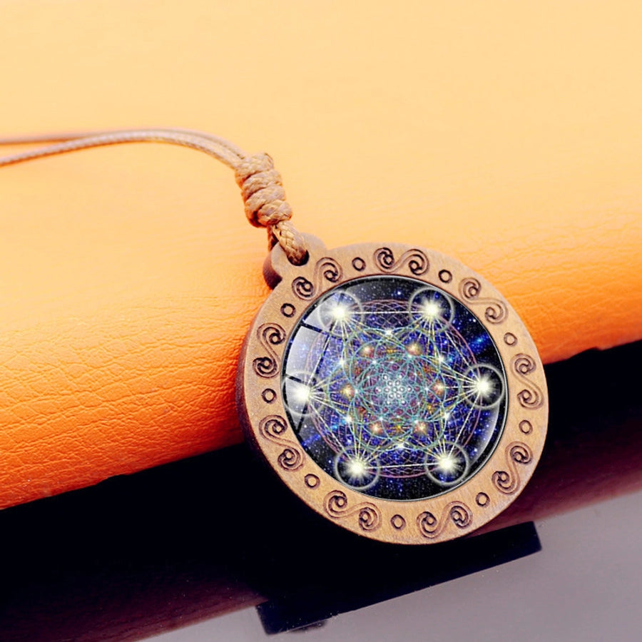 Vintage Style Hexagram Glass Wood rope Sweater Chain