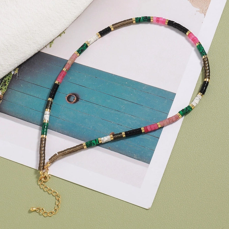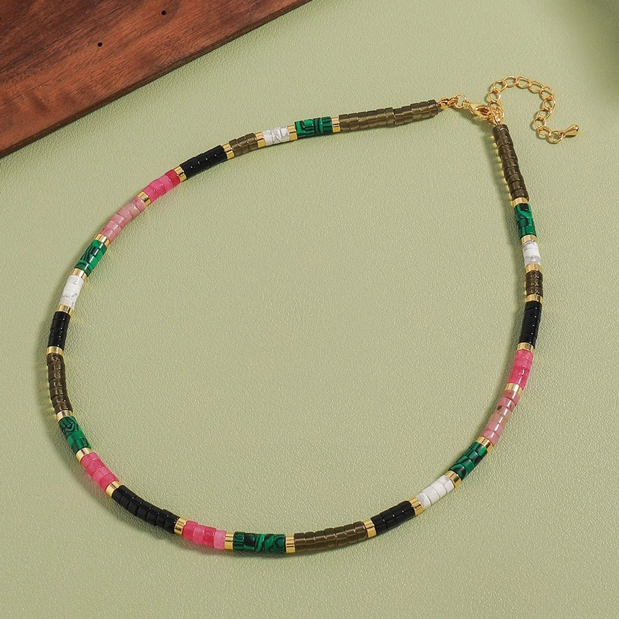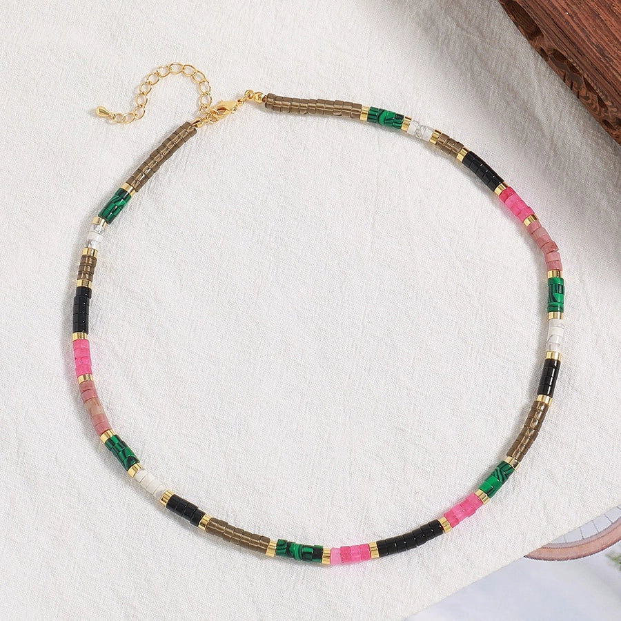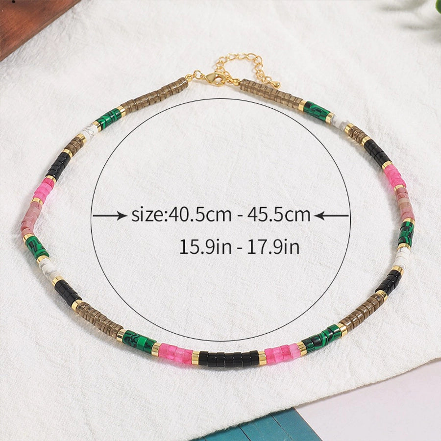Vintage Style Vacation Romantic Irregular Round 18K Gold Plated natural stone Titanium Steel Pendant Necklace