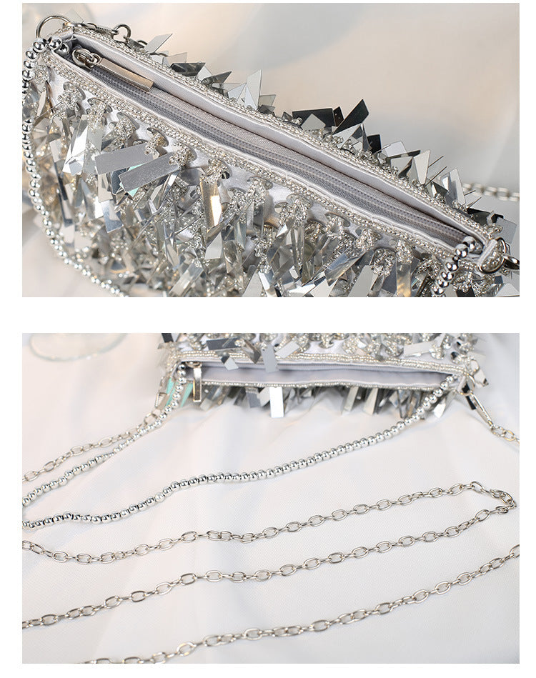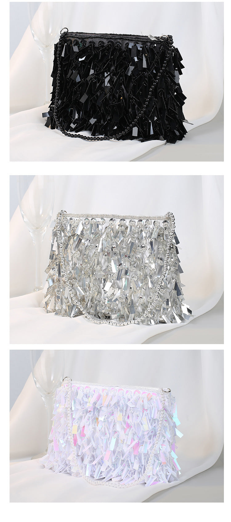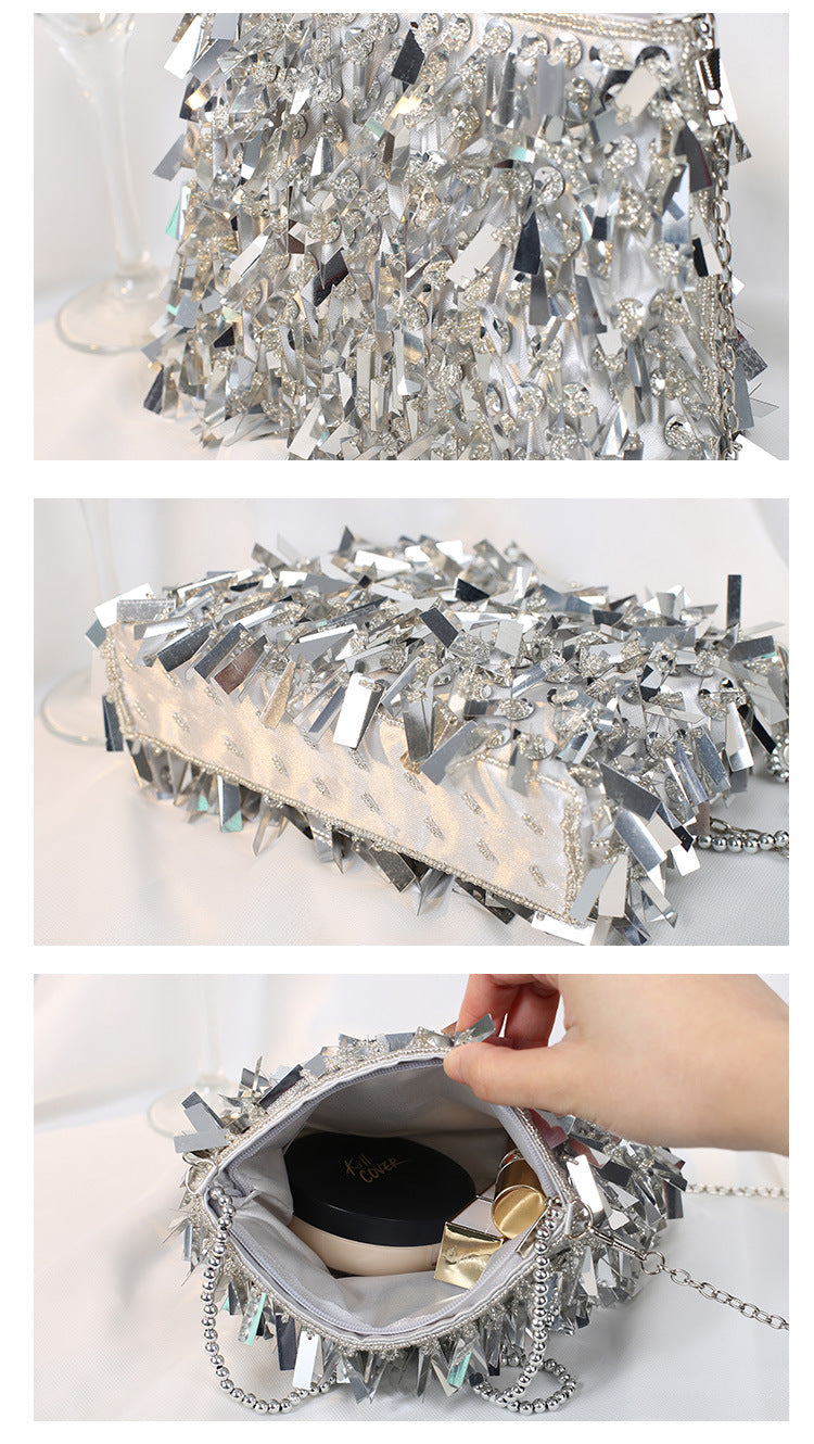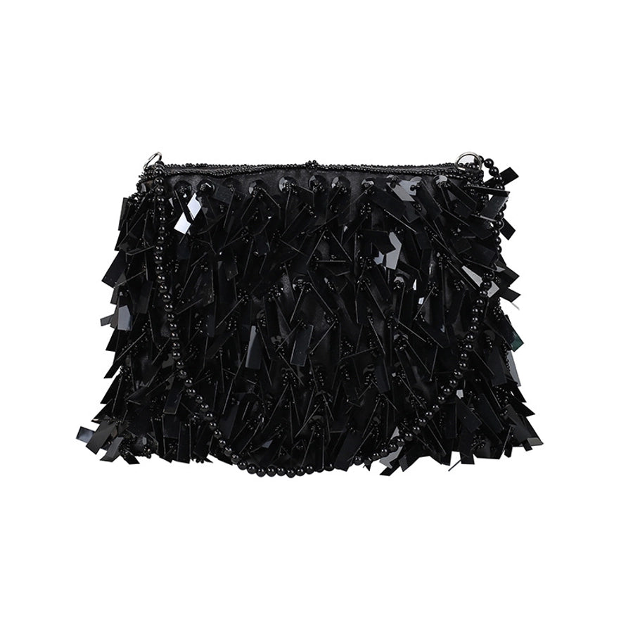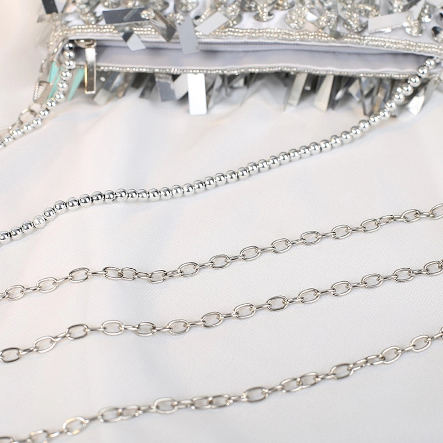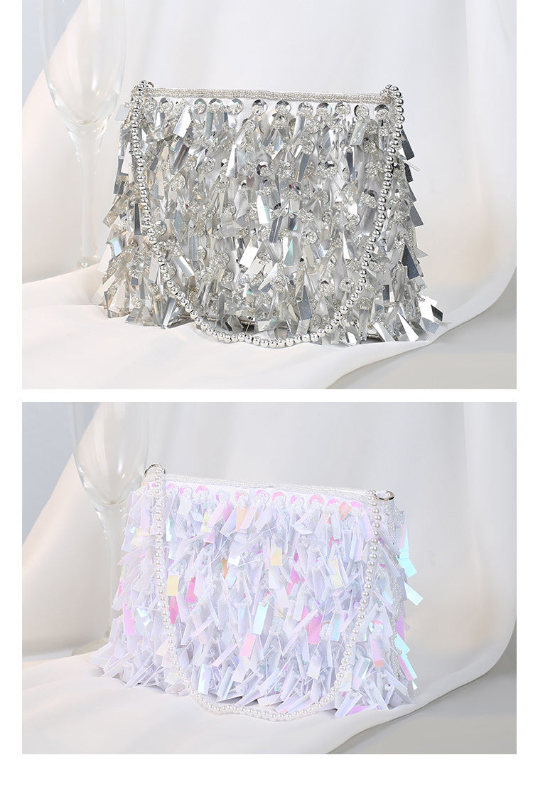 white black silver polyester solid color beading tassel square evening bags