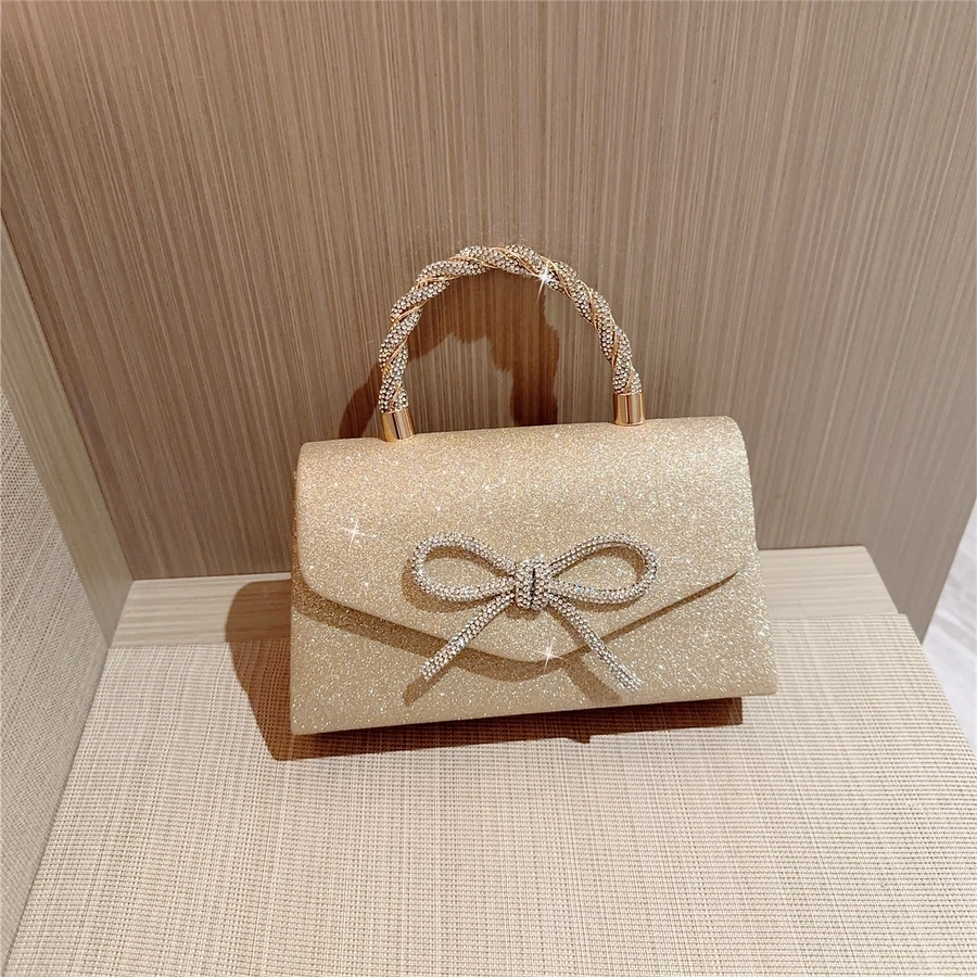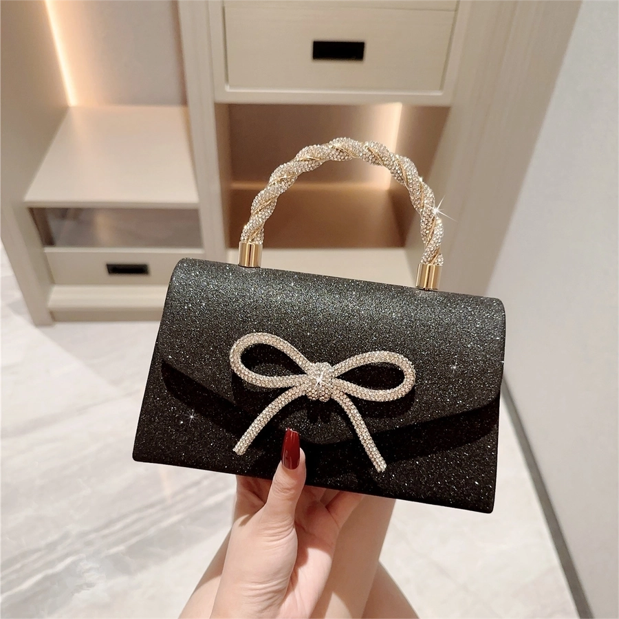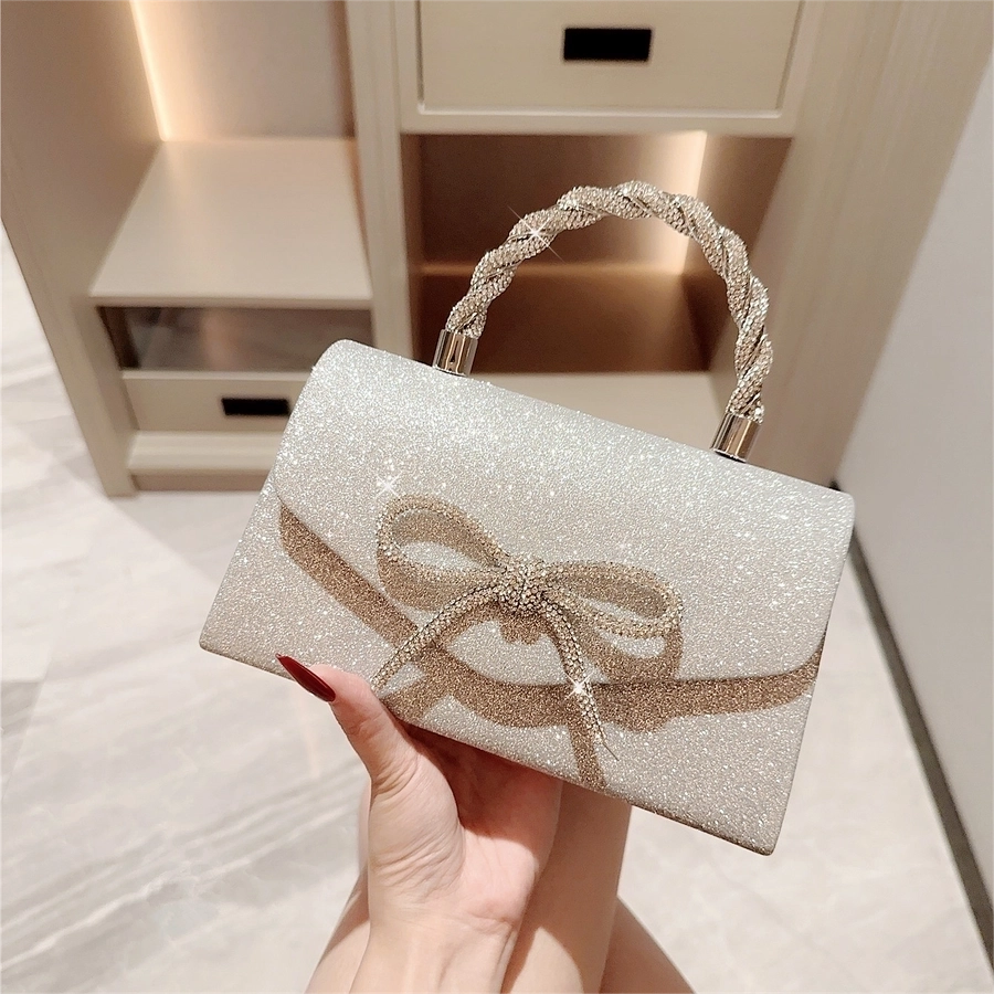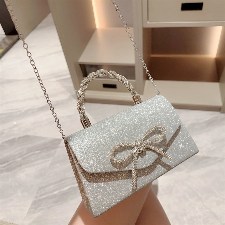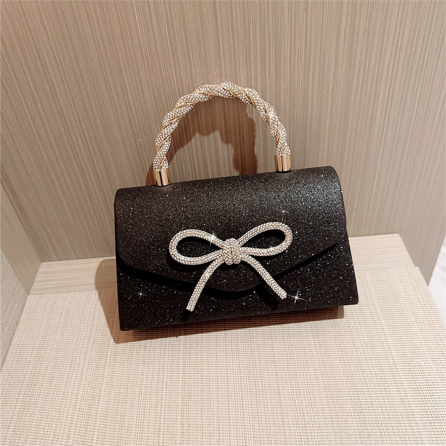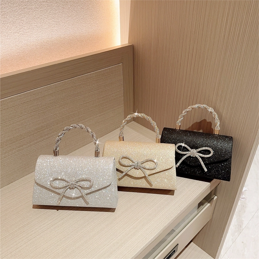 Women's Glitter Solid Color Bow Knot Streetwear Square Magnetic Buckle Handbag