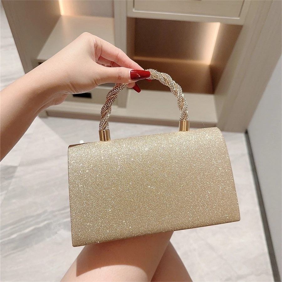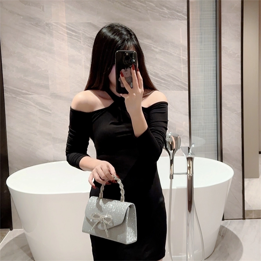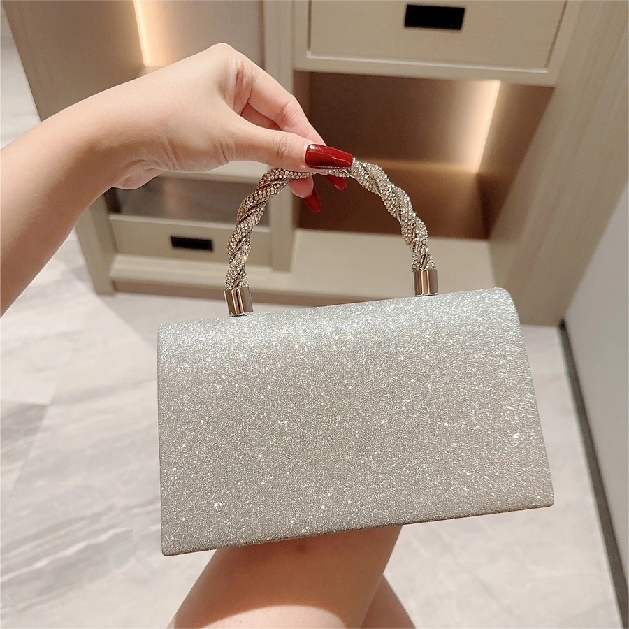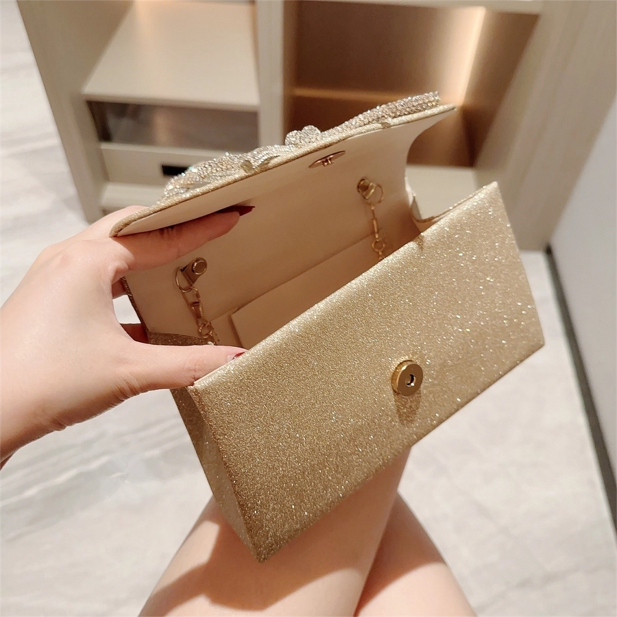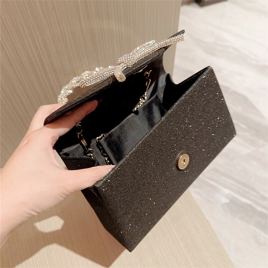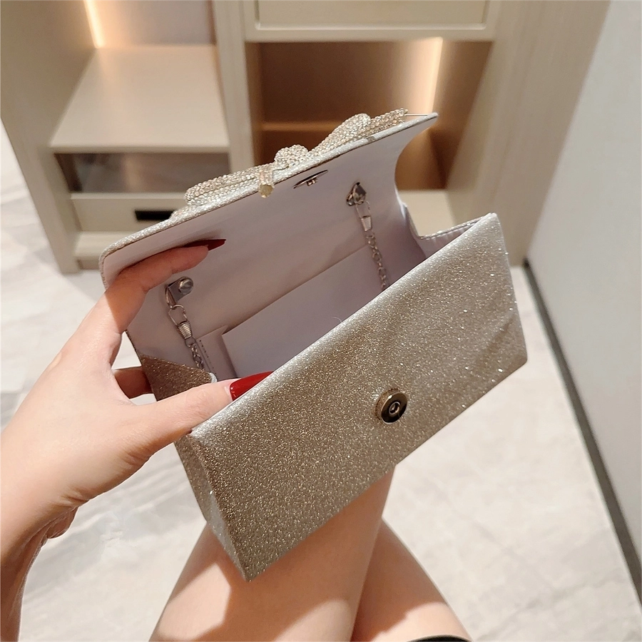 Women's Glitter Solid Color Bow Knot Streetwear Square Magnetic Buckle Handbag