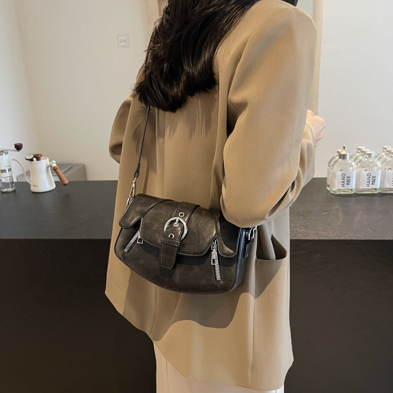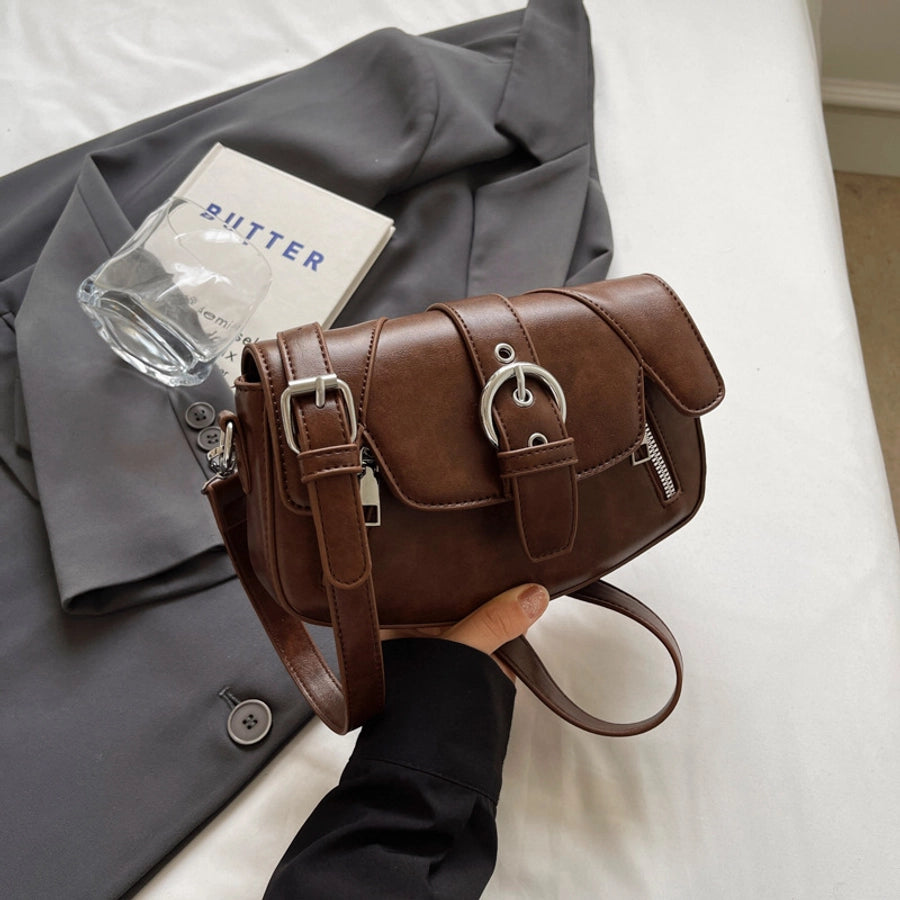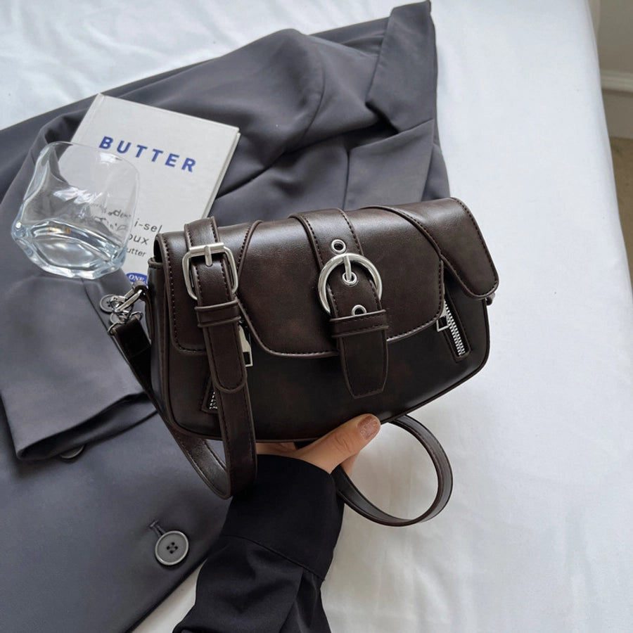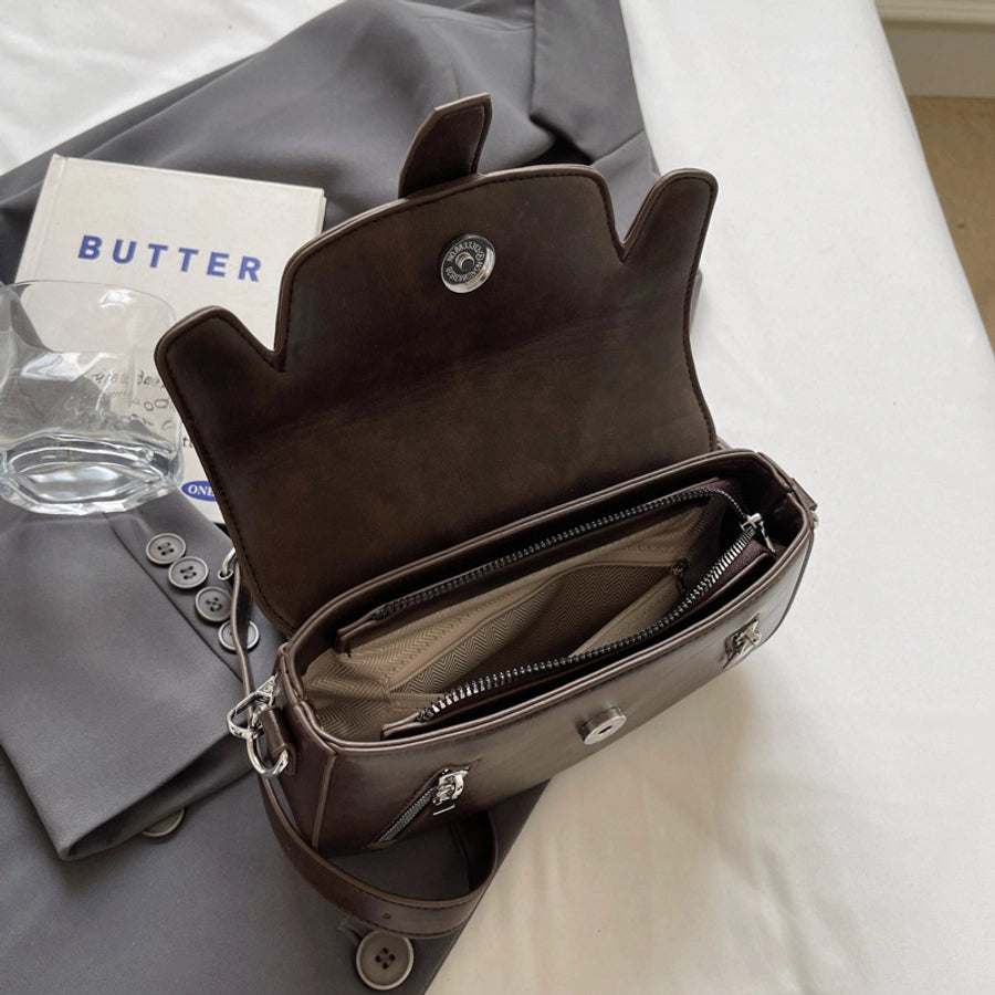 Women's Medium Pu Leather Solid Color Vacation Classic Style Square Magnetic Buckle Shoulder Bag