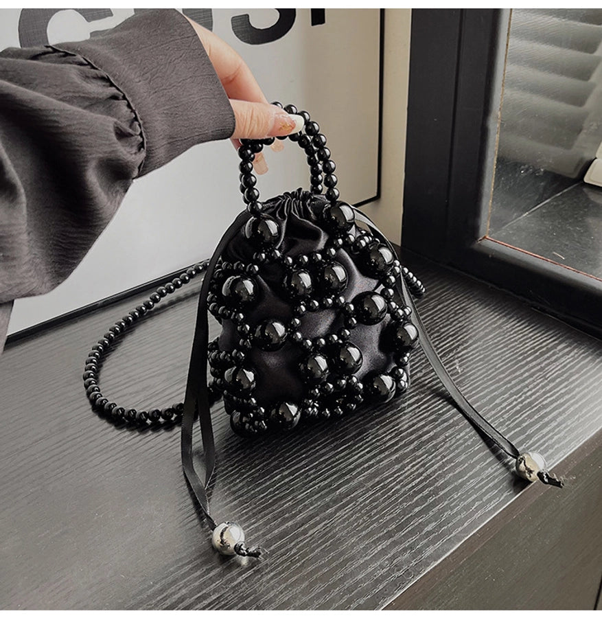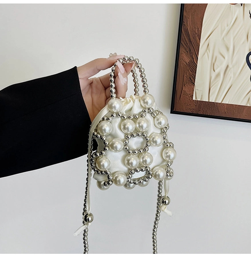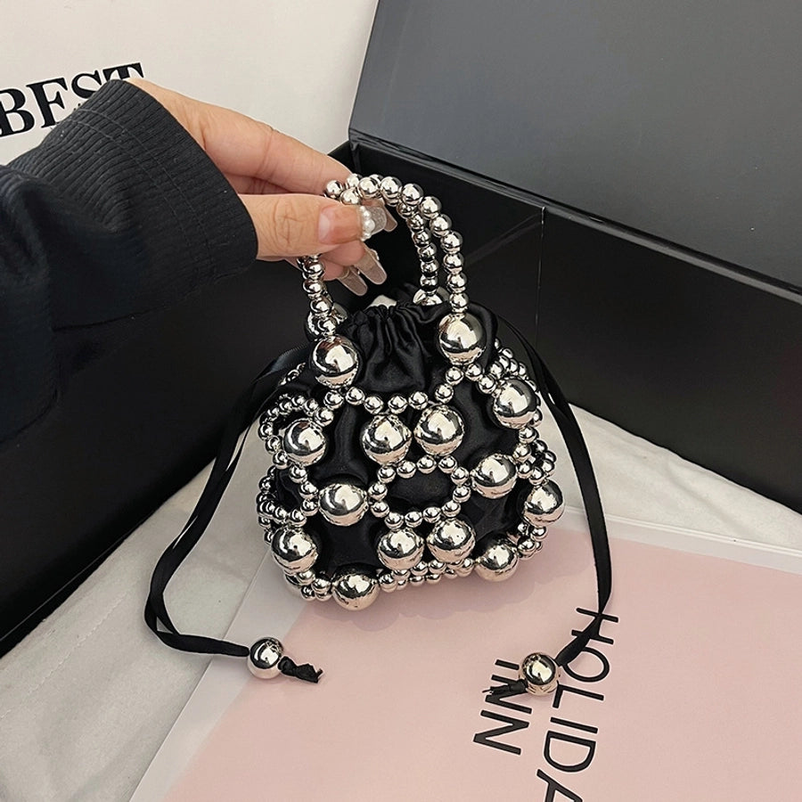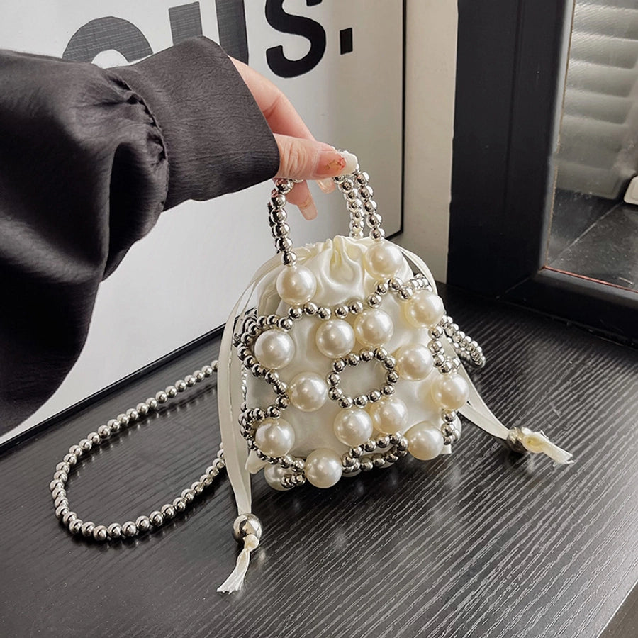 Women's Small Pu Leather Solid Color Elegant Beading Square String Evening Bag