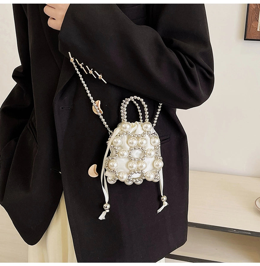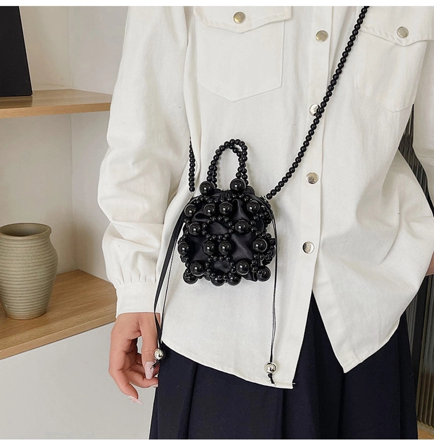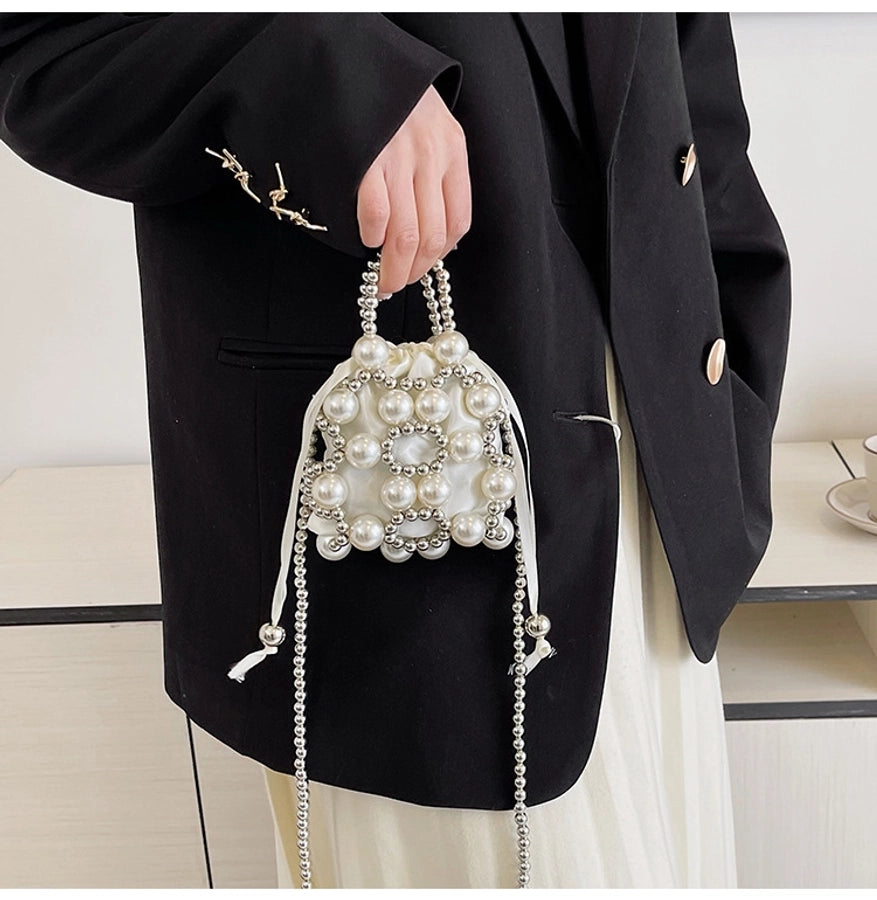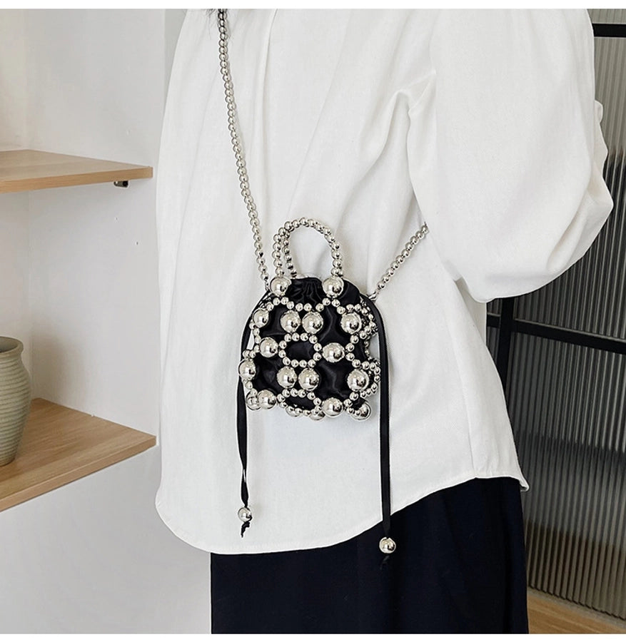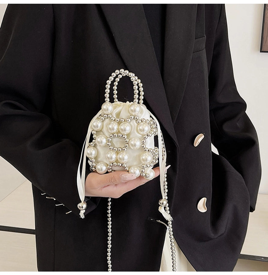 Women's Small Pu Leather Solid Color Elegant Beading Square String Evening Bag